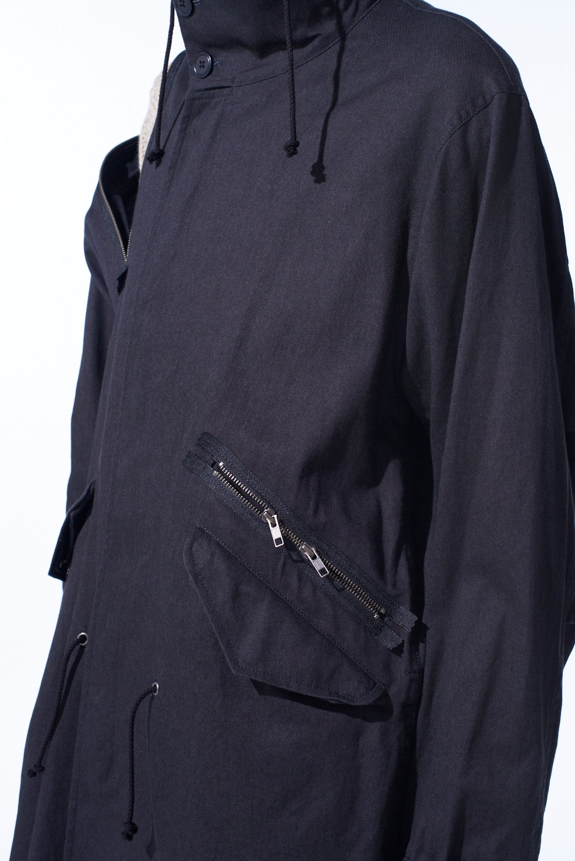 融入復古設計的這款mod外套,以獨特染色技術呈現褪色效果。靈感來自1960年代英國mods推崇的M-51野戰大衣,並加上了以激進方式縫製的拉鍊,創造出粗獷的龐克風格。原始元素如魚尾下擺和可調節腰帶被保留,暴露的內層提供前衛感。厚實的洗滌棉布讓它穿起來舒適而有質感,卡其綠色增添深度感。