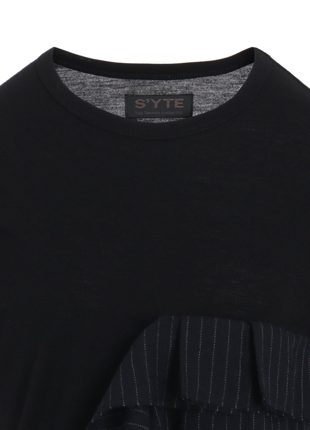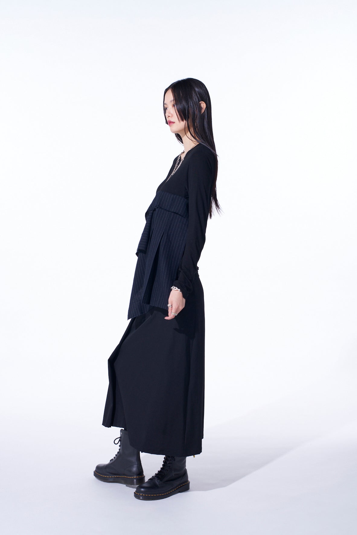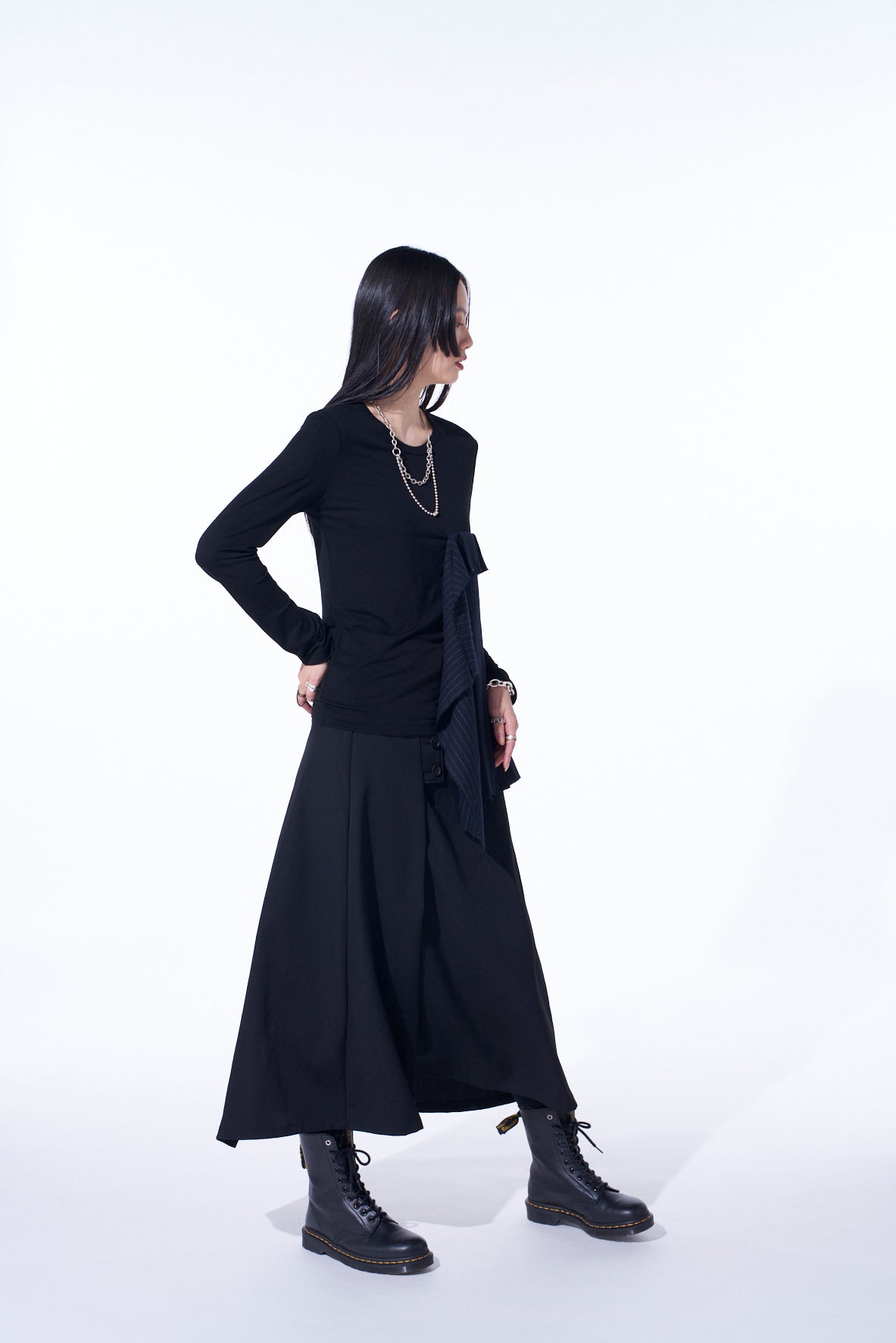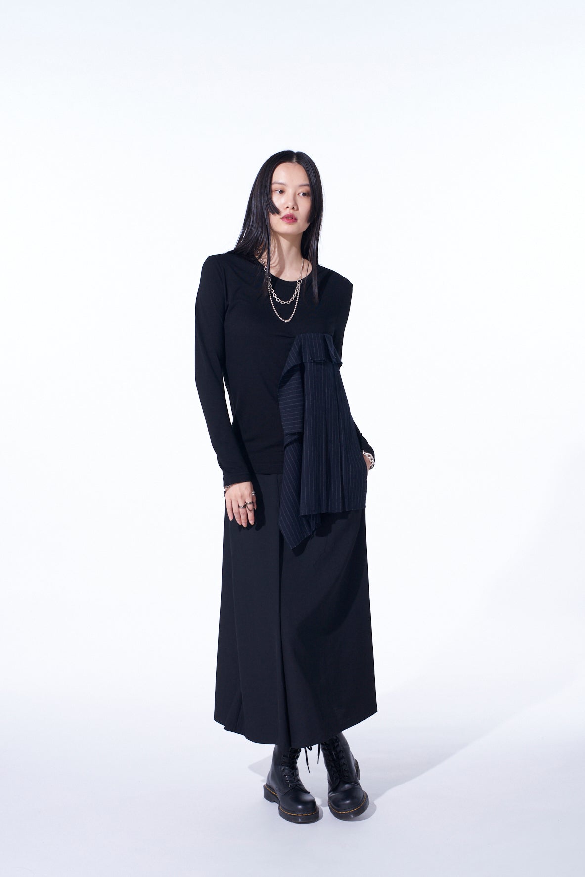 RAYON JERSEY LONG-SLEEVED T-SHIRT WITH PLEATED STRIPES FABRIC