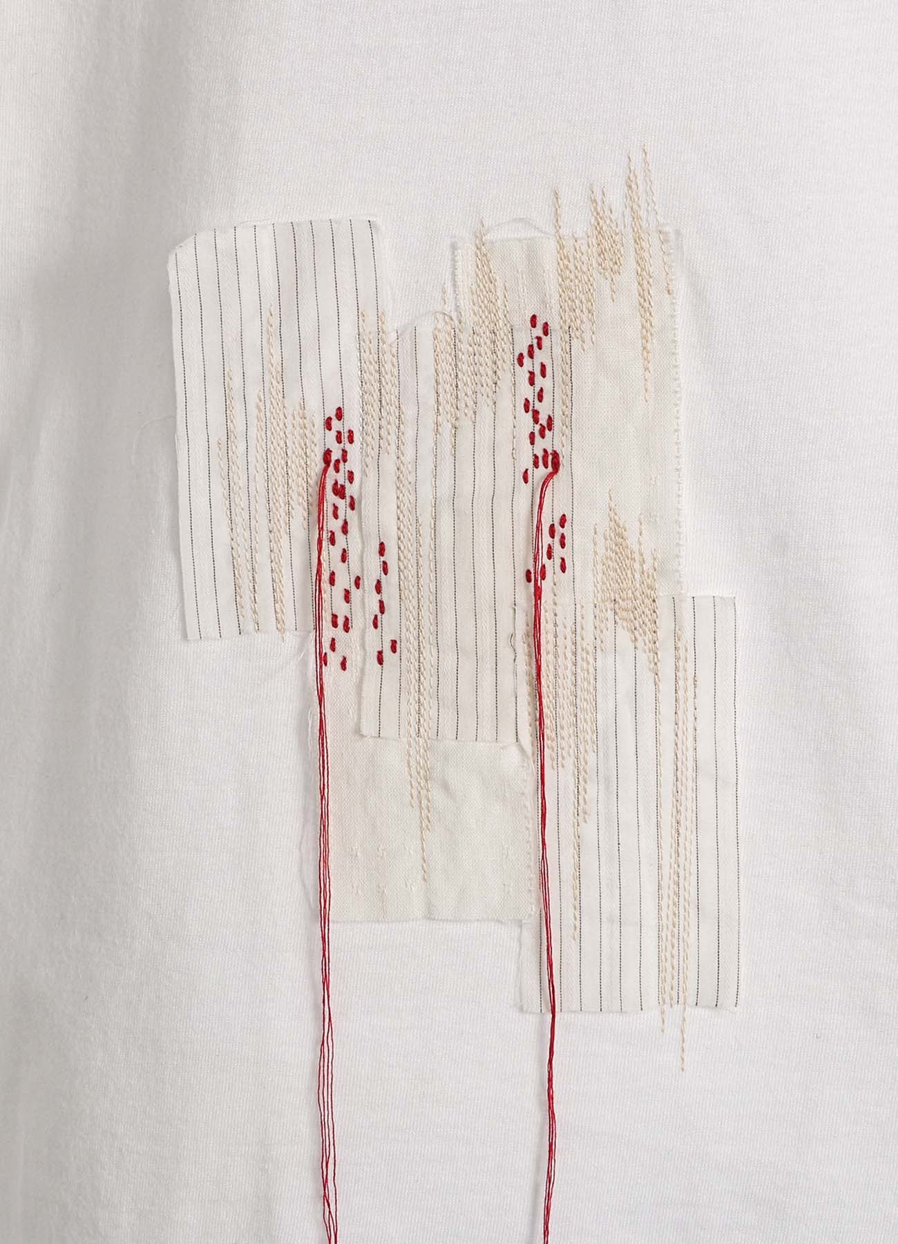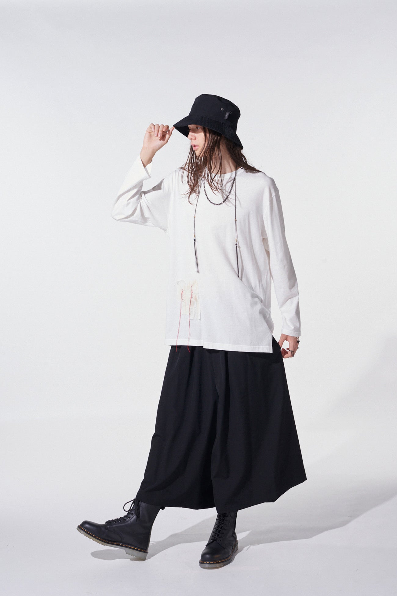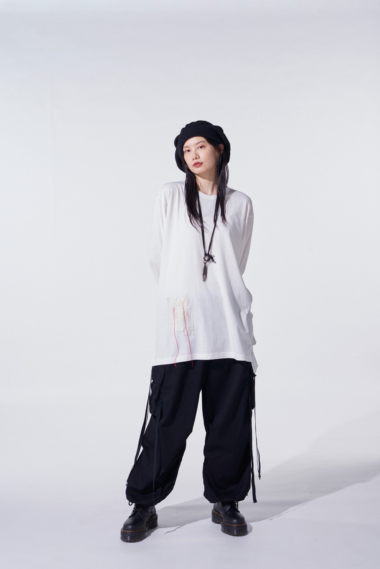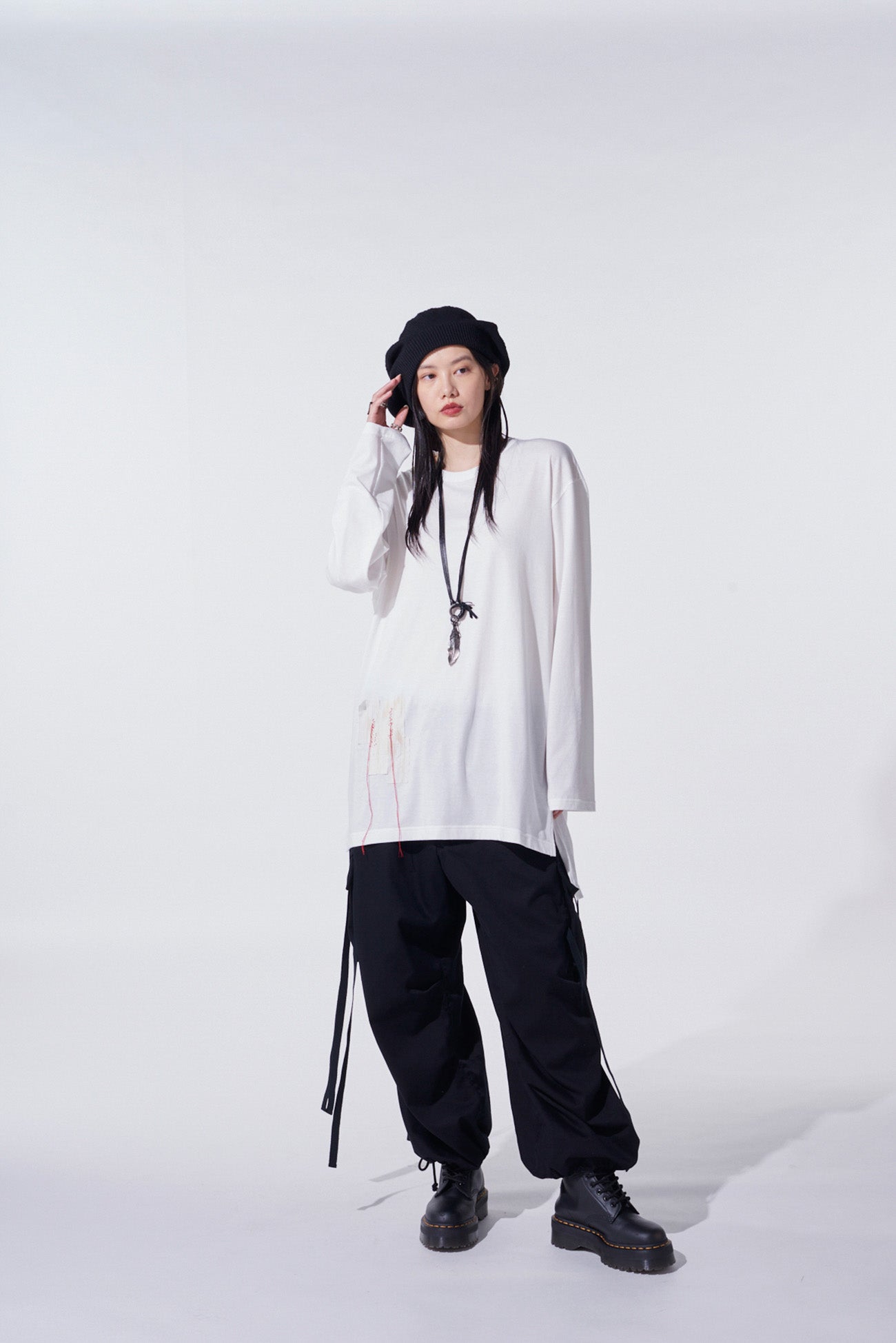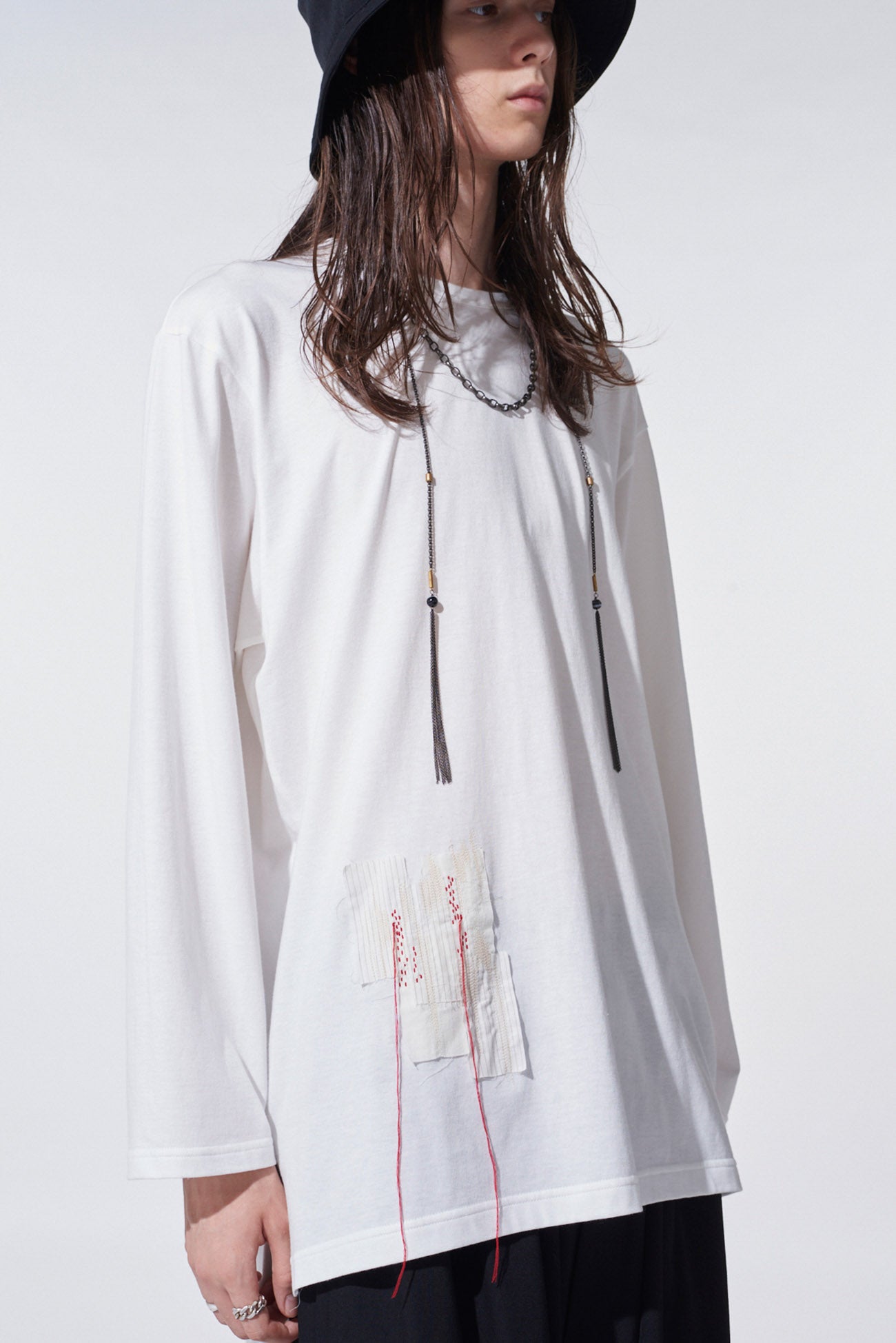 SOFT JERSEY "BORO"APPLIQUE SIDE SLIT LONG-SLEEVED T-SHIRT