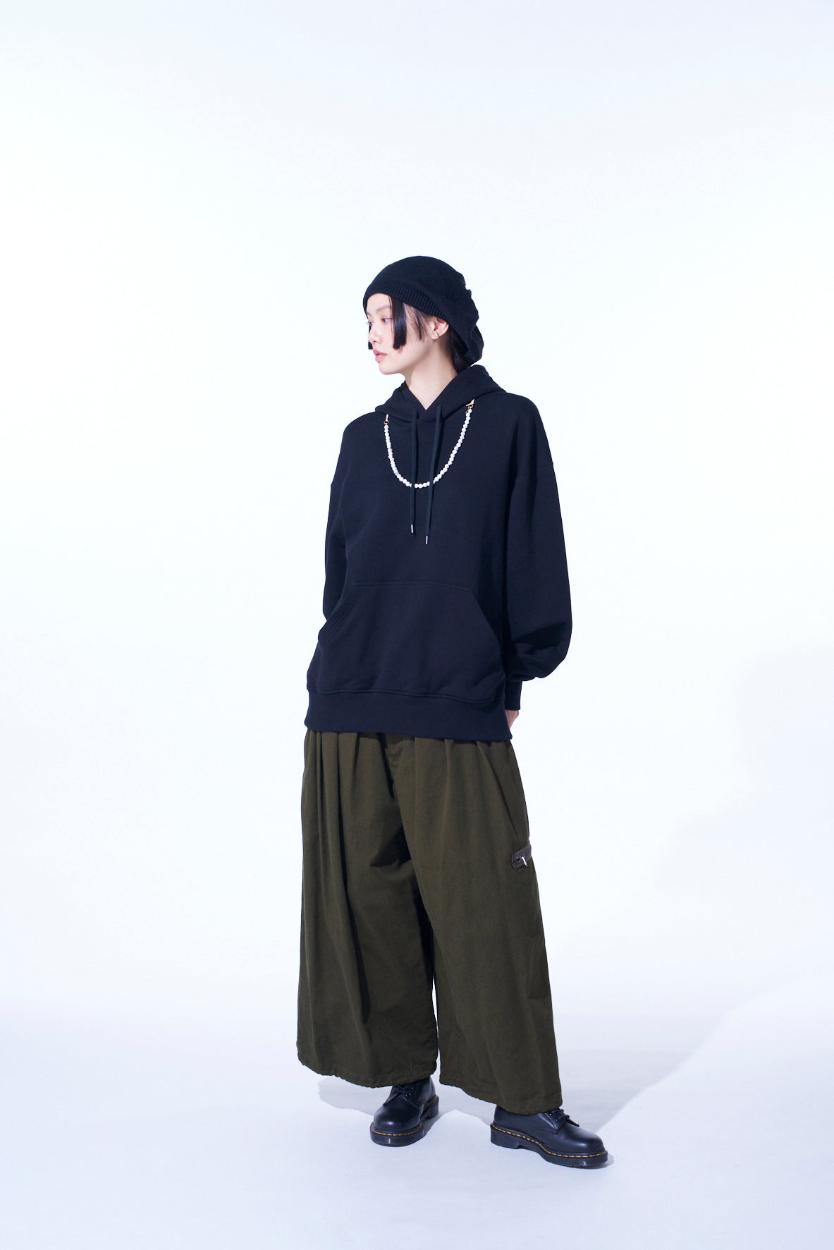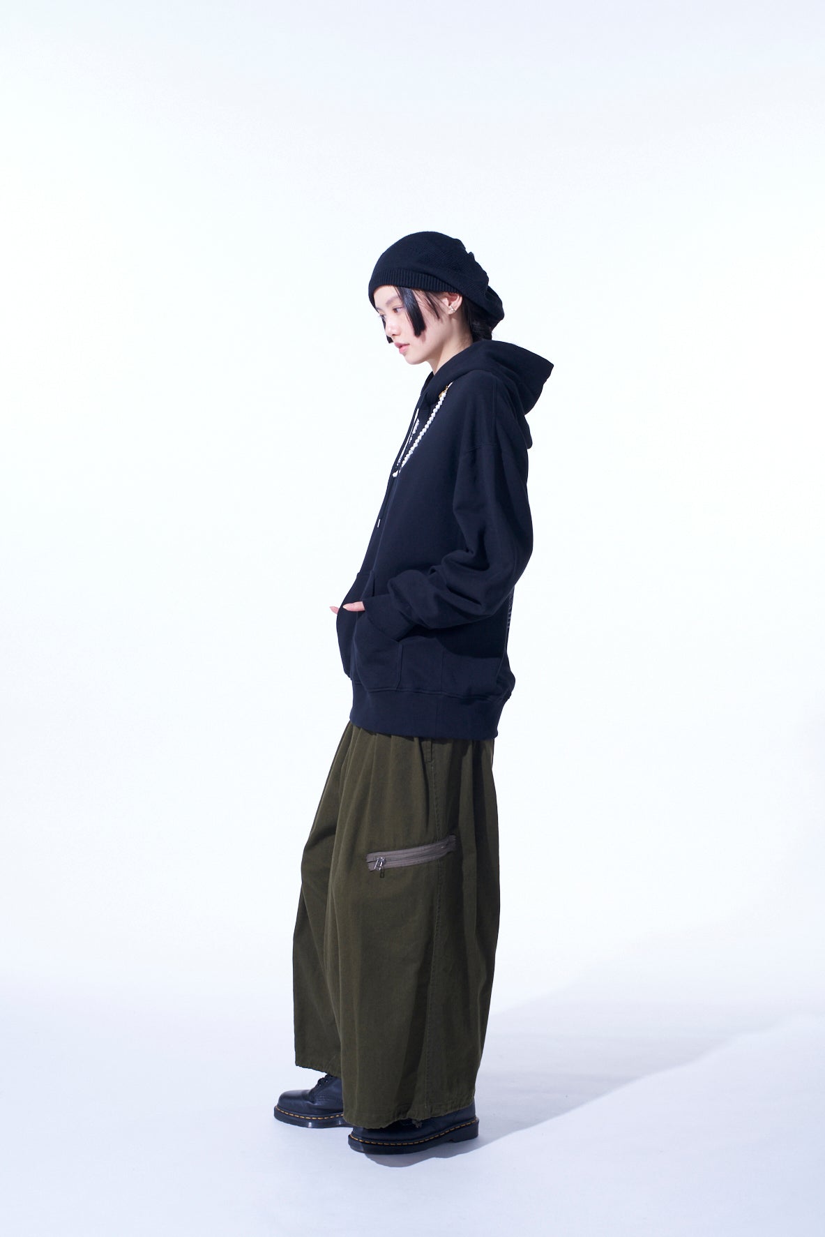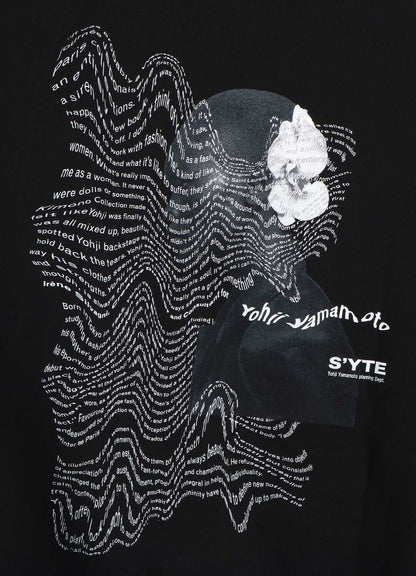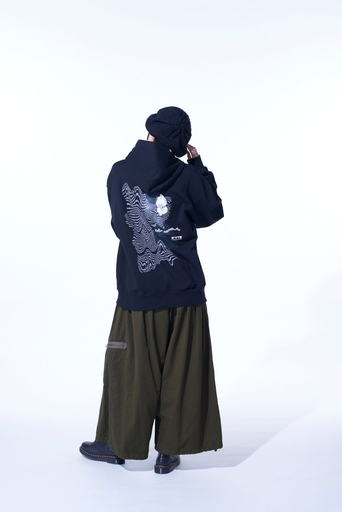 這款圖案連帽衫呈現文字設計和白花照片拼貼,黑色的主體及單色配色兼具個性與易穿性。其設置袖子、落肩設計及寬鬆袖子展現獨特的輪廓選擇,並強調平衡的衣長。