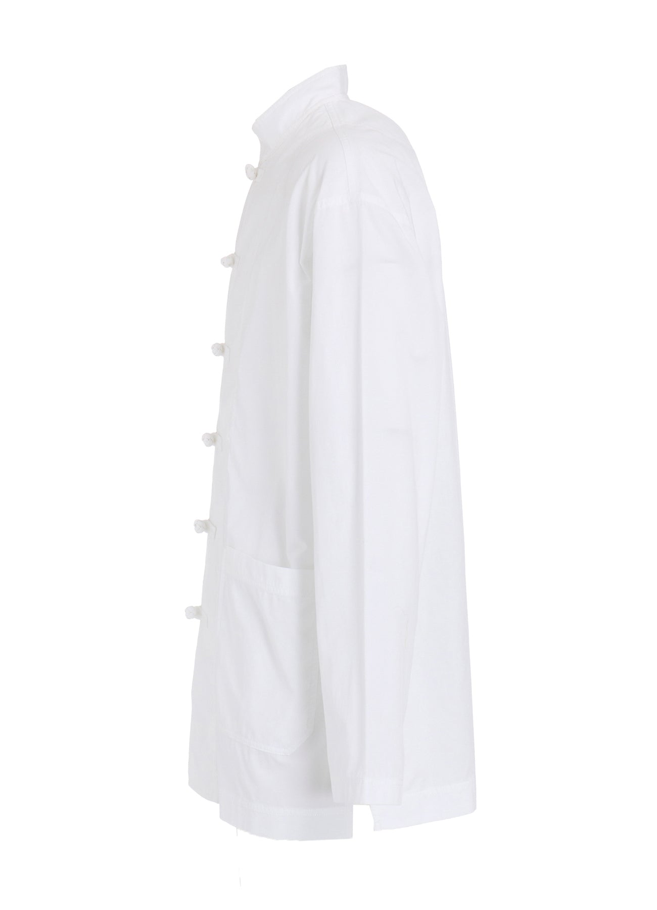 這款經典的Yohji Yamamoto單品融合了外套元素與襯衫細節,採用府綢材質和立領設計。設計中包括鋸齒形縫線、口袋和側開衩,體現了Y's for men的DNA。這件服裝向過去的經典YY作品致敬,是一件完美的一體式服裝。