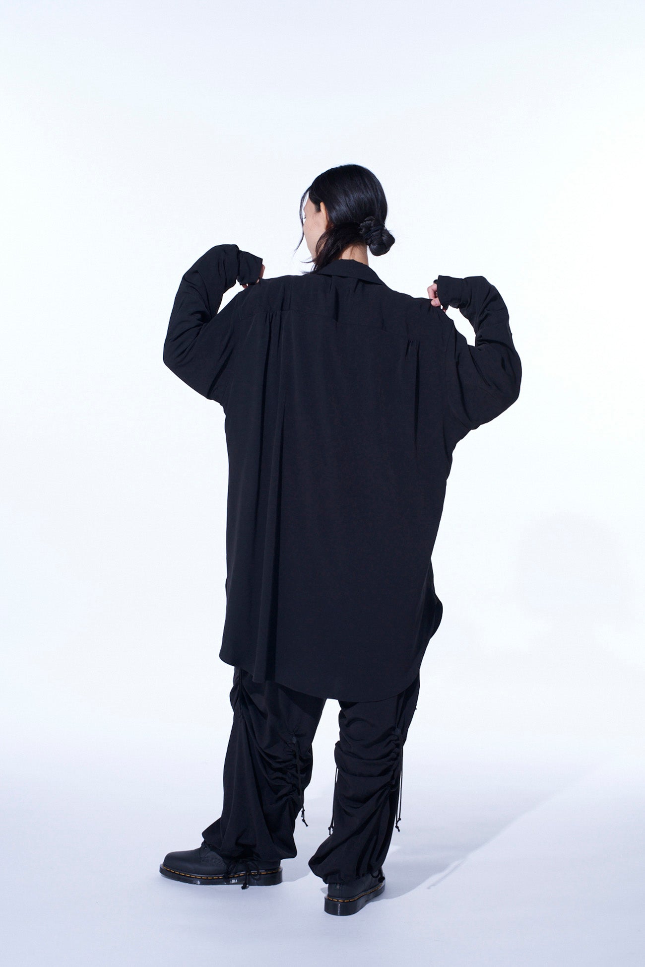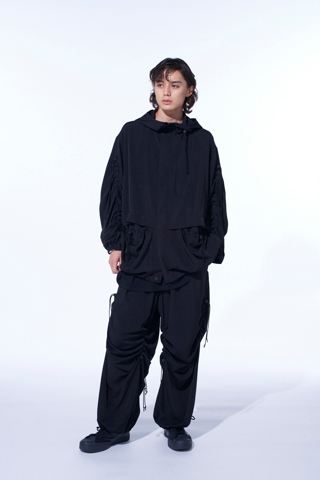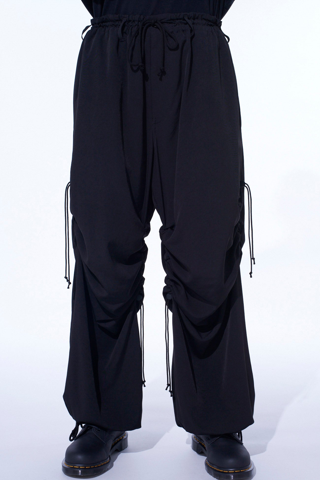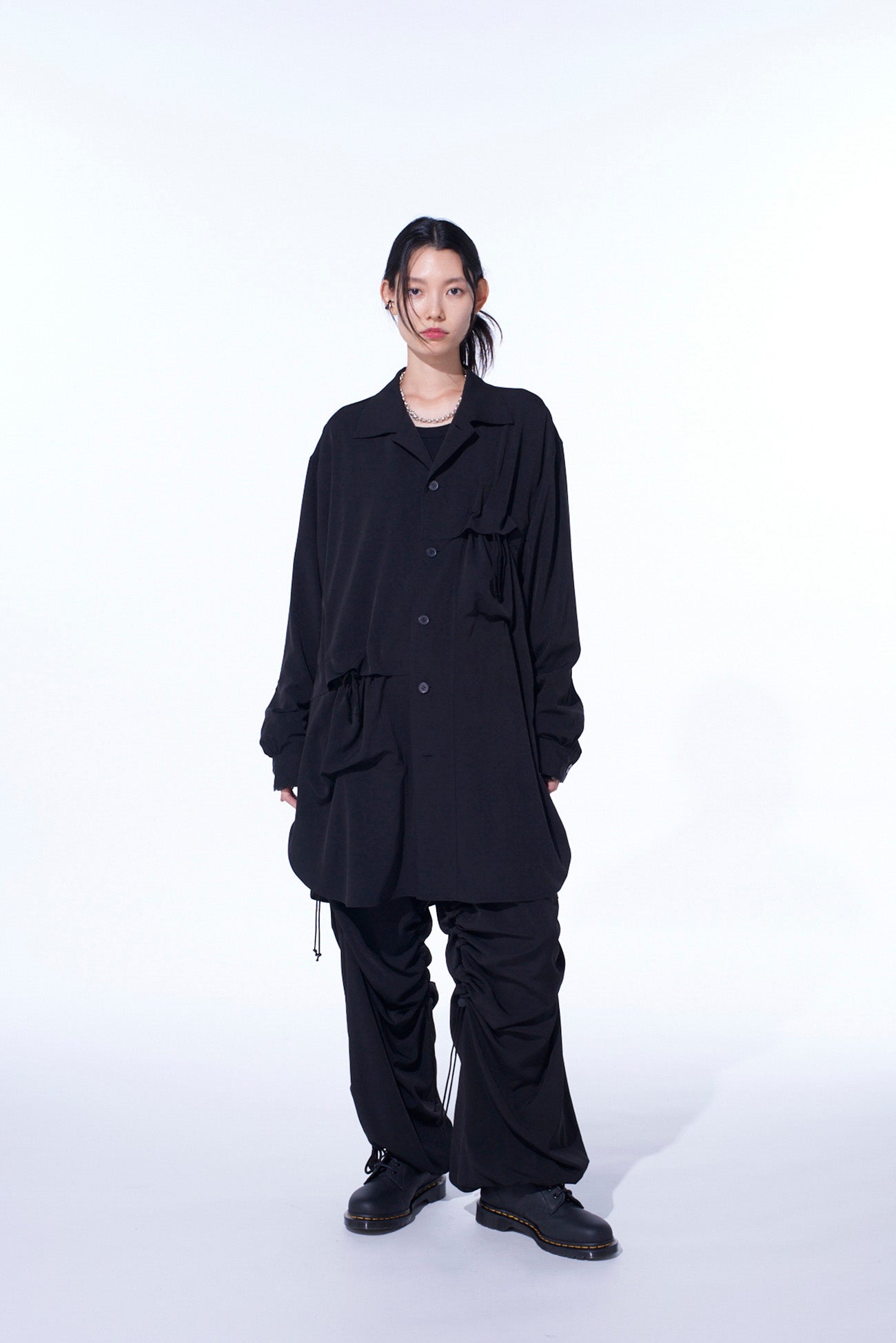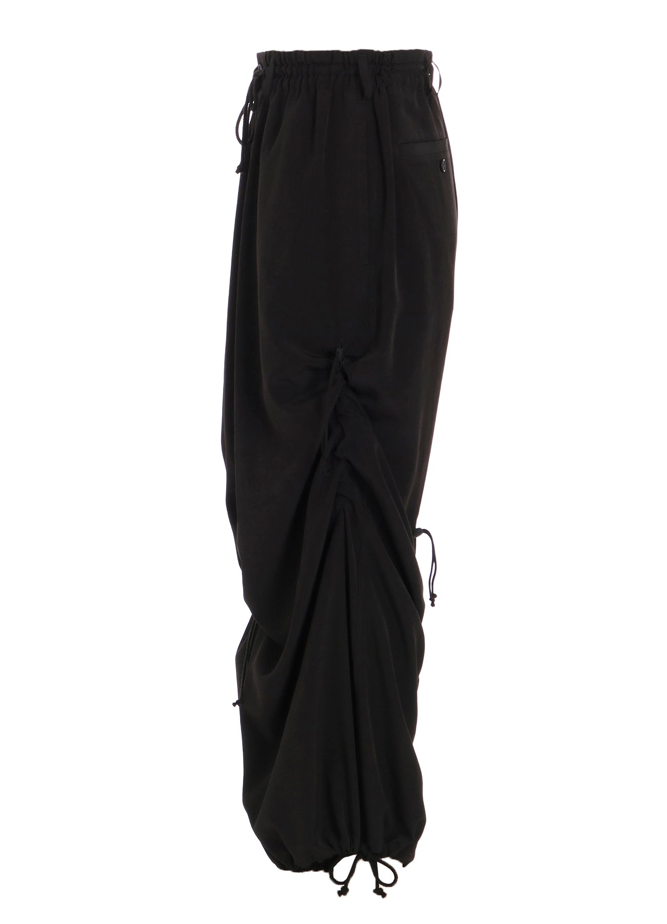 Yohji Yamamoto 精心製作的長褲以雅緻的綢緞材質製成,輕盈優雅。傑出的垂墜性提供精緻外觀,調整式設計為造型增添層次與特色,適合日常穿搭,亦為出色的時尚點綴。