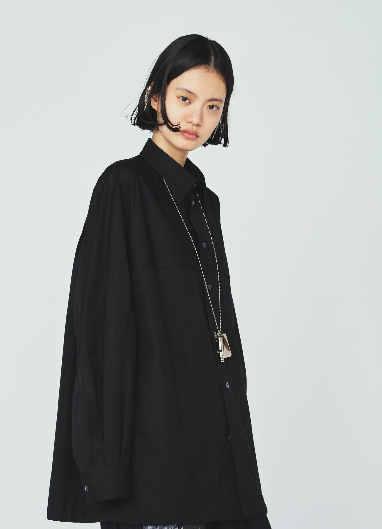 這款萬用的工裝襯衫採用平滑且帶有光澤的府綢面料製成。經過氣流滾筒處理後,觸感柔軟,可自由活動。設有三個口袋,肩部寬鬆版型,並有可調繩索下擺。提供黑色和白色,尺寸為S和M。