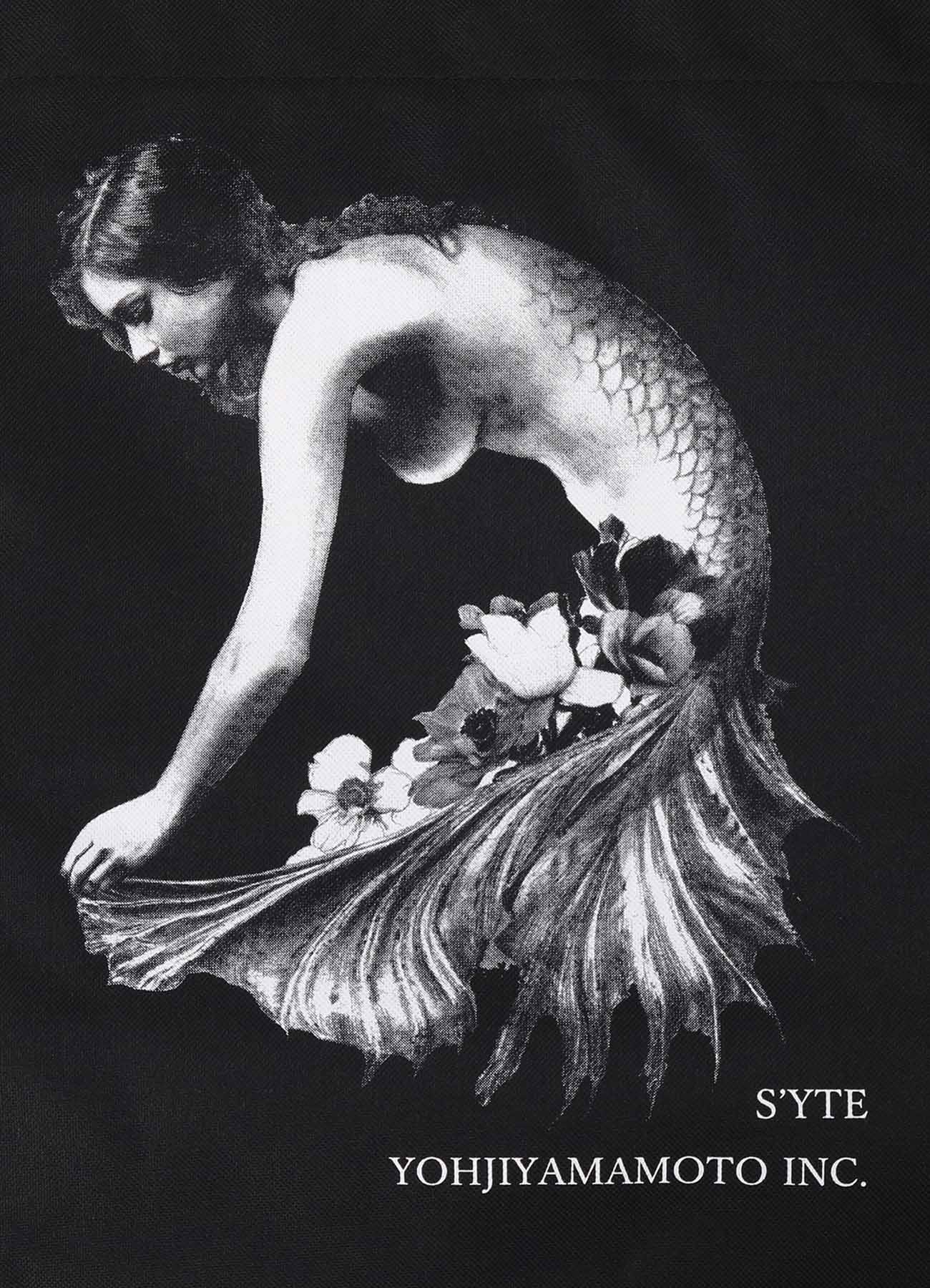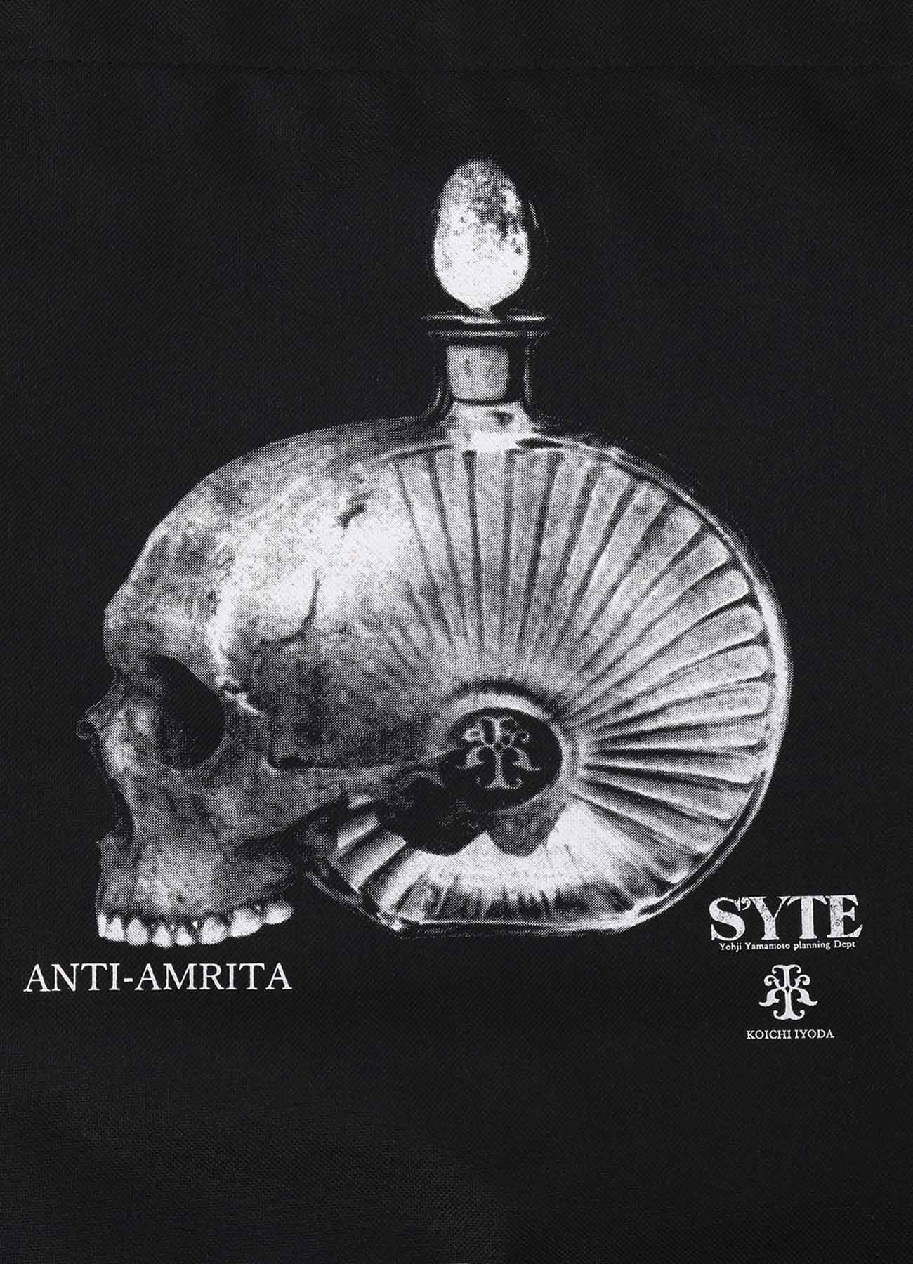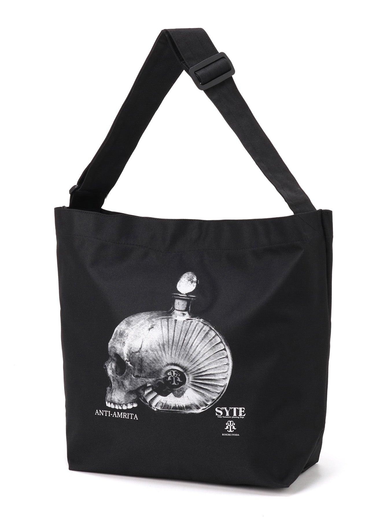 S’YTE 與藝術家及平面設計師 Koichi Iyoda 合作推出 "Anti-Amrita" 系列,包袋上印有陰森骷髏與《小美人魚》為靈感的藝術作品。這些設計結合細膩的鉛筆素描與單色印花,呈現出正反面對比的視覺效果。