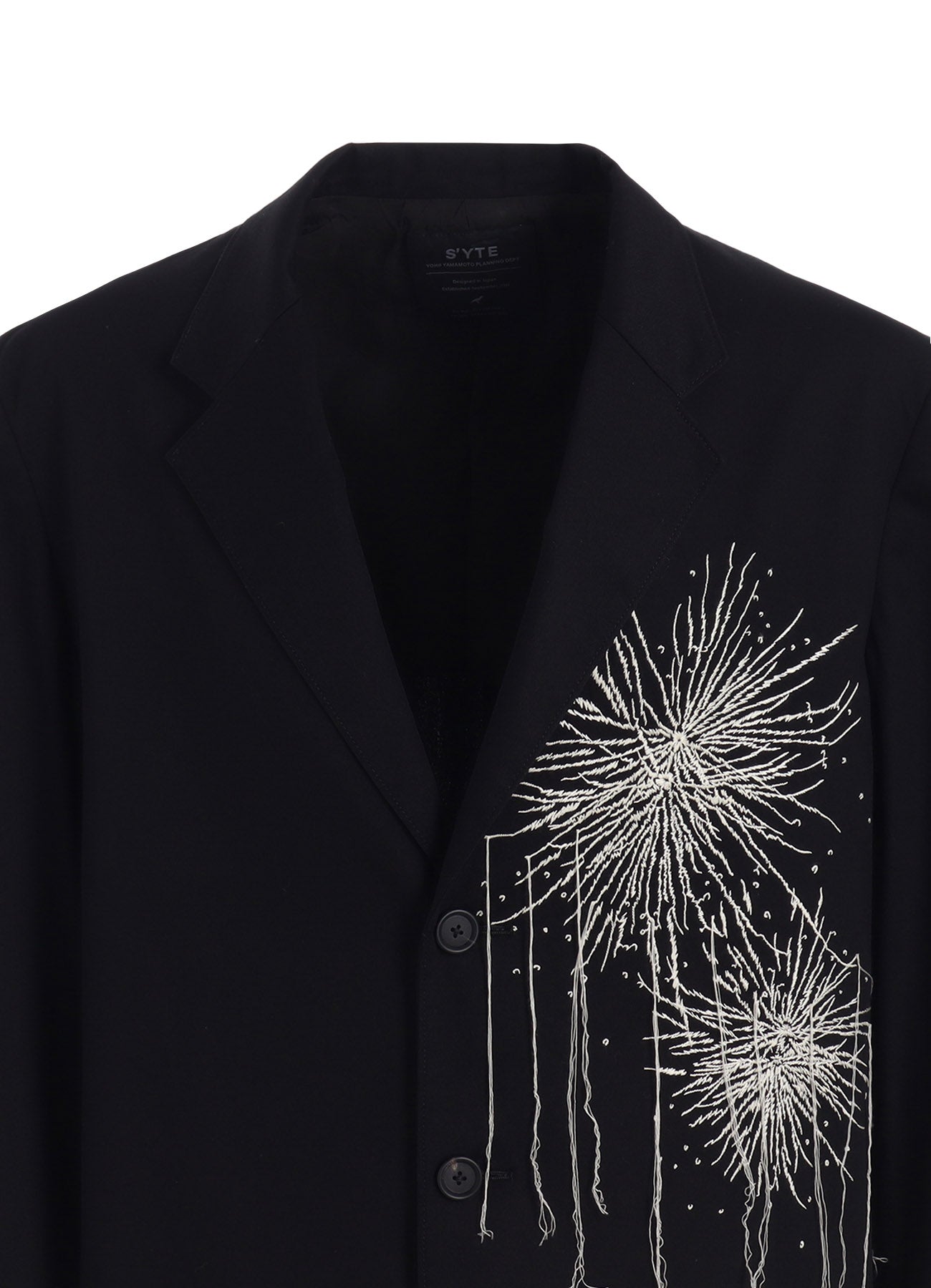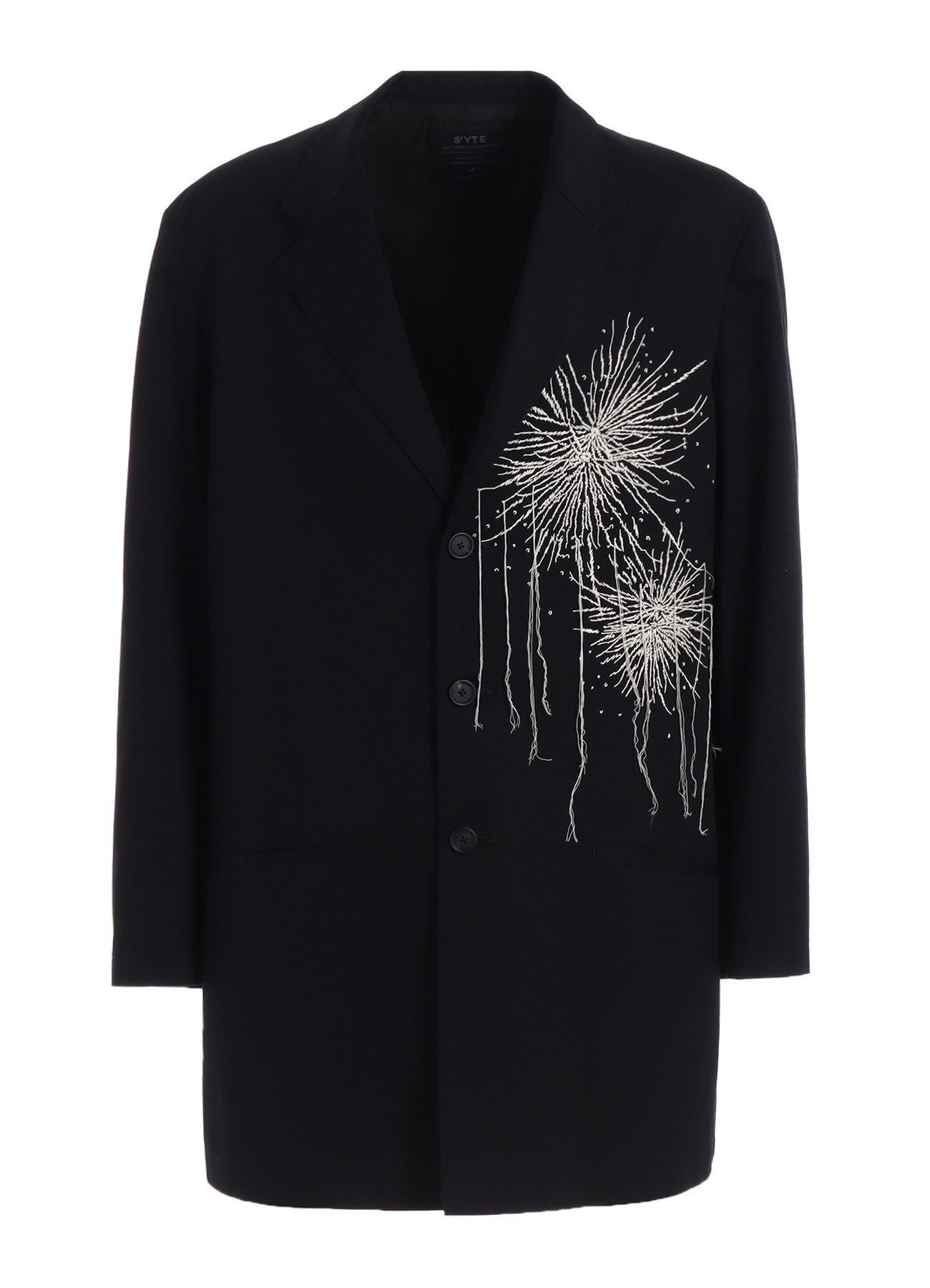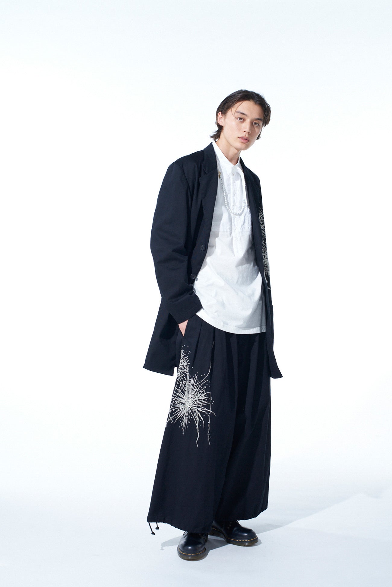 這款長版外套以精緻的煙火刺繡圖案為特色。每根線在風吹拂時創造出動態效果。棉質材質隨著時間推移展現獨特的磨損感,打造出獨一無二的破布質感。此款外套可搭配寬版或緊身褲,營造多元造型。
