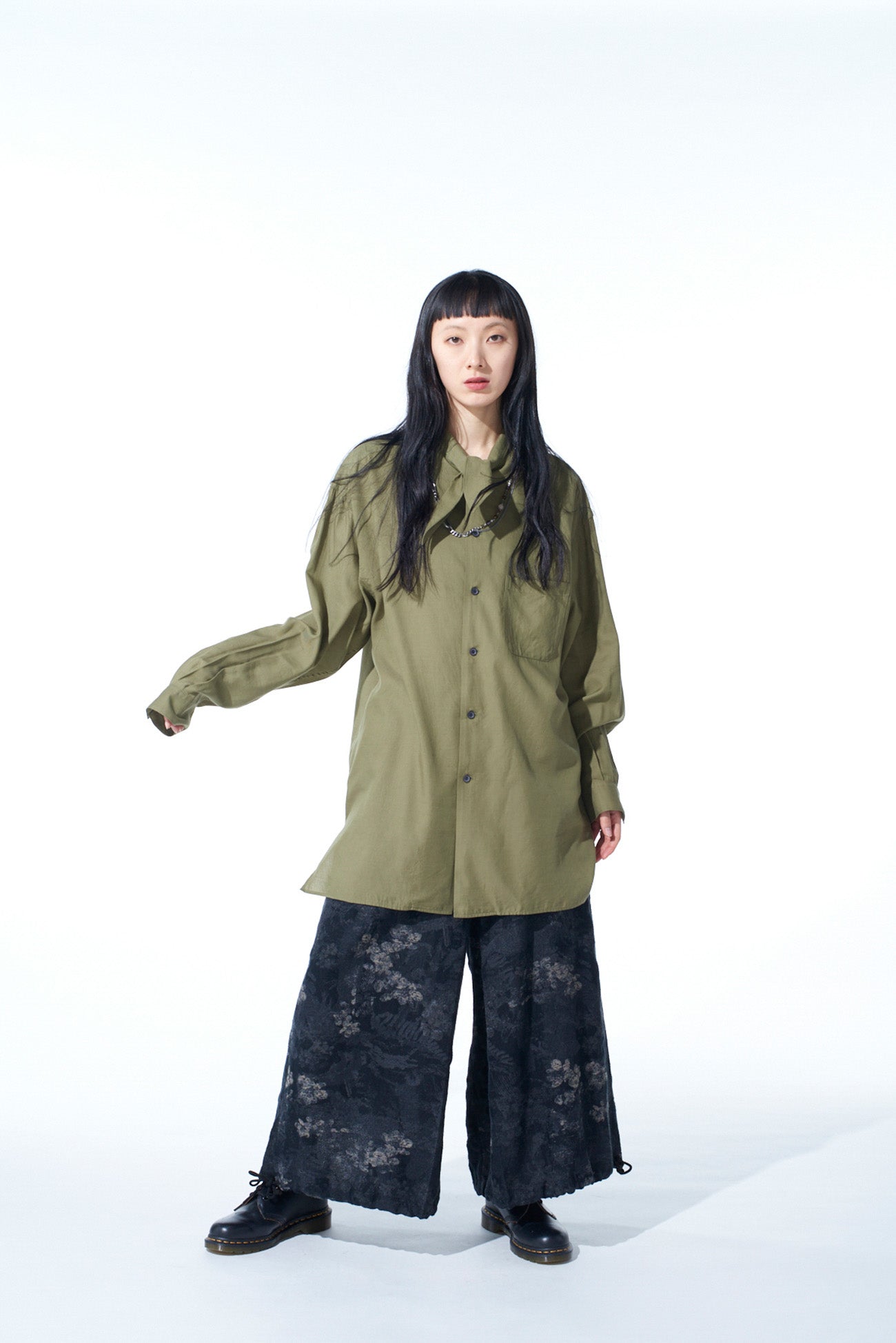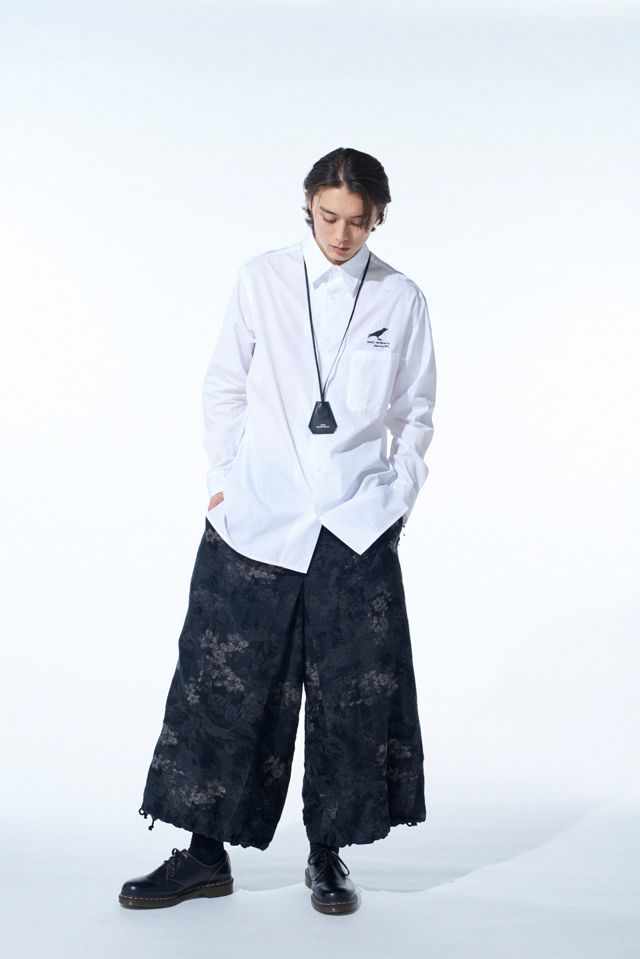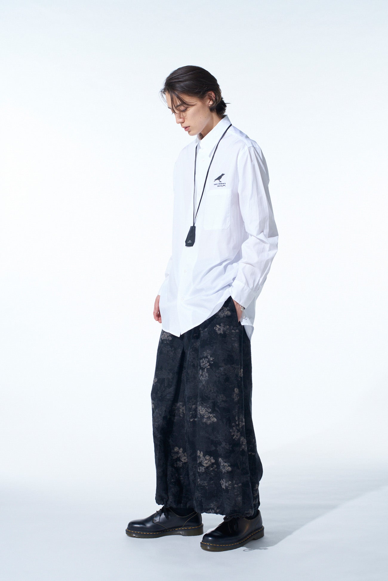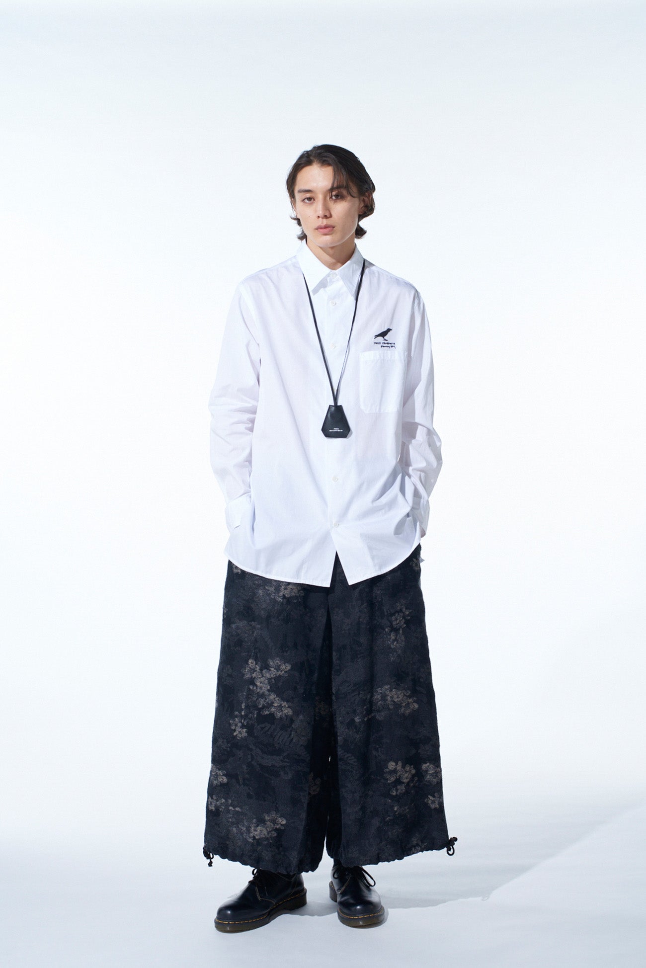 這款2WAY褲採用細緻的花卉提花面料製作,通過調整褲腳繩即可從袴風格轉變為醒目氣球形狀。精緻的織造帶來柔軟的質感,且可配合多種鞋型,從靴子到涼鞋皆宜。