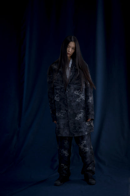 S’YTE × GDC Collaborate Collection- FADED FLORAL JACQUARD OCTAGON STAR EMBROIDERY WAIST-STRING PANTS