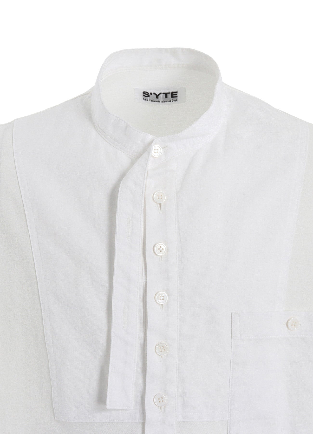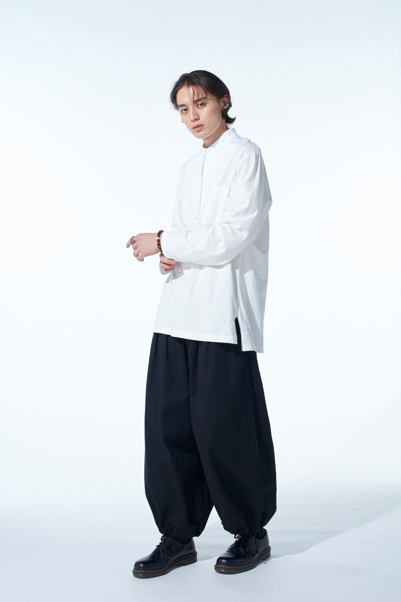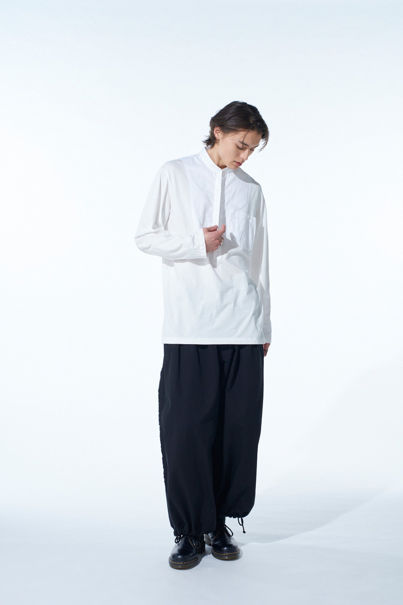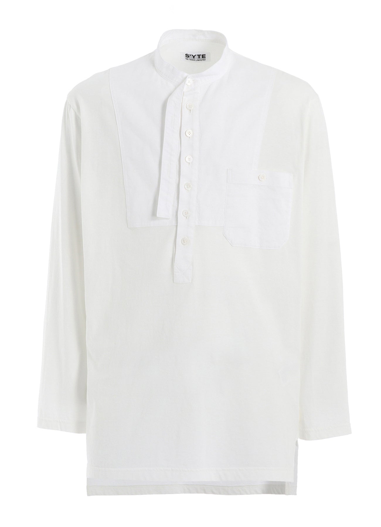WOVEN AND JERSEY COMBINATIONS STAND COLLAR HENLEY NECK PULLOVER