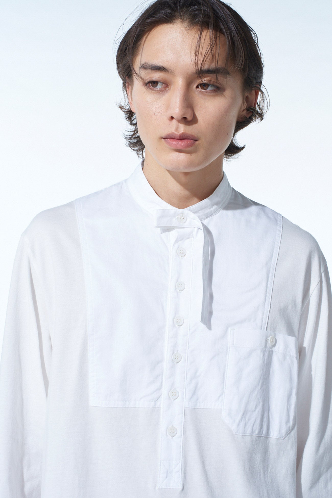 這款上衣結合薄布料和Twill,配有立領及獨特的可調節Transforming設計元素,如可作多種造型的延長側邊。領口、Front Placket和口袋使用Twill,營造襯衫感,與背心及夾克搭配效果佳。