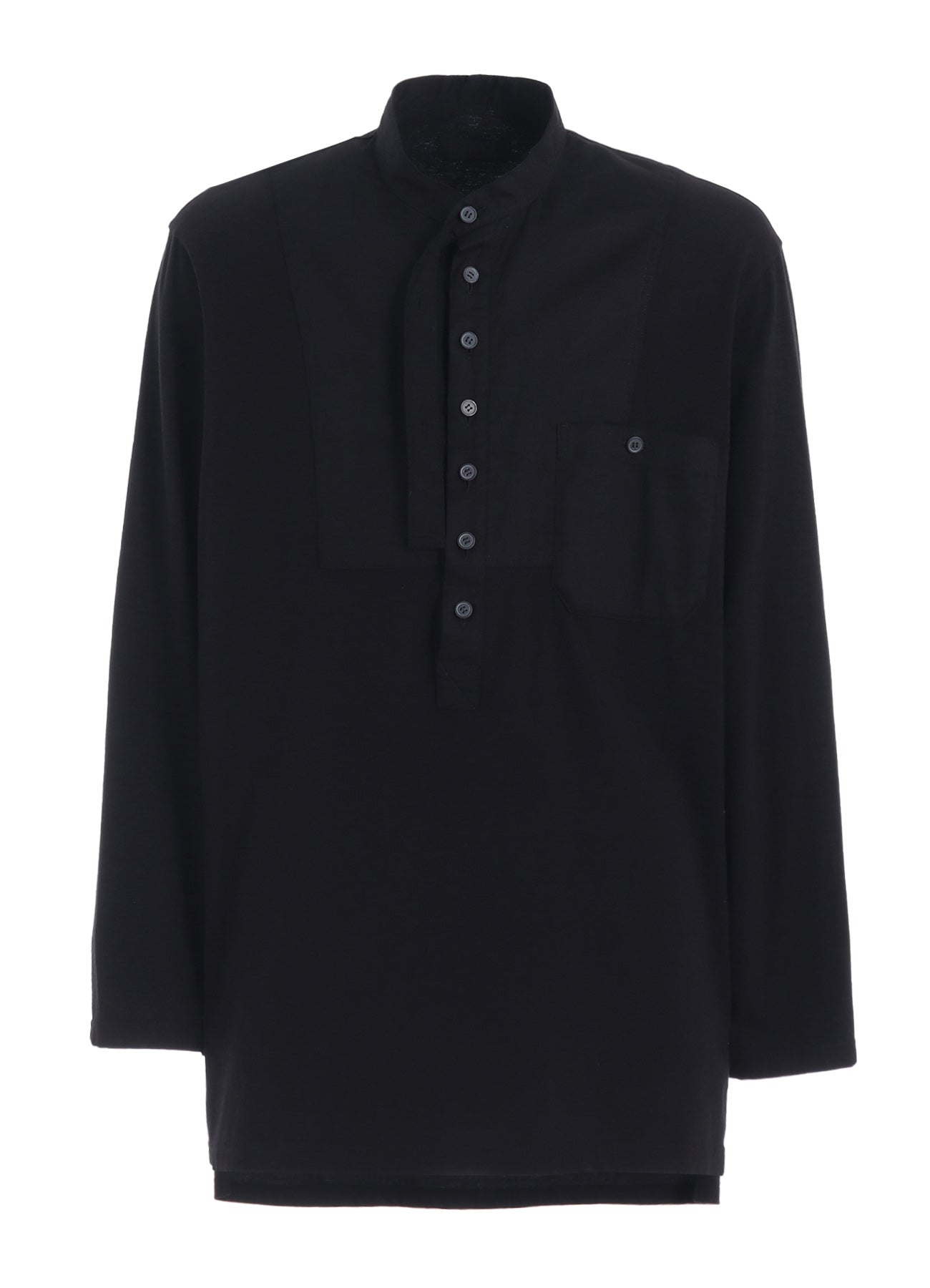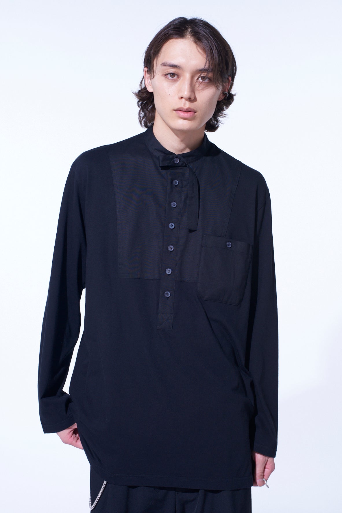 WOVEN AND JERSEY COMBINATIONS STAND COLLAR HENLEY NECK PULLOVER