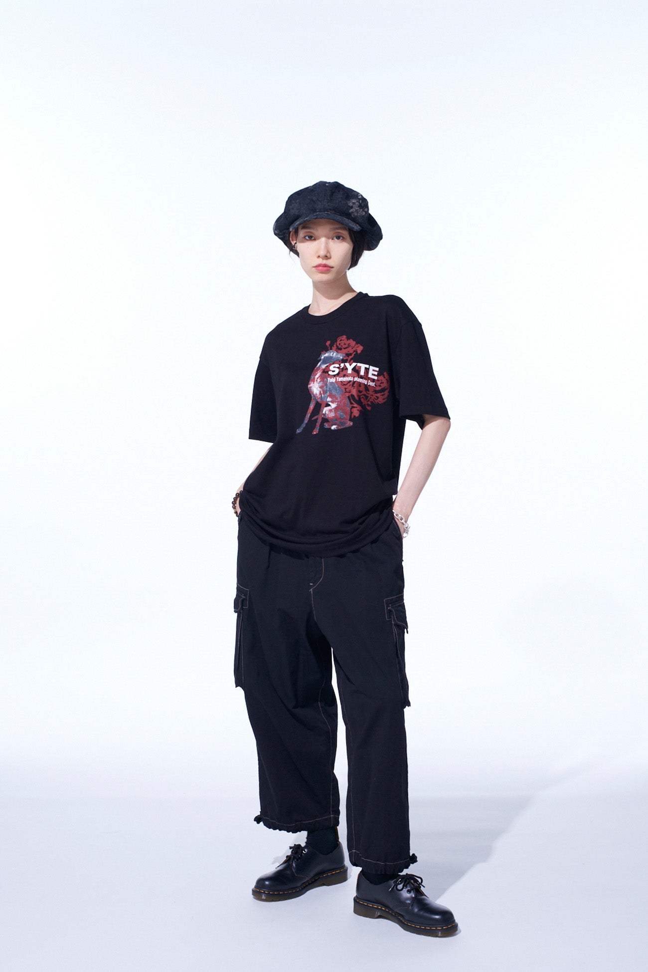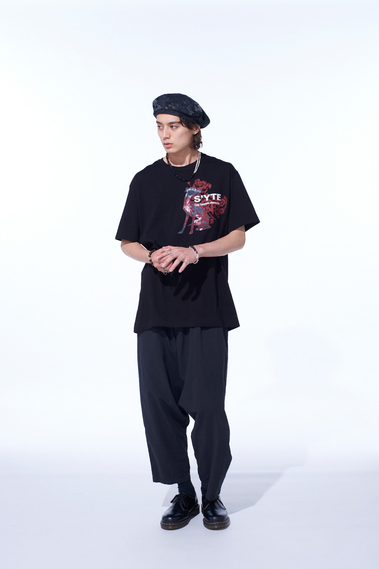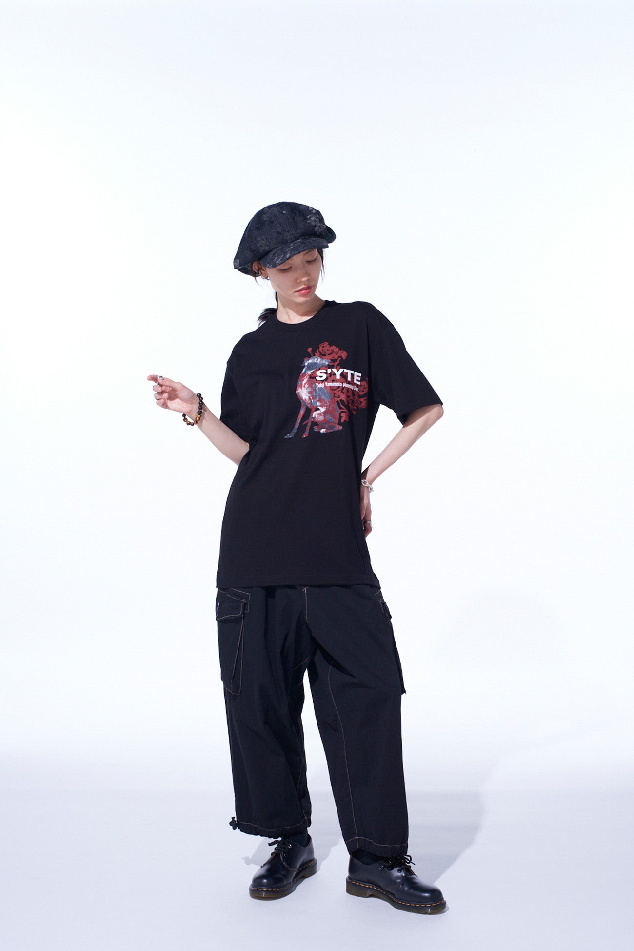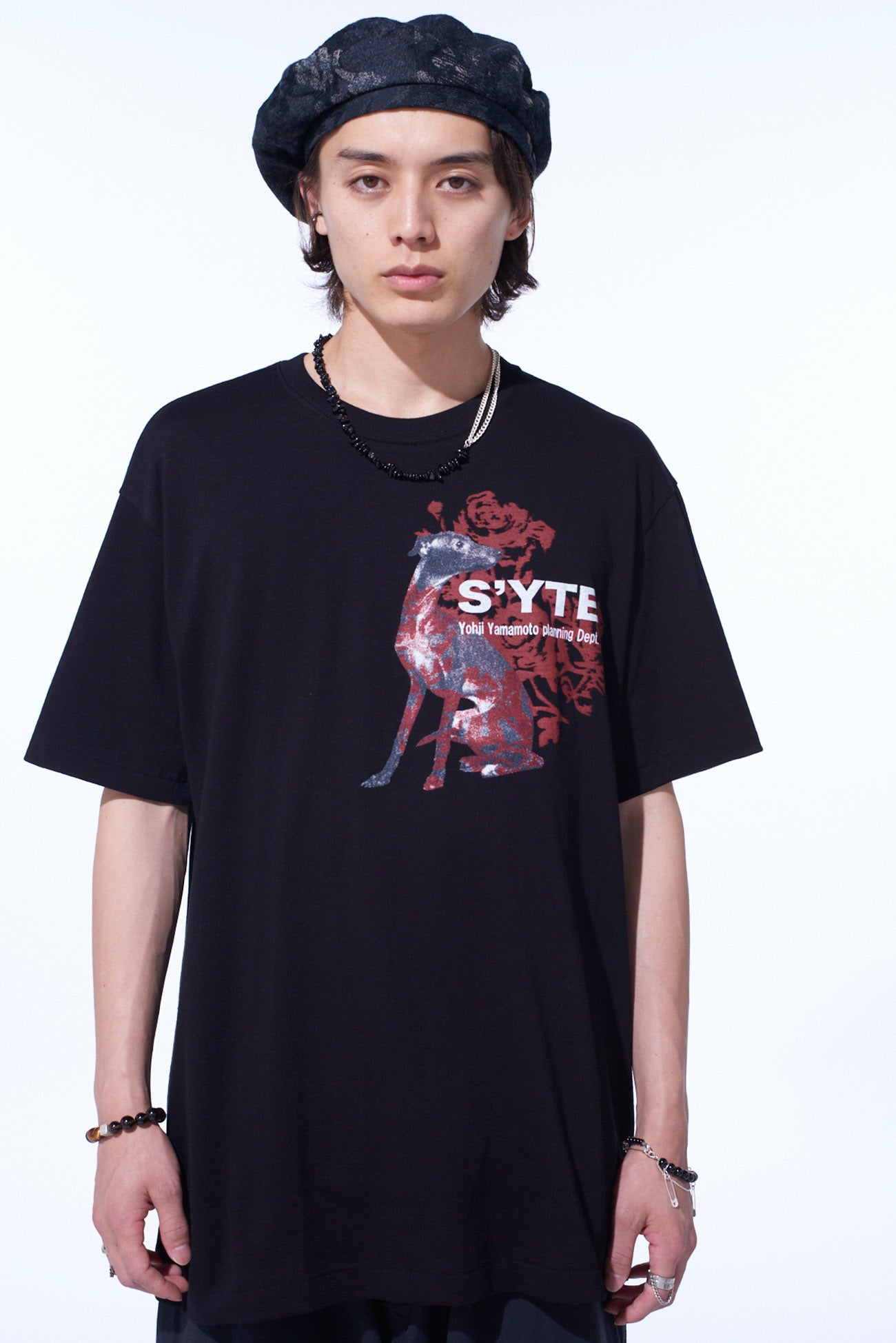 S'YTE 的這款上衣將動物的可愛與本能融為一體,以鮮豔色彩營造黑暗氛圍。灰色狗狗圖案上的紅色點綴使其成為內搭服裝的亮點。采用久米纖維的無縫設計,確保耐用性與舒適感。提供 S、M、L 多種尺寸選擇,適合不同風格。