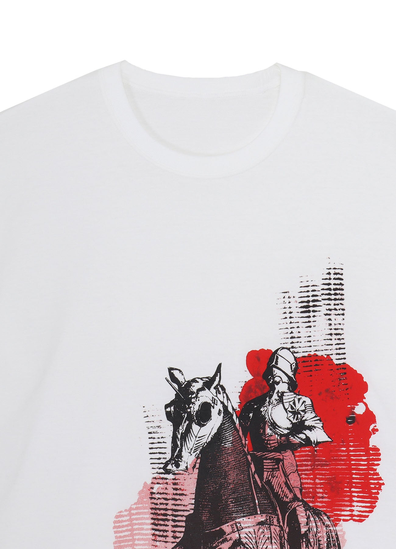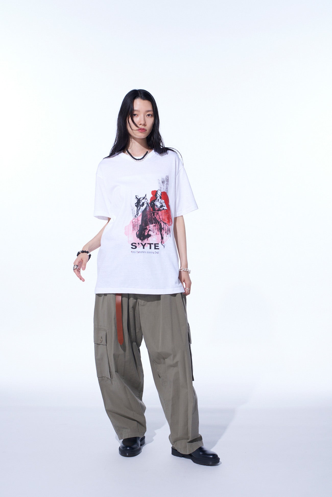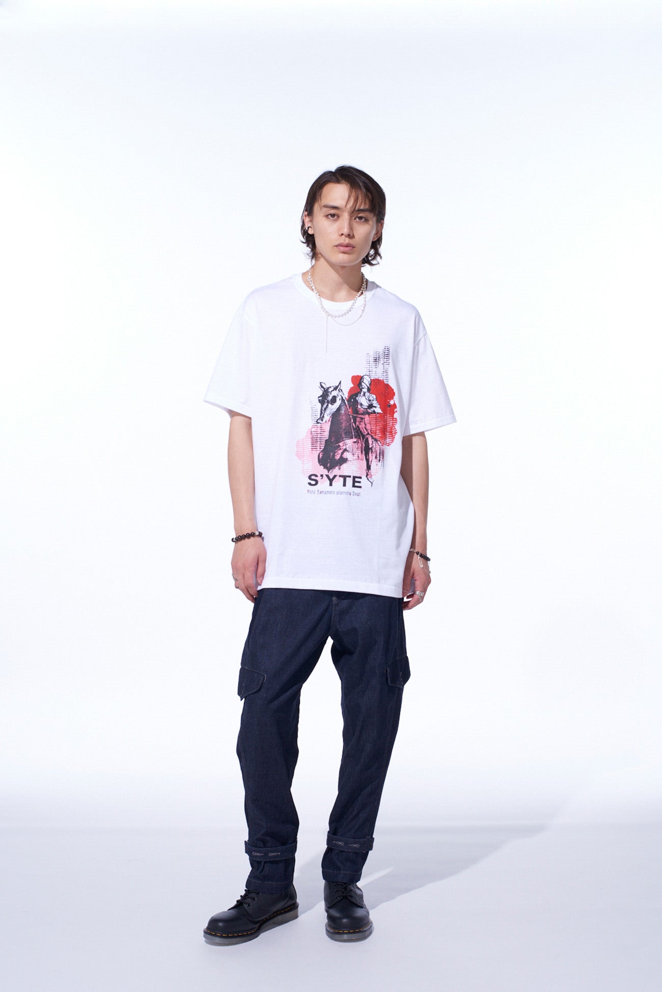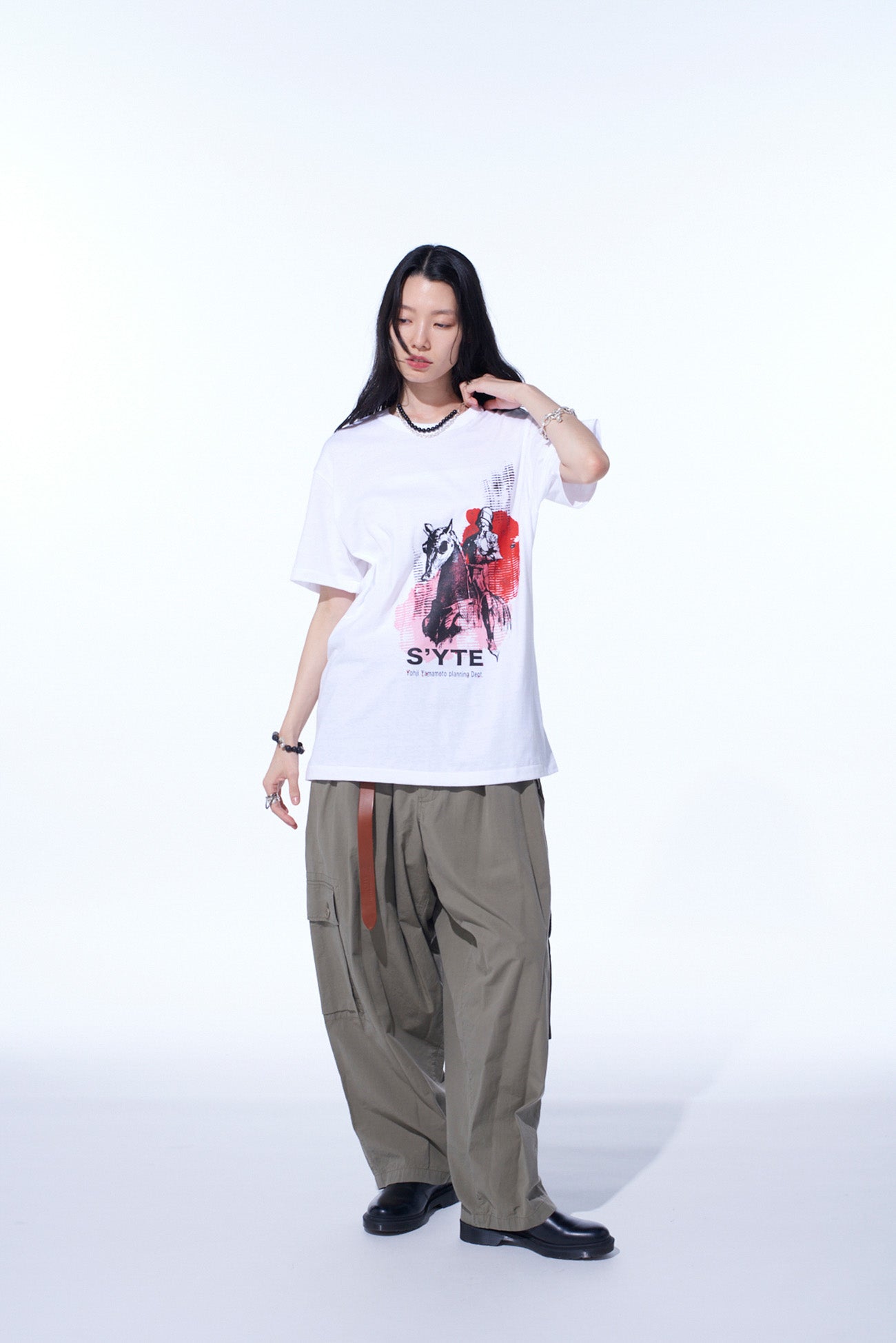 這款圖案上衣採用Kume Sen-I的定制布料,印有獨特的騎兵圖案。無縫設計增強了舒適度,設計百搭,適合單穿或內搭。尺寸範圍從合身女性款到Oversized潮流風格。