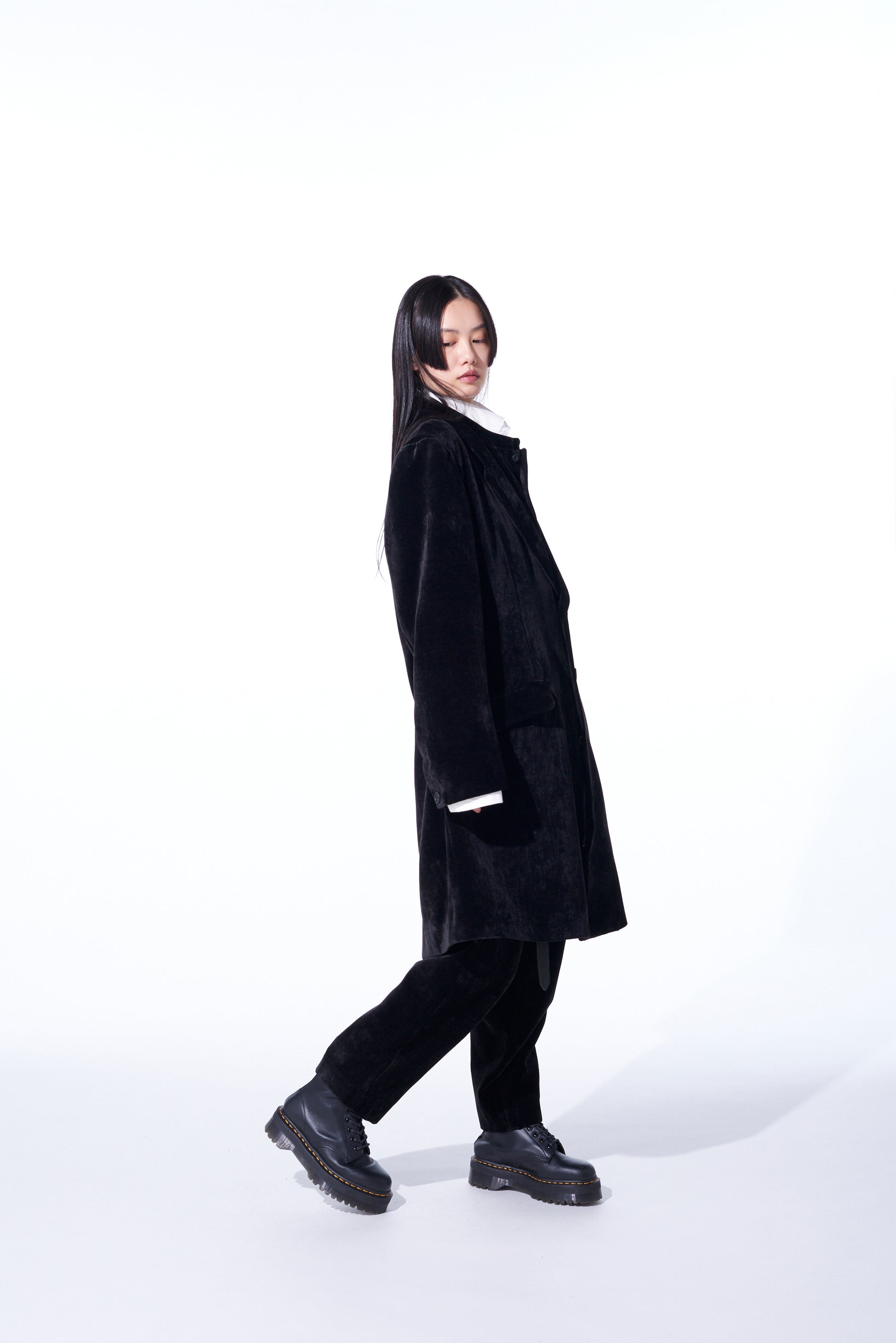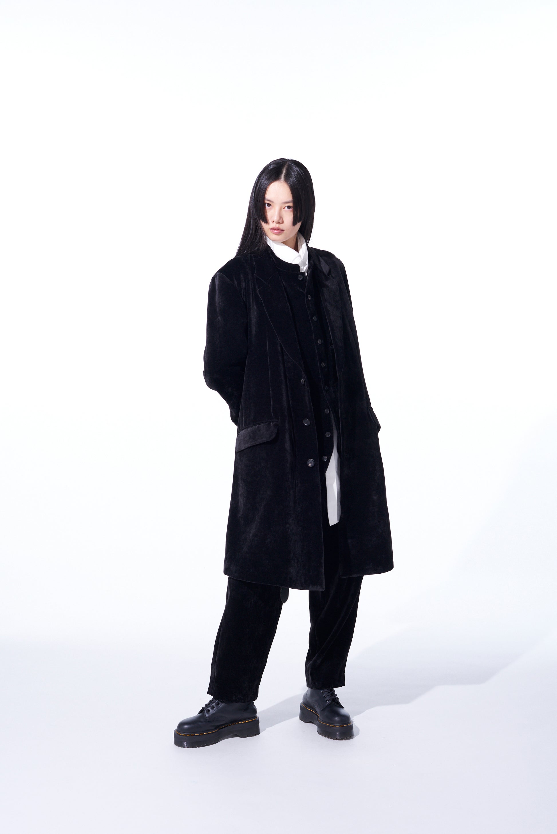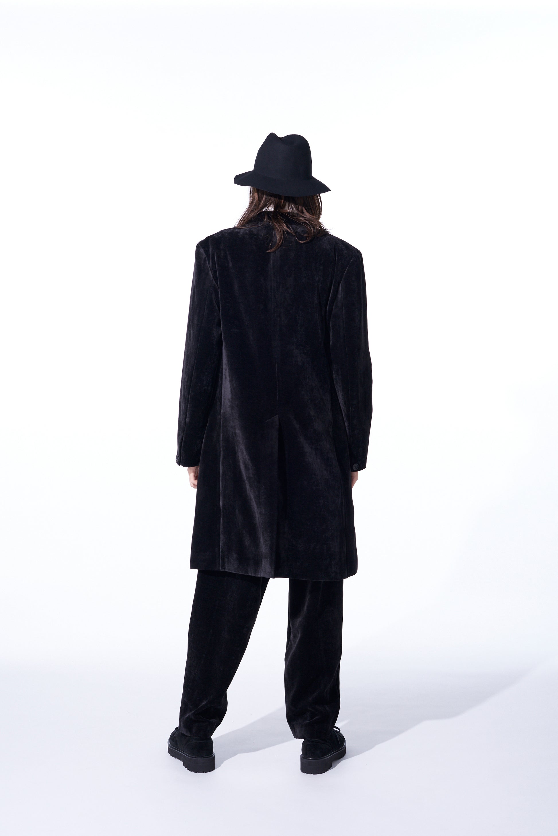 VELVETEEN NOTCHED LAPEL LONG JACKET