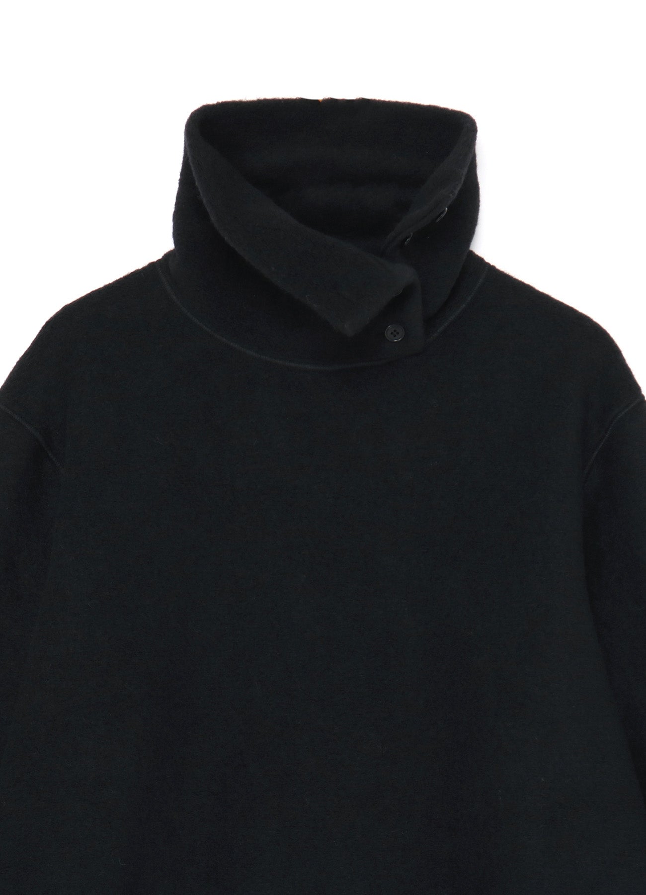 領口有按鈕開合的細節,可以折返領子進行變化。稍長的著丈也透過左右的開衩展現輕盈感,方便進出褲子口袋,功能性也很棒。