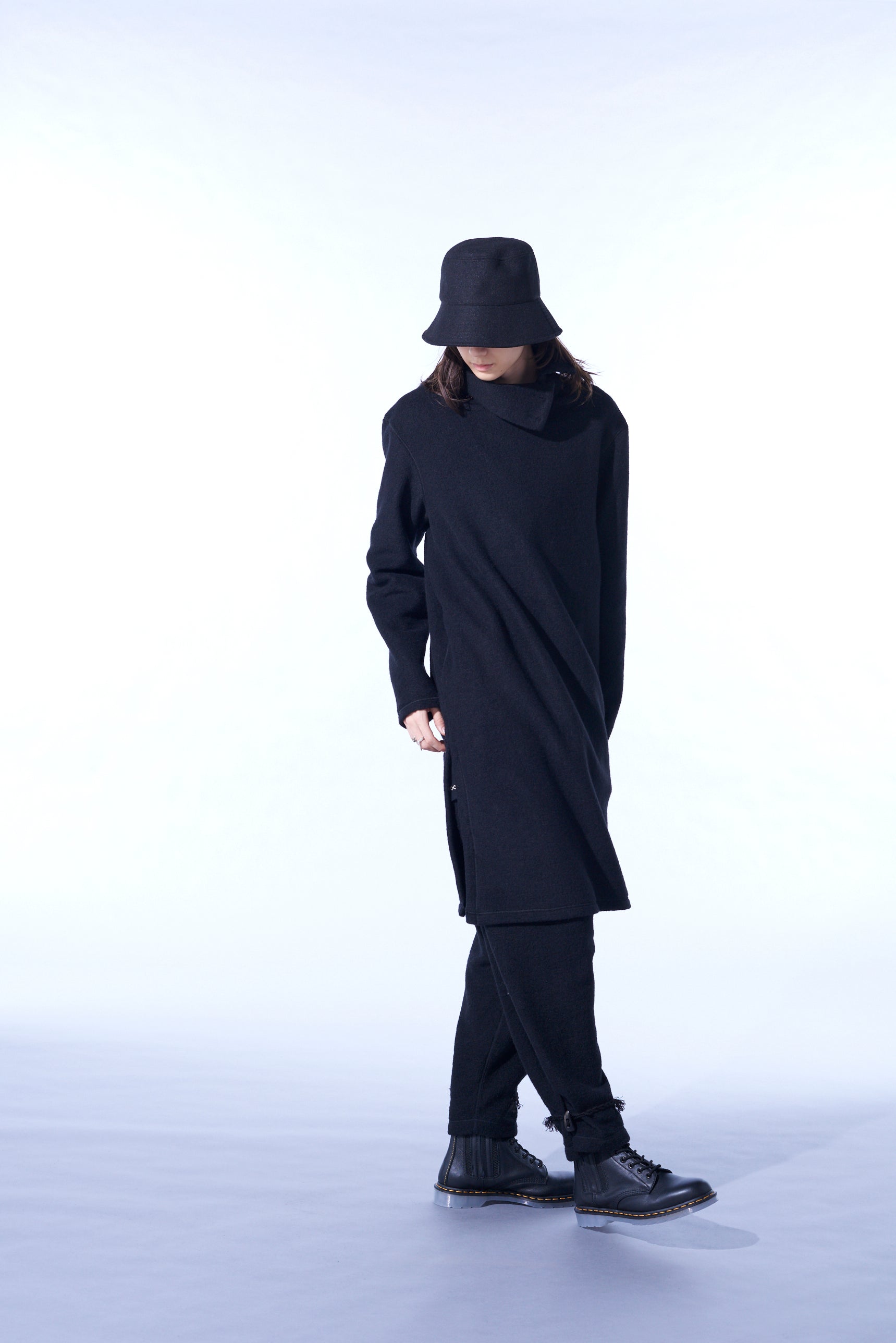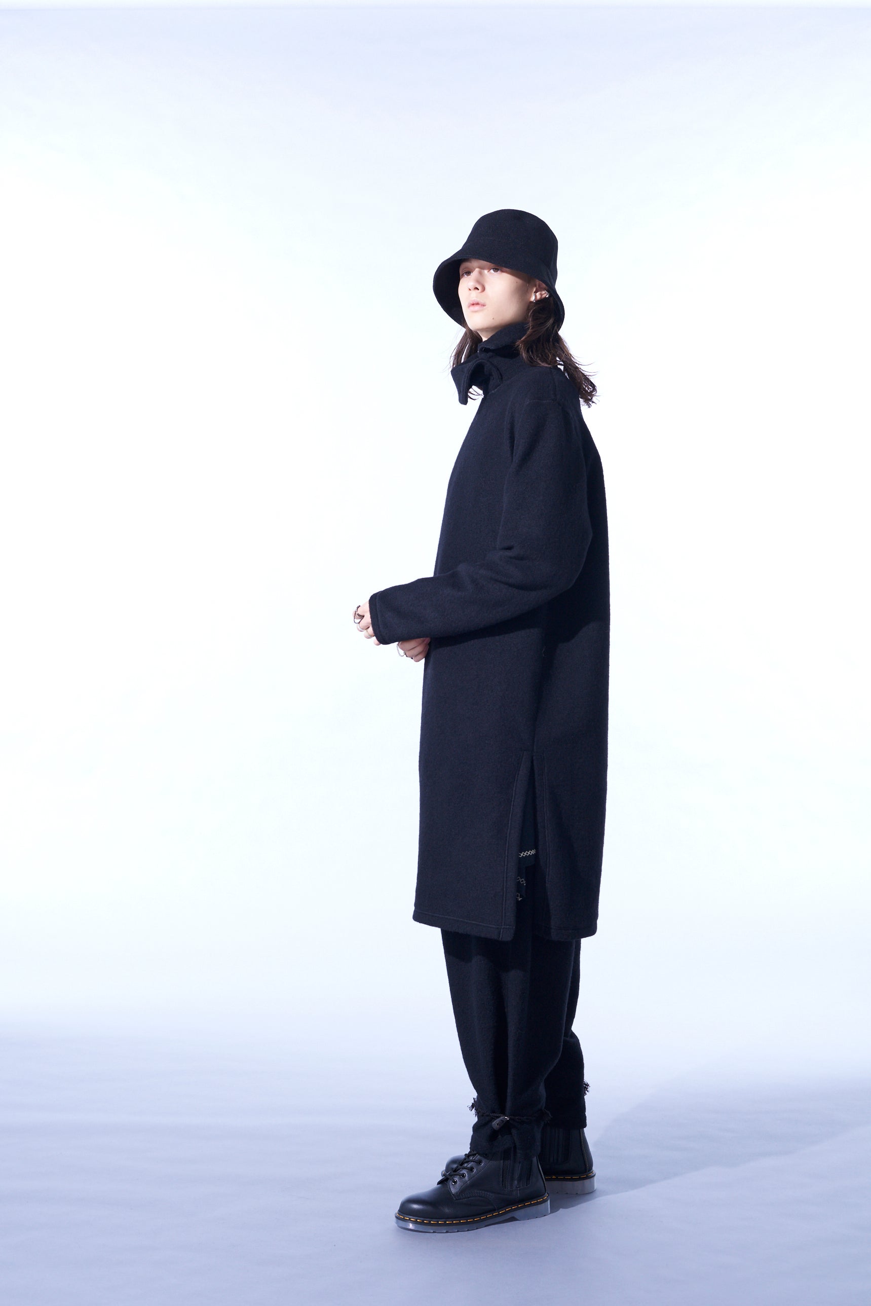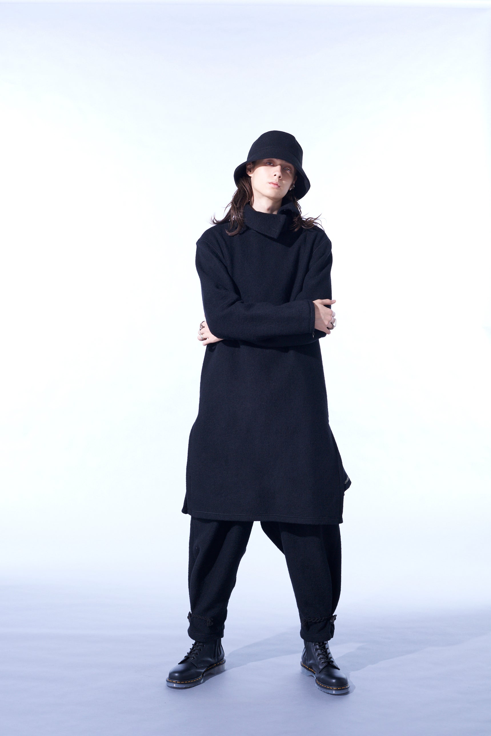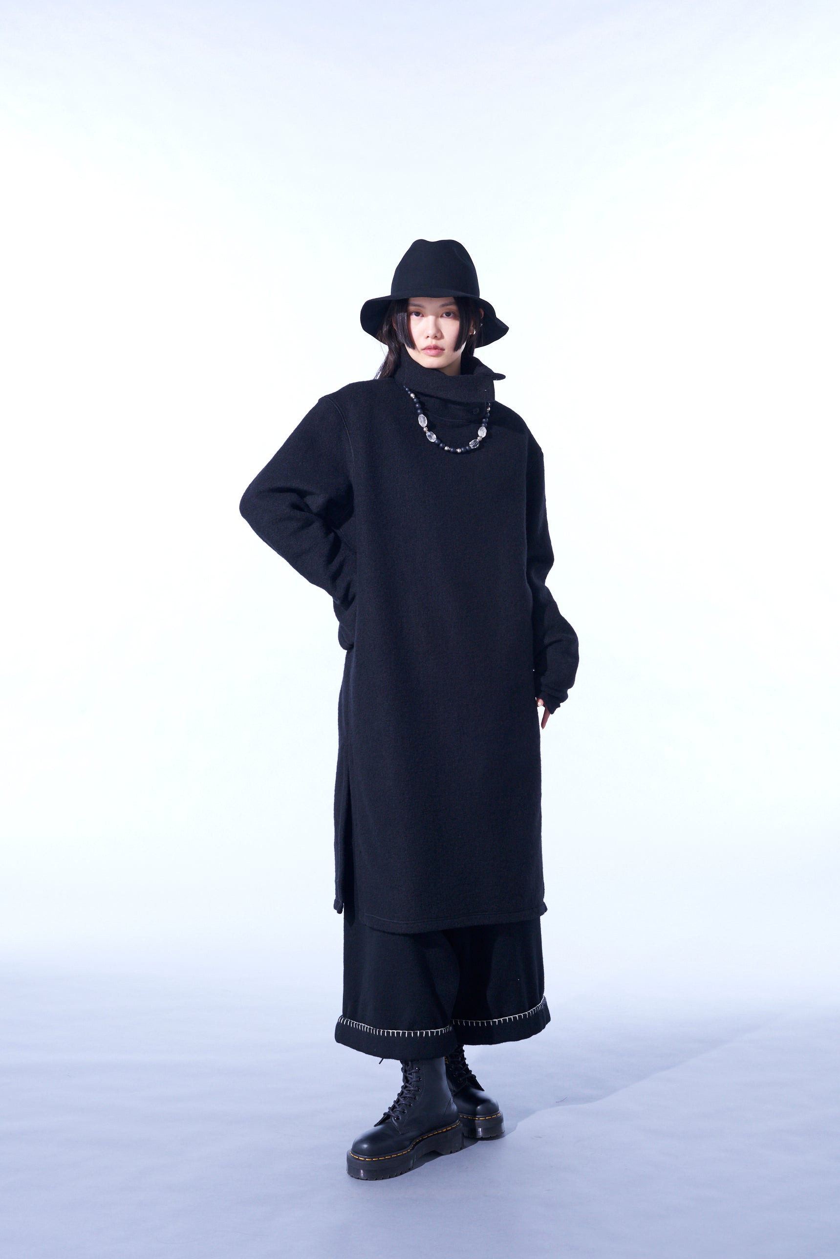 著丈的長度相對於身幅被壓抑,特徵是縱長的輪廓的高領切割衫。