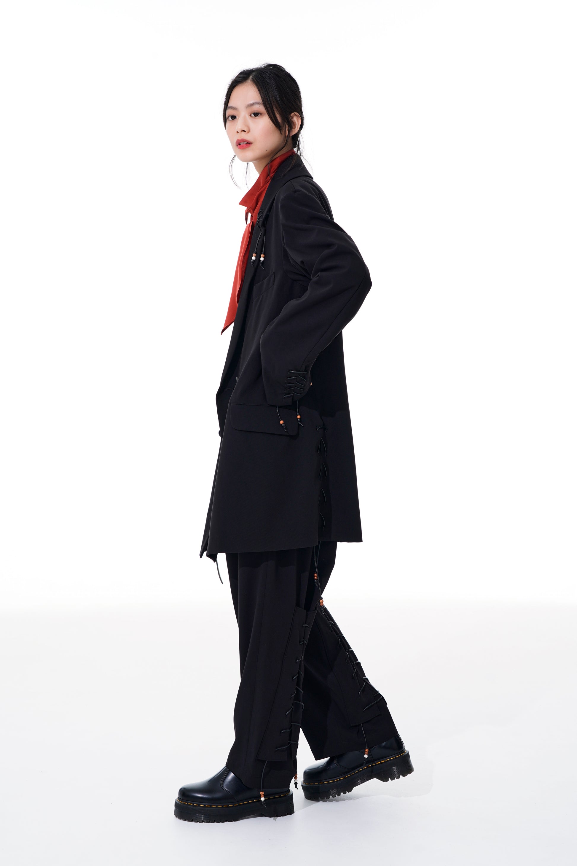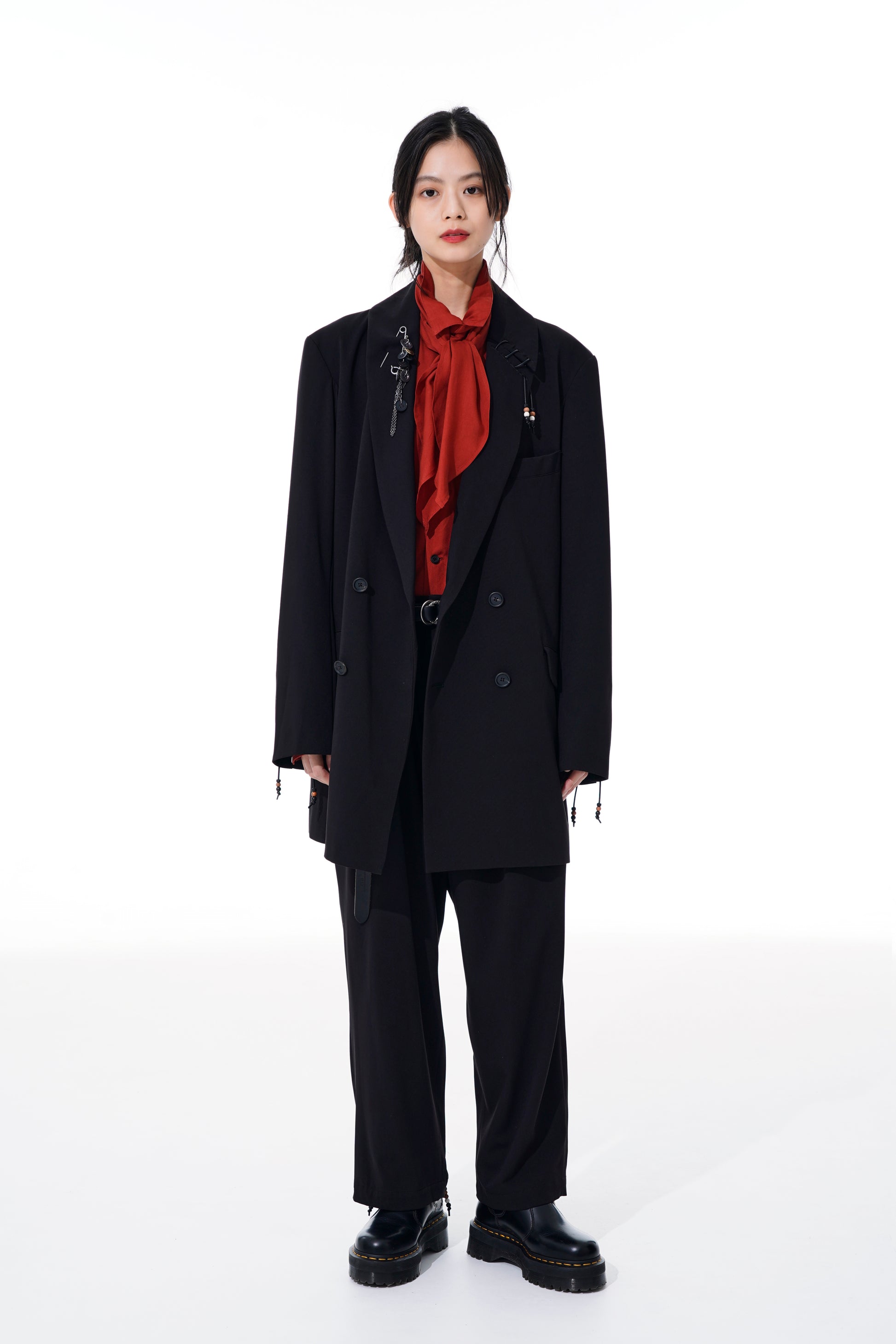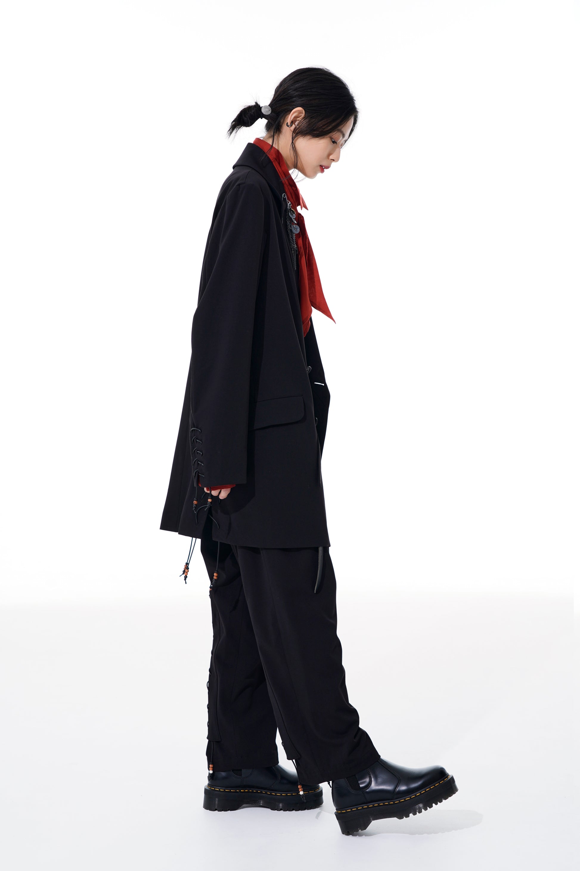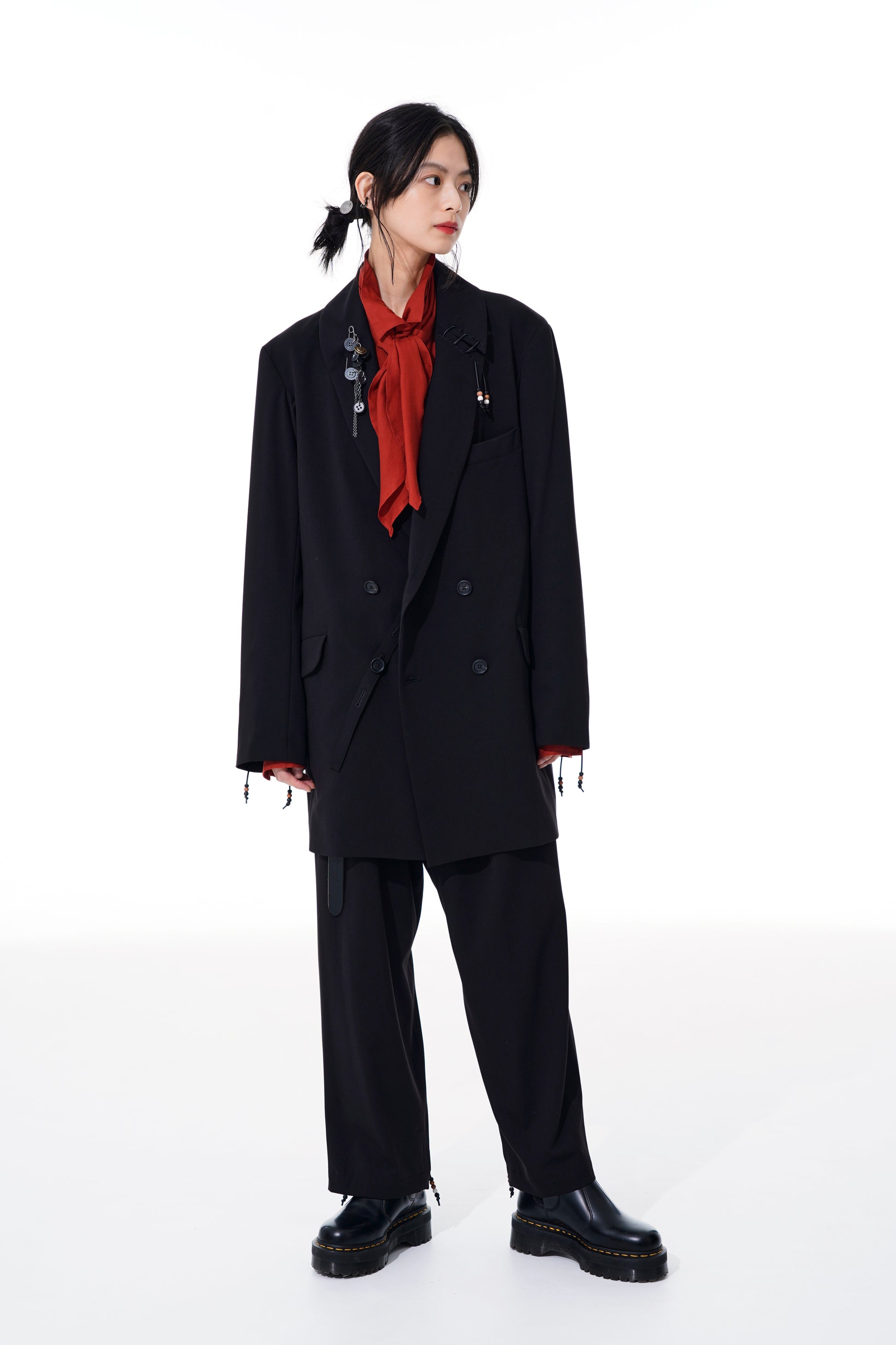 - 建議搭配正裝鞋或絲絨等有質感的鞋子。
