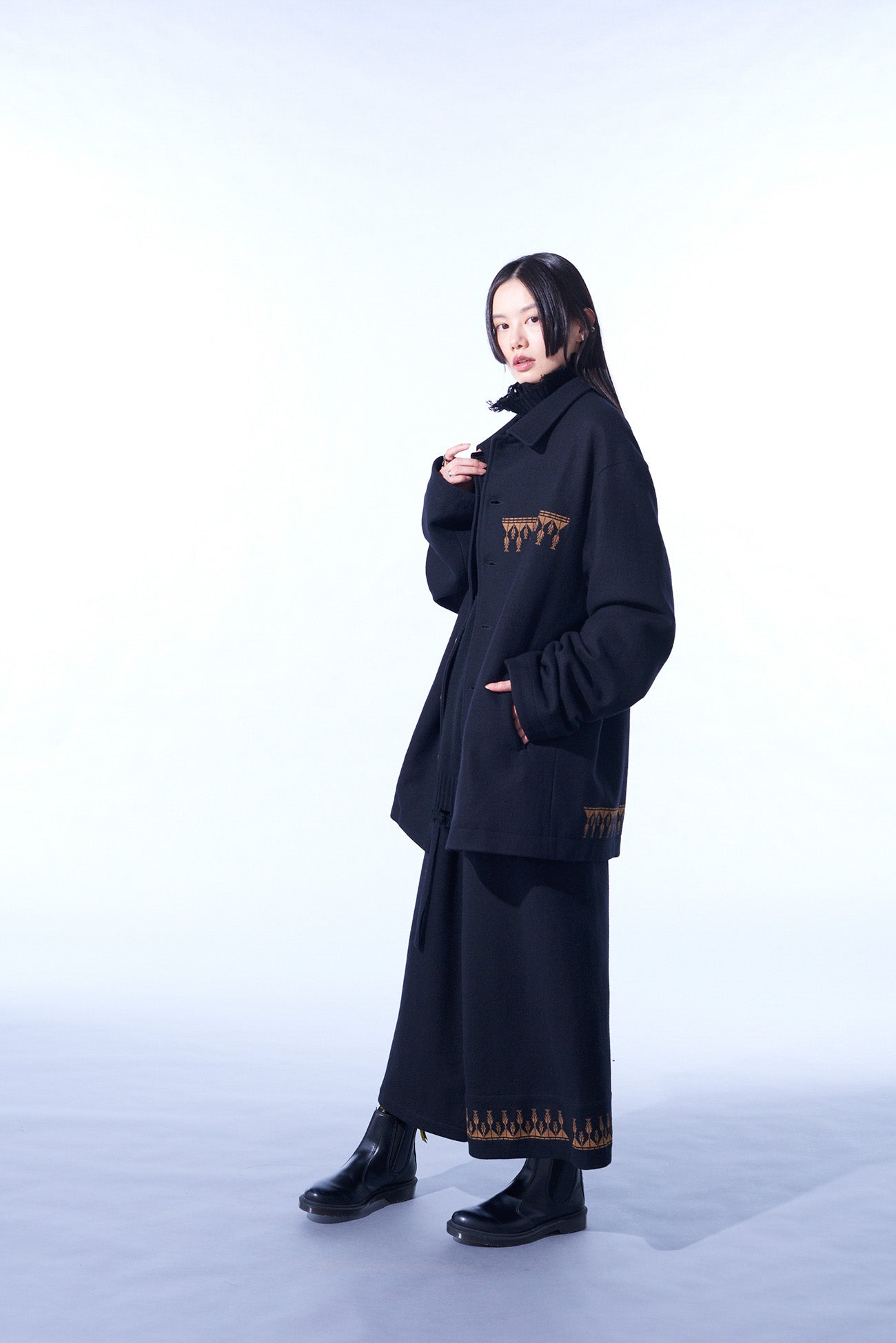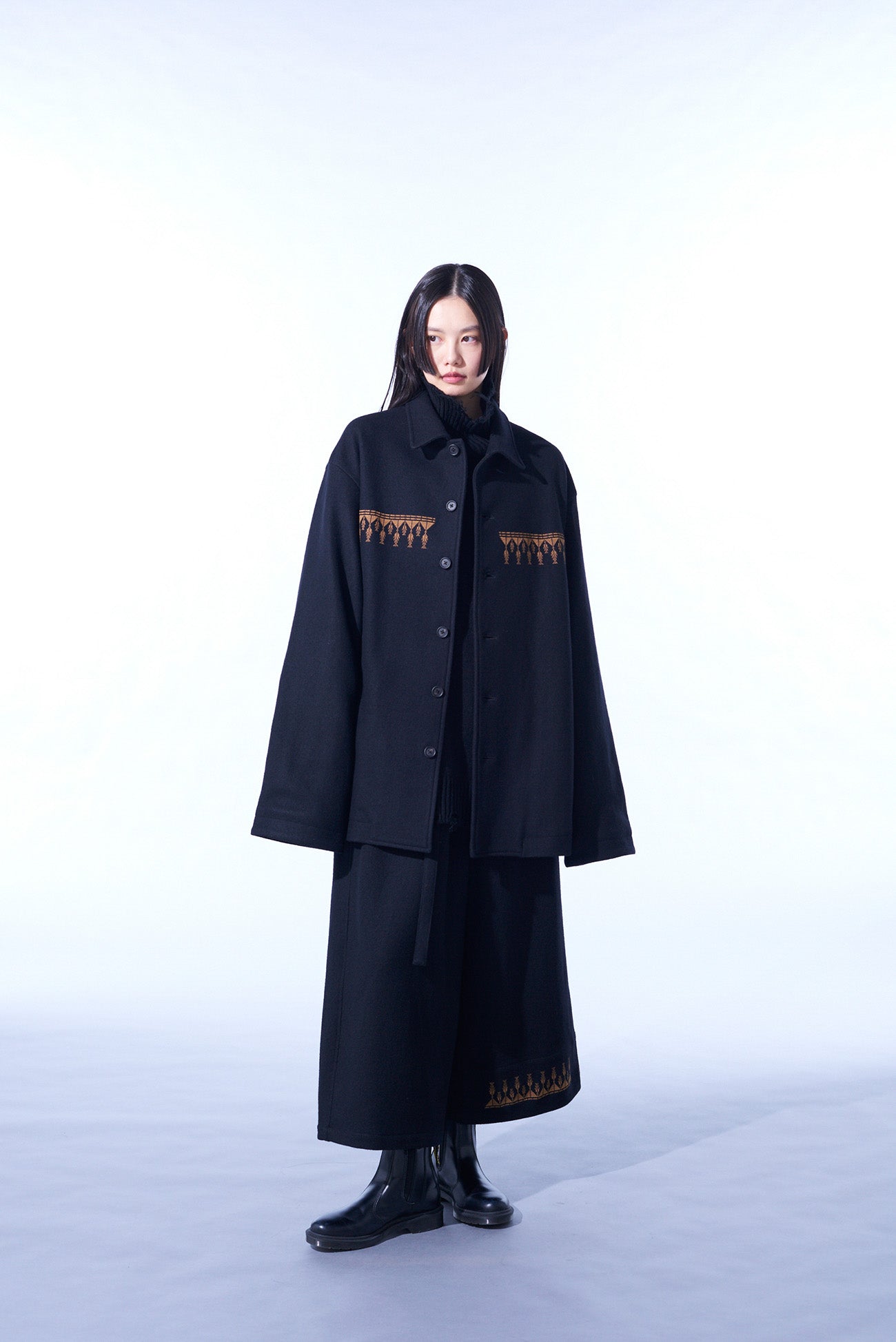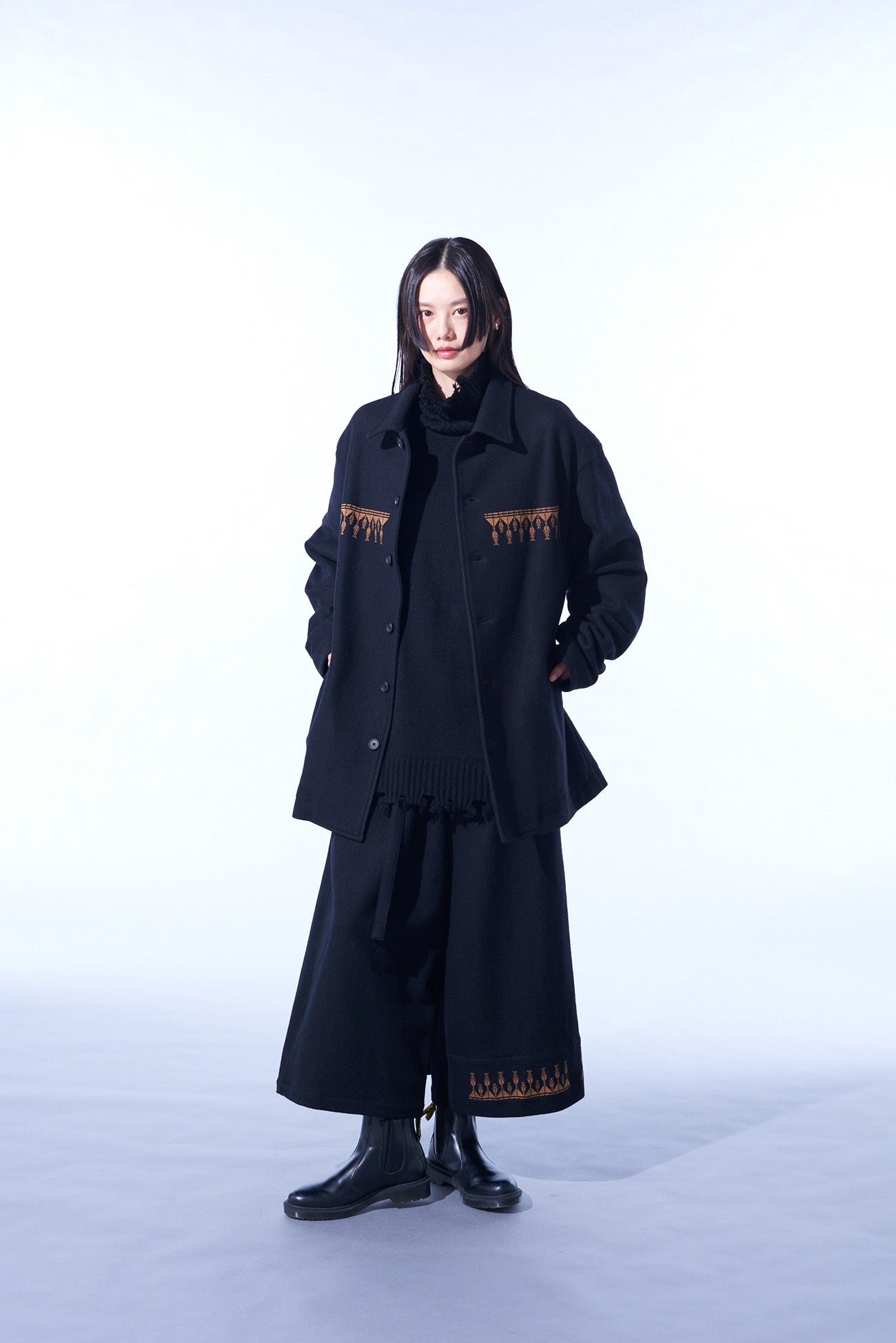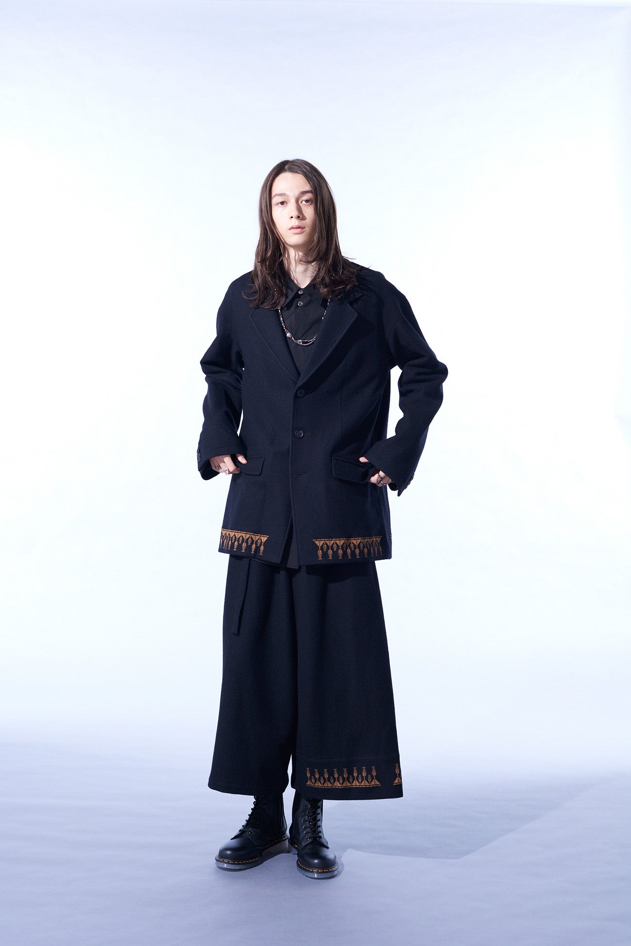 這些裹身式裙褲的左下擺和裹身邊緣飾有幾何刺繡,增添了民族風情。複雜的顏色選擇包括海軍藍配紅色和黑色配金色。彈性腰帶提高了貼合度,D 形環窄腰帶增強了設計感和舒適度。裹身布料可調整為無性別裙子般的外觀,非常適合冬季。