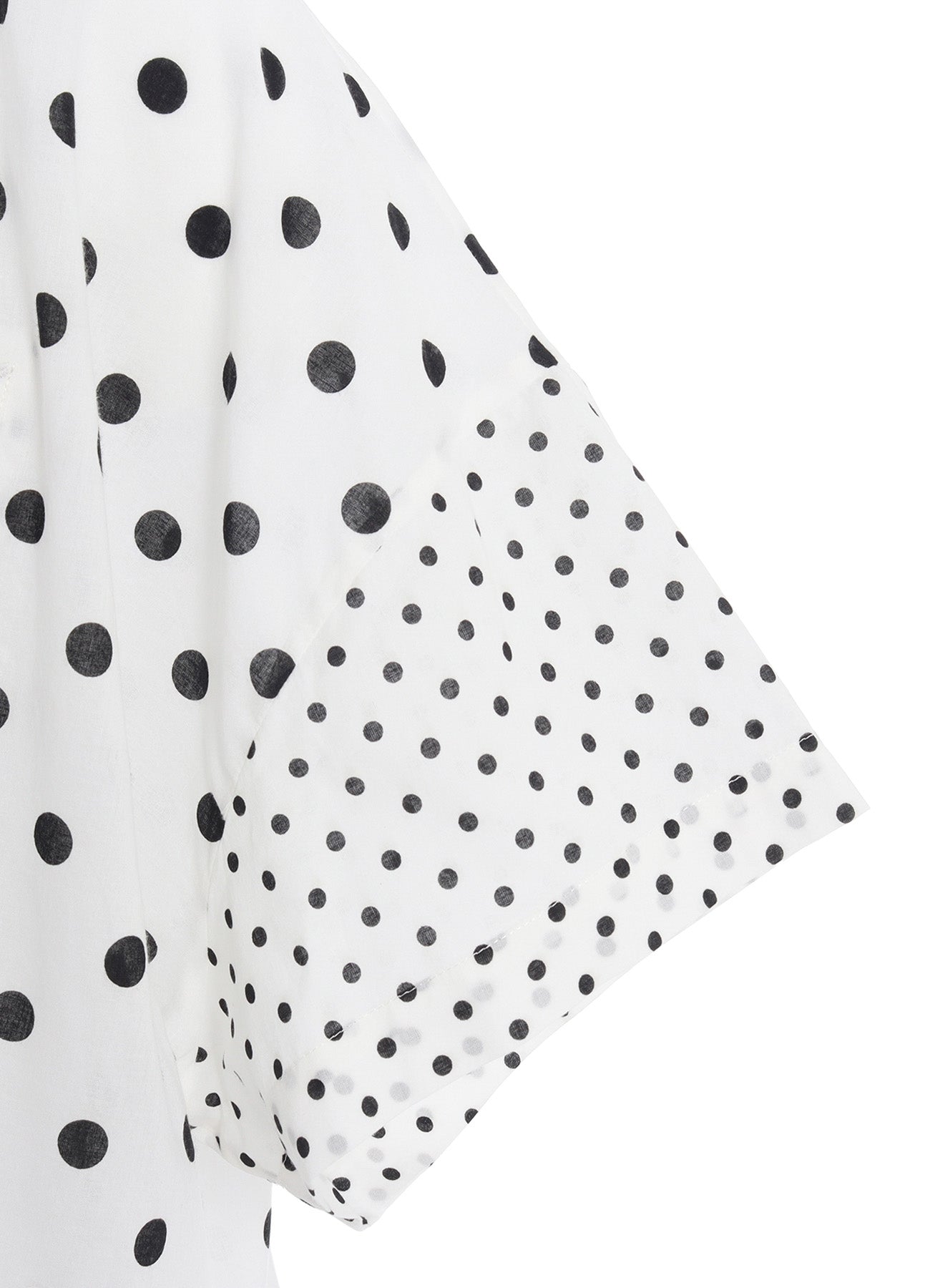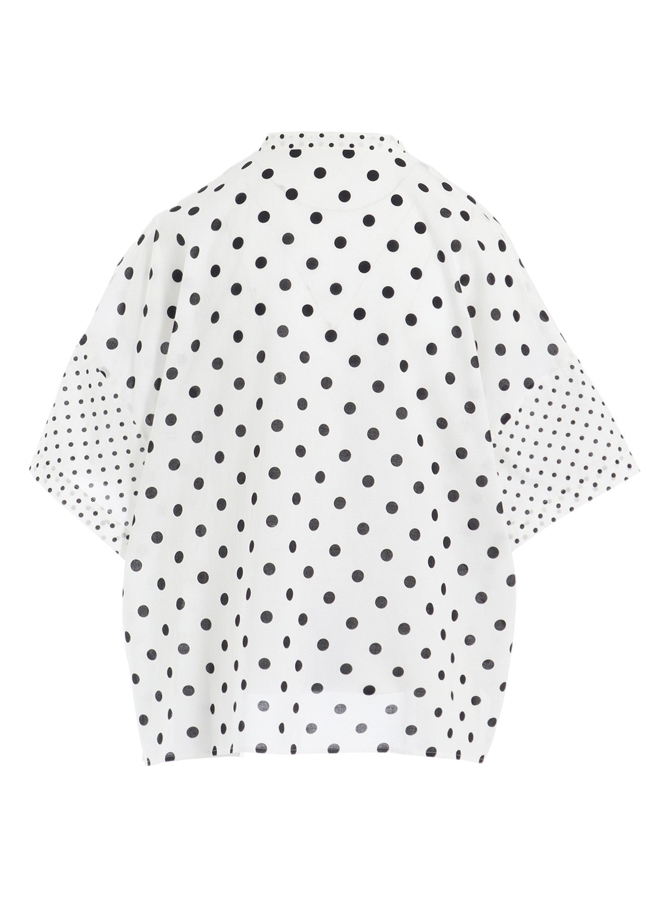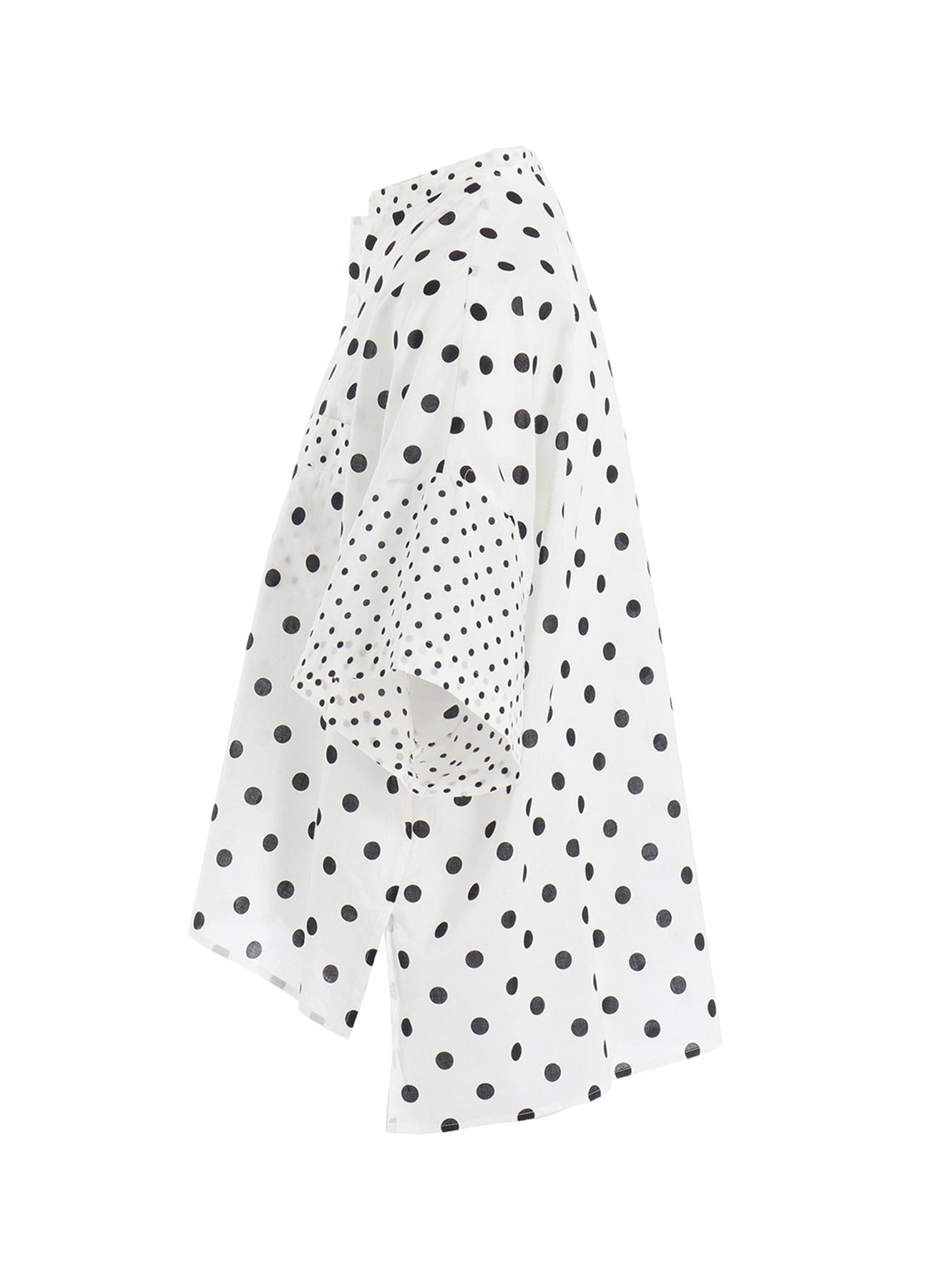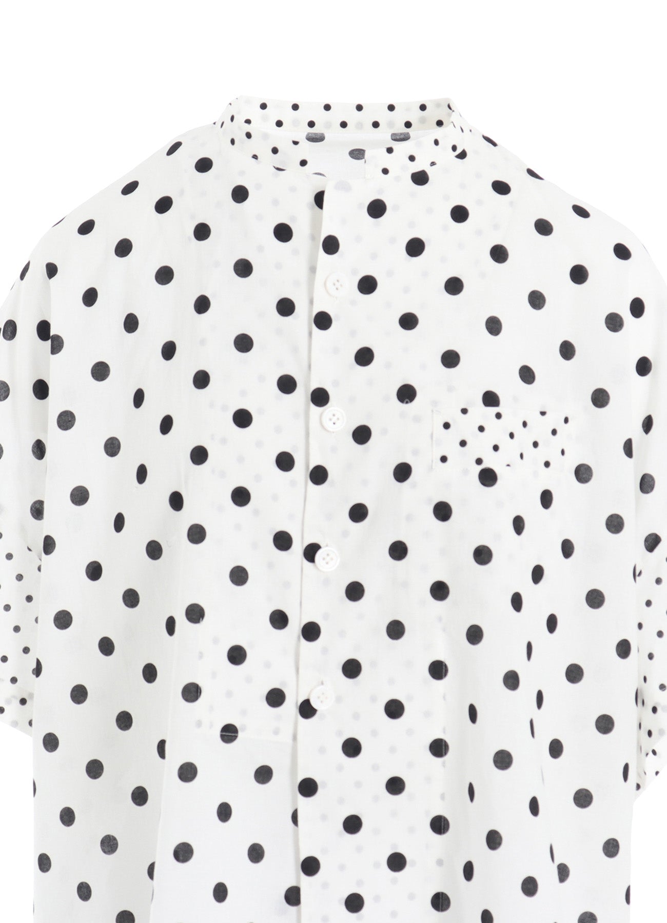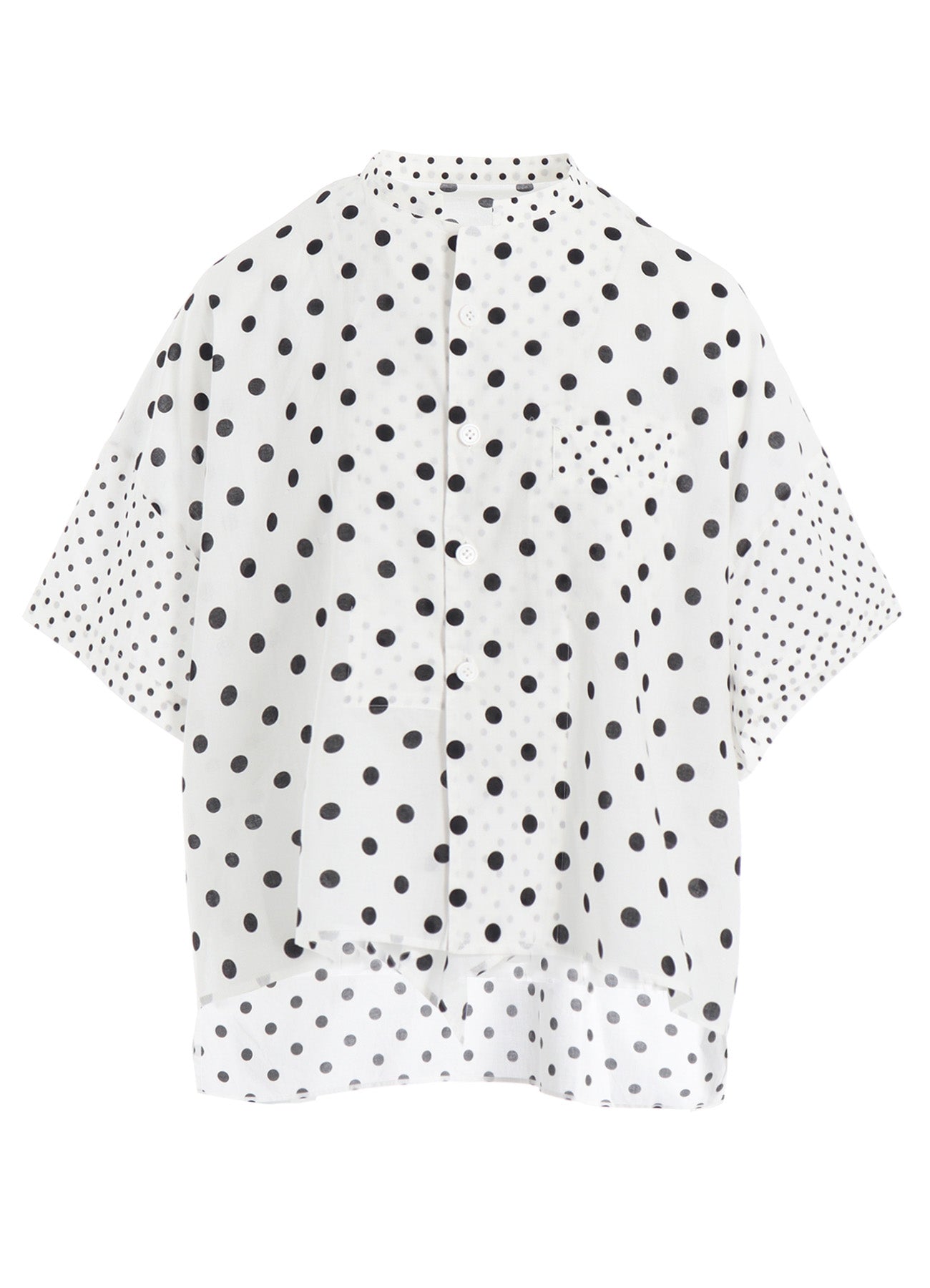 這款襯衫將不同尺寸的波點面料結合成盒型輪廓,搭配立領,賦予簡單圖案獨特的表現。緊湊的長度與寬鬆的褲子完美搭配。採用光滑的lawn面料,即使在潮濕季節也能保持舒適。