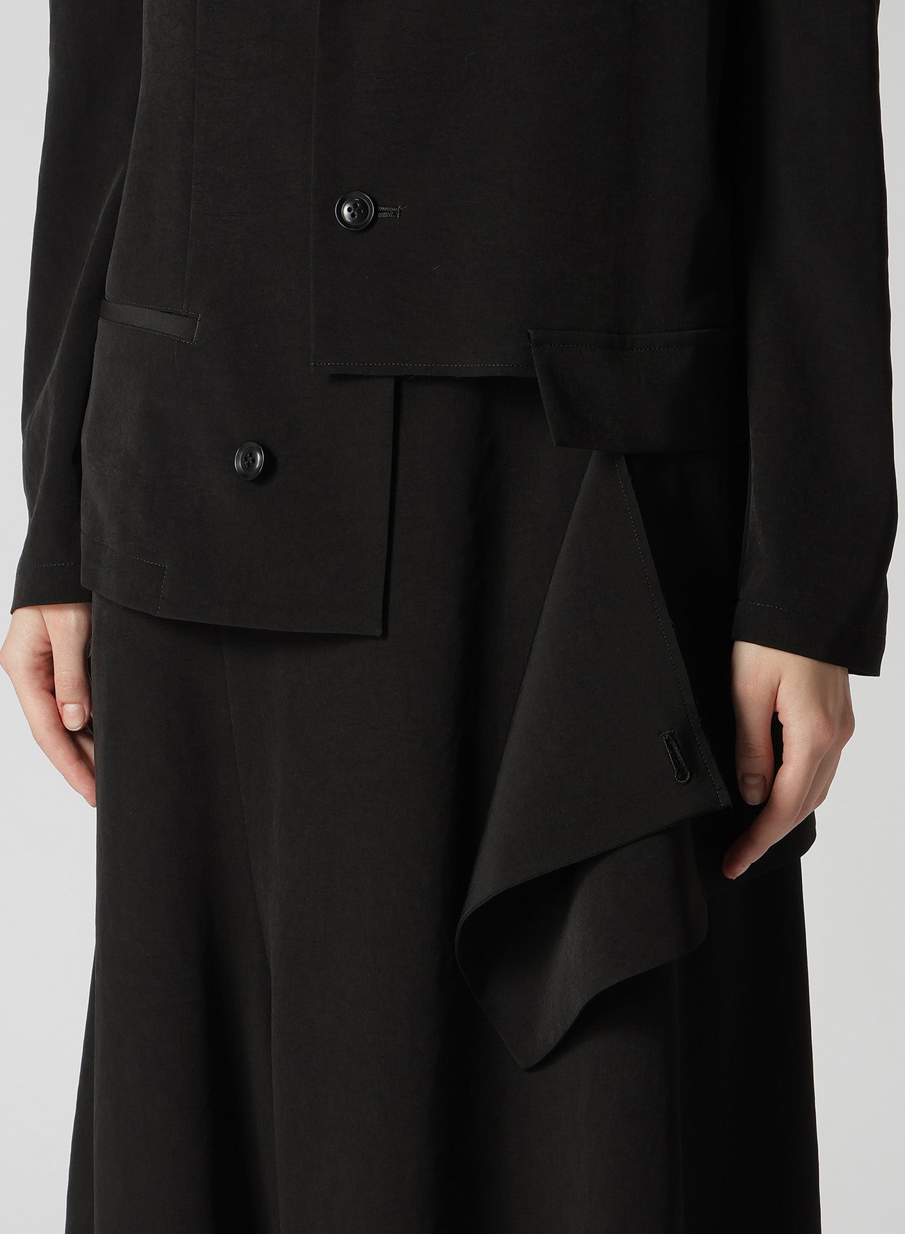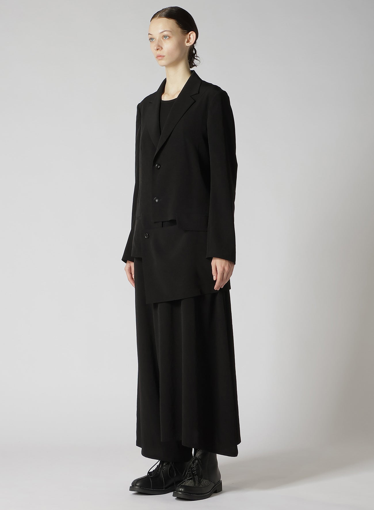 這款左前單排扣外套採用三醋酯/聚酯纖維雙縐製成,是一款主打單品,具有奢華柔軟的光澤和抗皺性。輕盈的質地確保整個季節的舒適感。左前側的大膽鏤空可以隨意放置,也可以用紐扣固定,打造多種造型。