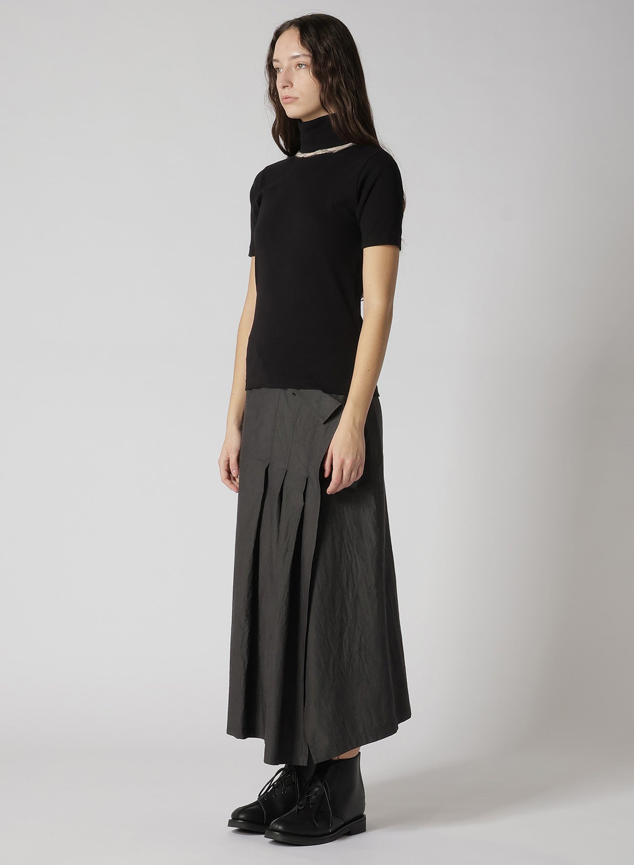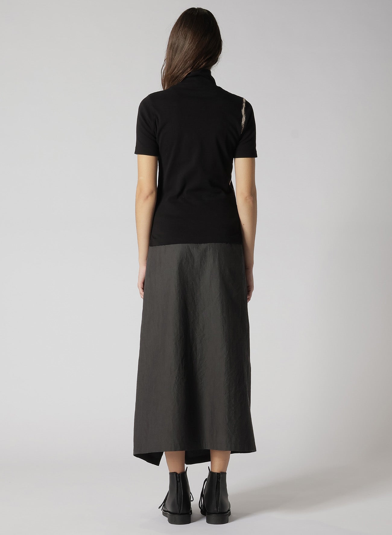 這款柔軟棉質上衣採用高領、短袖設計,工匠精心採用拔染技術,打造局部白色區域。乾淨俐落的版型非常適合用作連身裙或夾克的內衣。