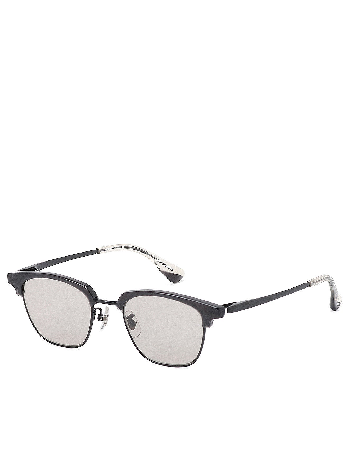 Y's Eyewear 這款眼鏡採用精緻的Wellington風格框架,搭配醋酸纖維眉架,呈現優雅且復古的美感。支架兩側的β-鈦合金鎖扣提供奢華舒適的佩戴感受。