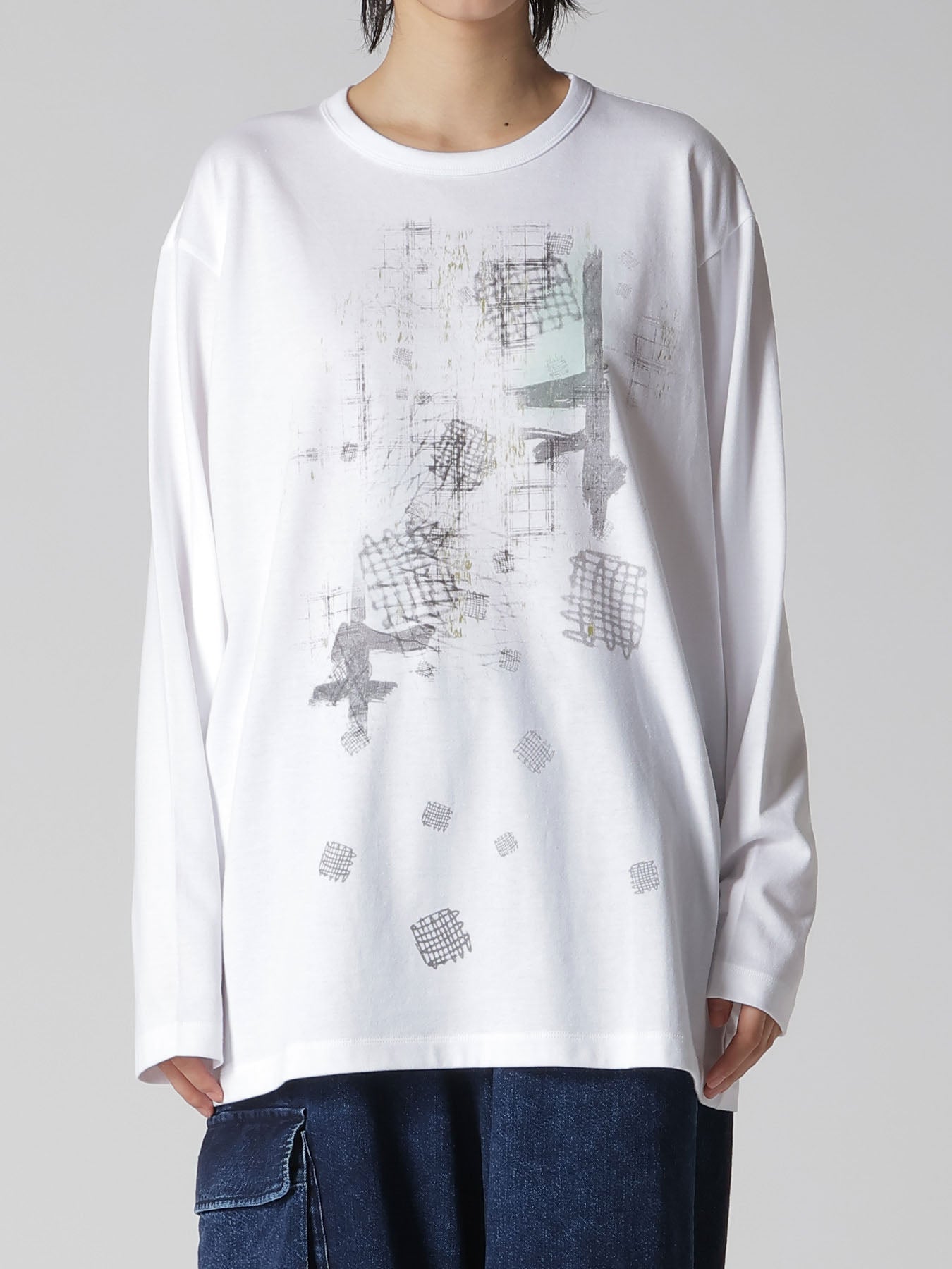 COTTON JERSEY PLAID PRINT LONG SLEEVE BIG TEE