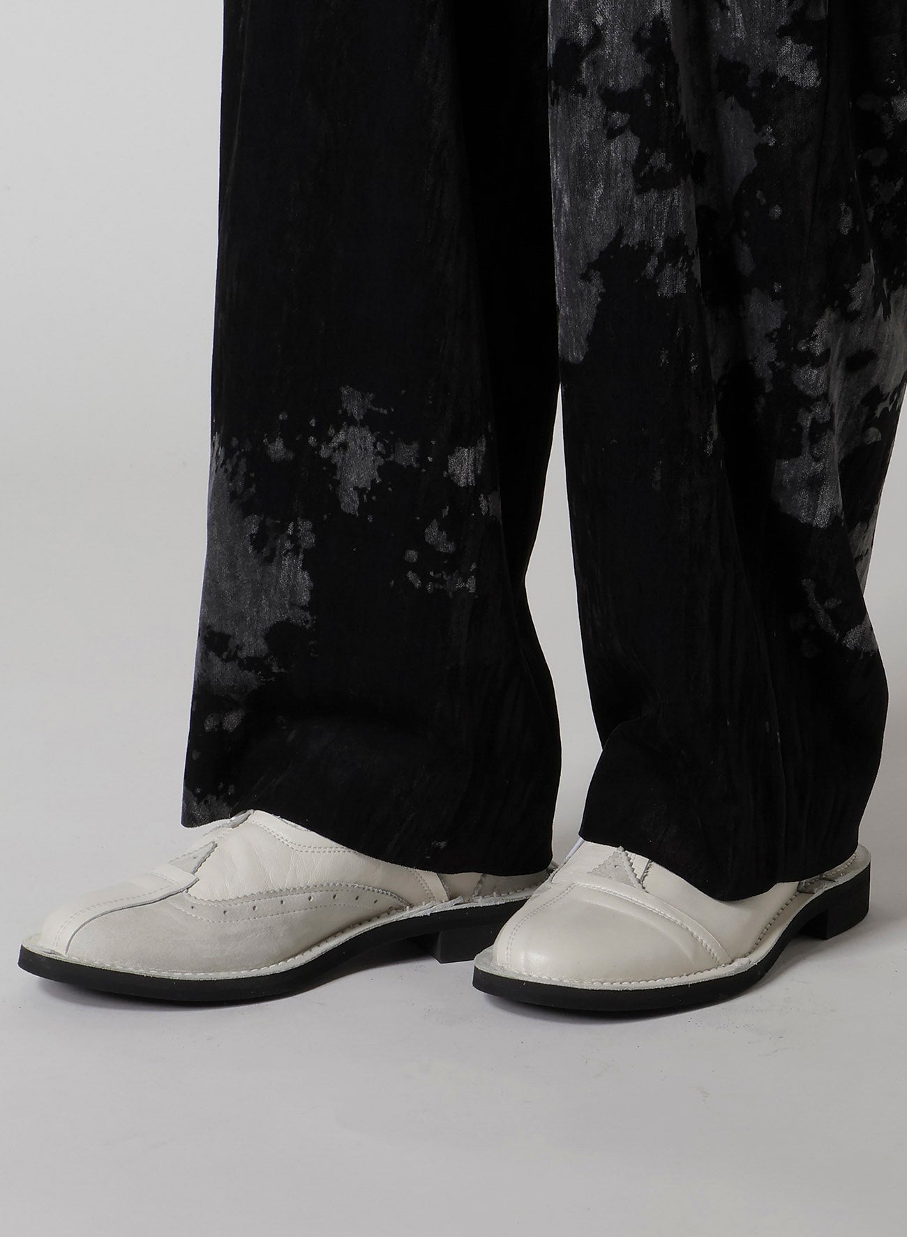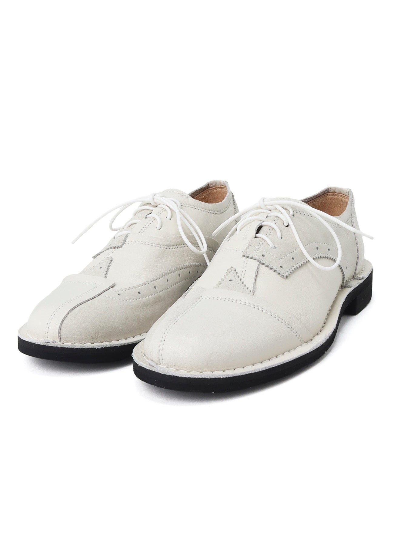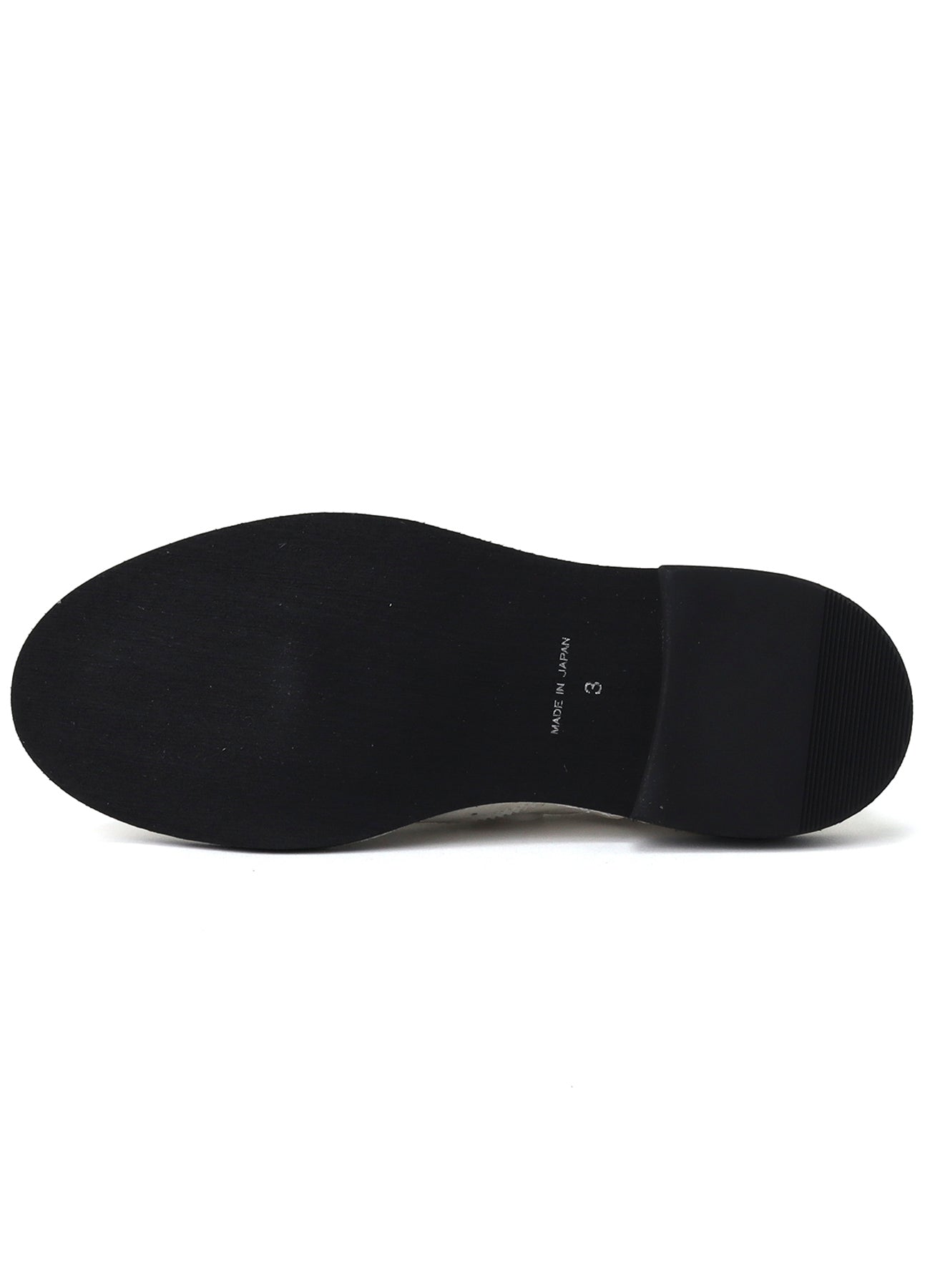 這款短鞋採用翅尖和直尖設計,結合了略帶絨毛的翻毛皮和光滑皮革,通過微妙的對比增添了深度。由於皮革的特性,出汗或摩擦可能會導致顏色褪色,因此搭配淺色衣物時需特別小心。