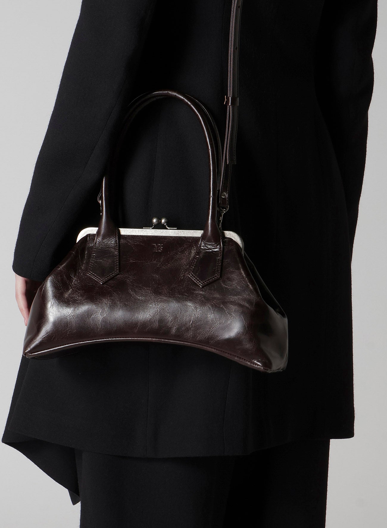 GLOSSY LEATHER CURVY BAG M