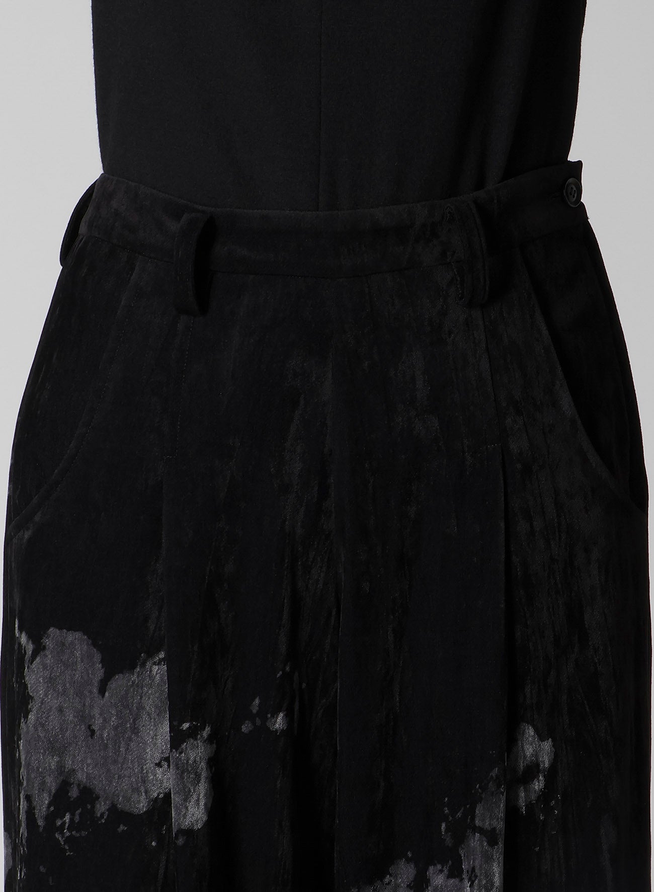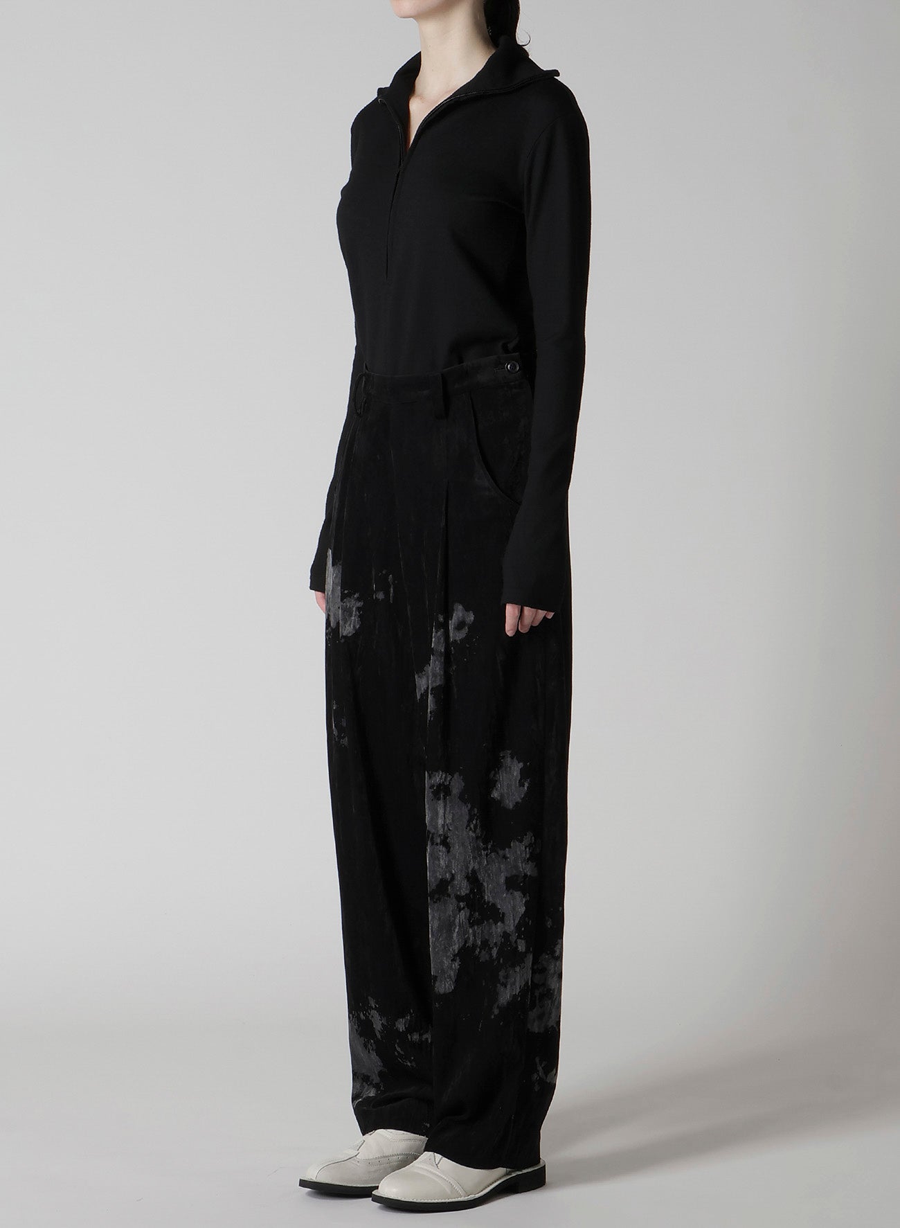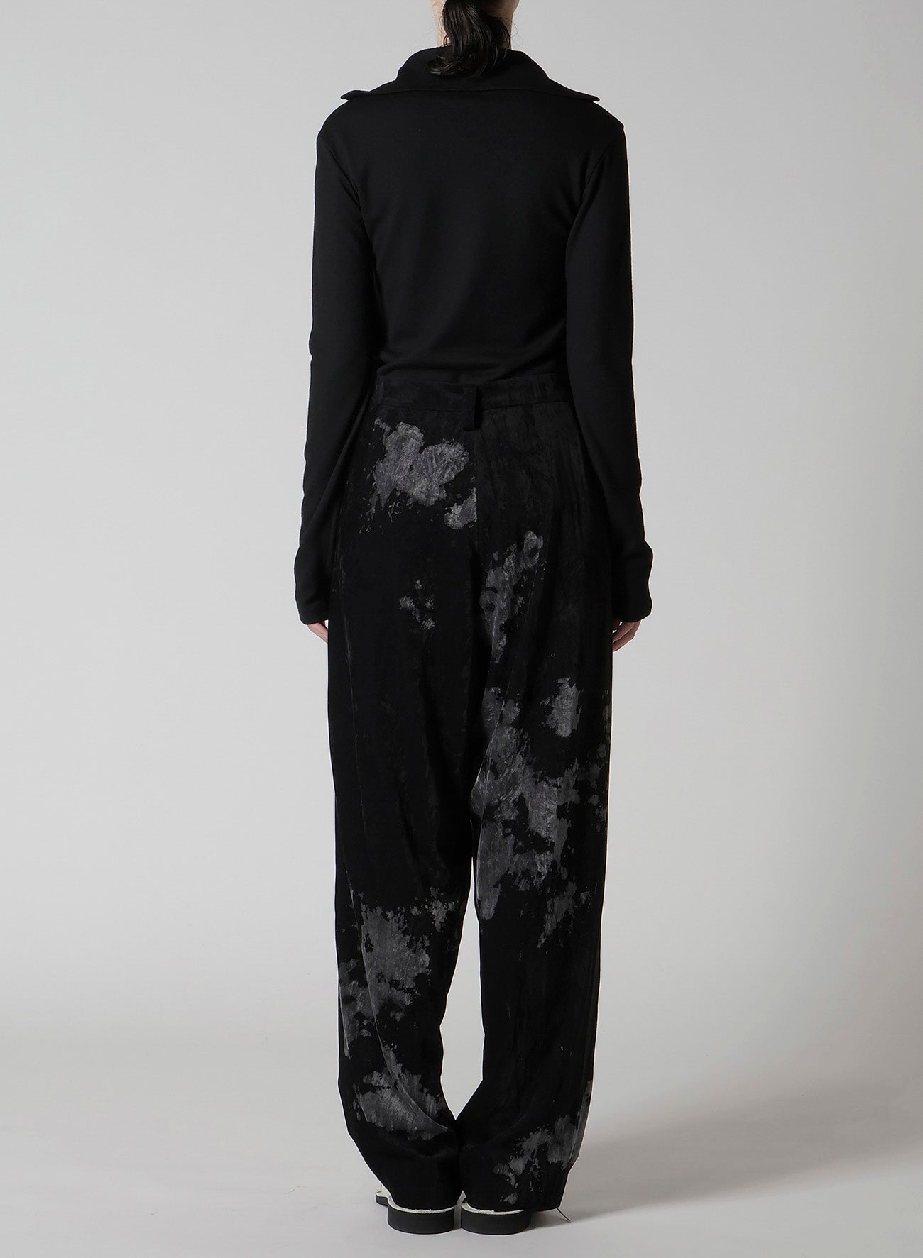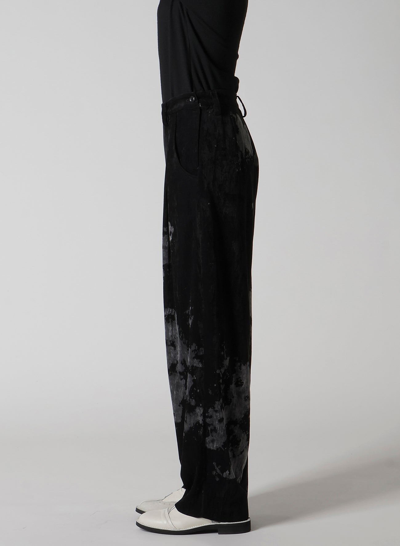 DISCHARGE-PRINTED VELVET PLEATED PANTS