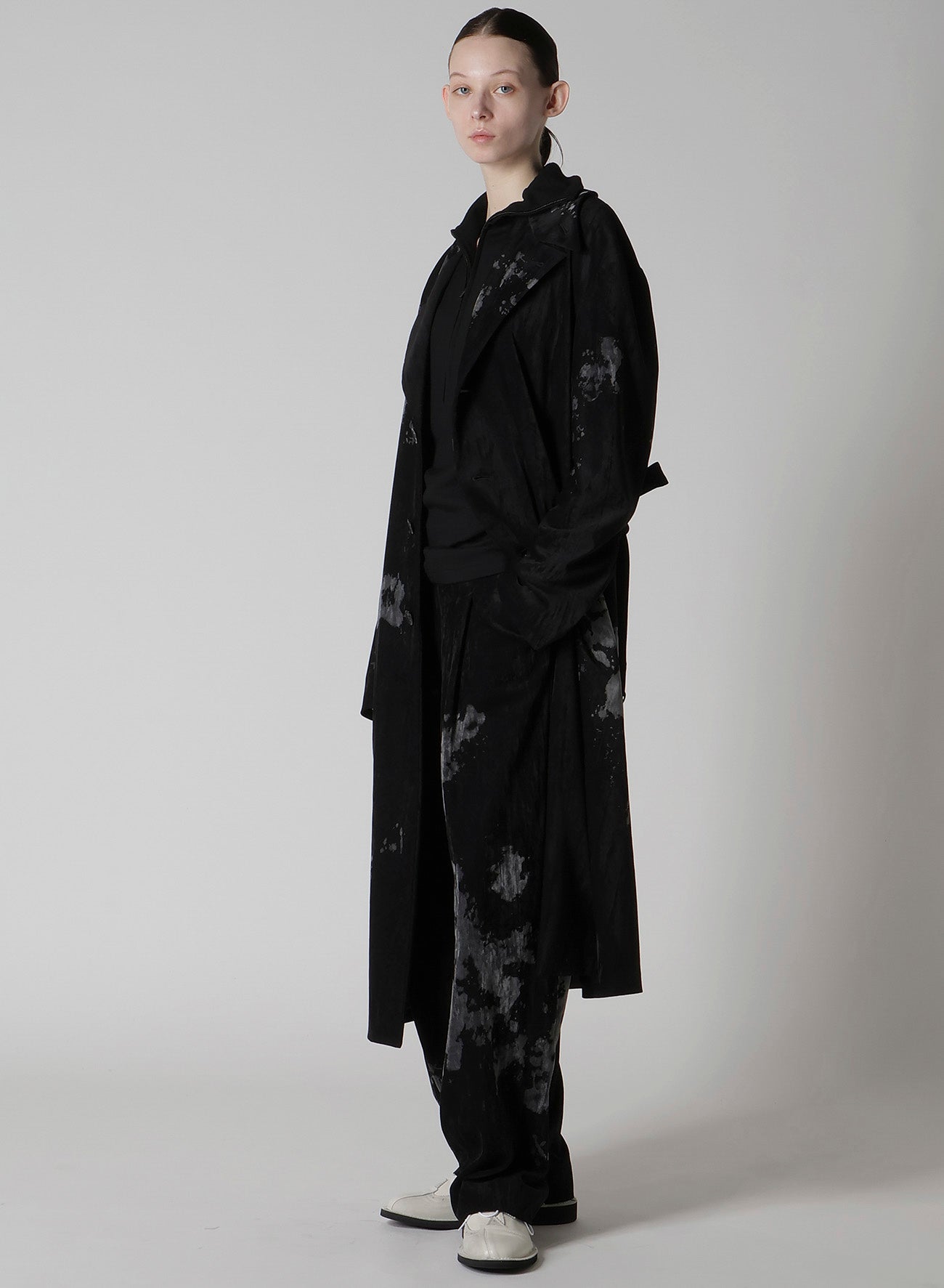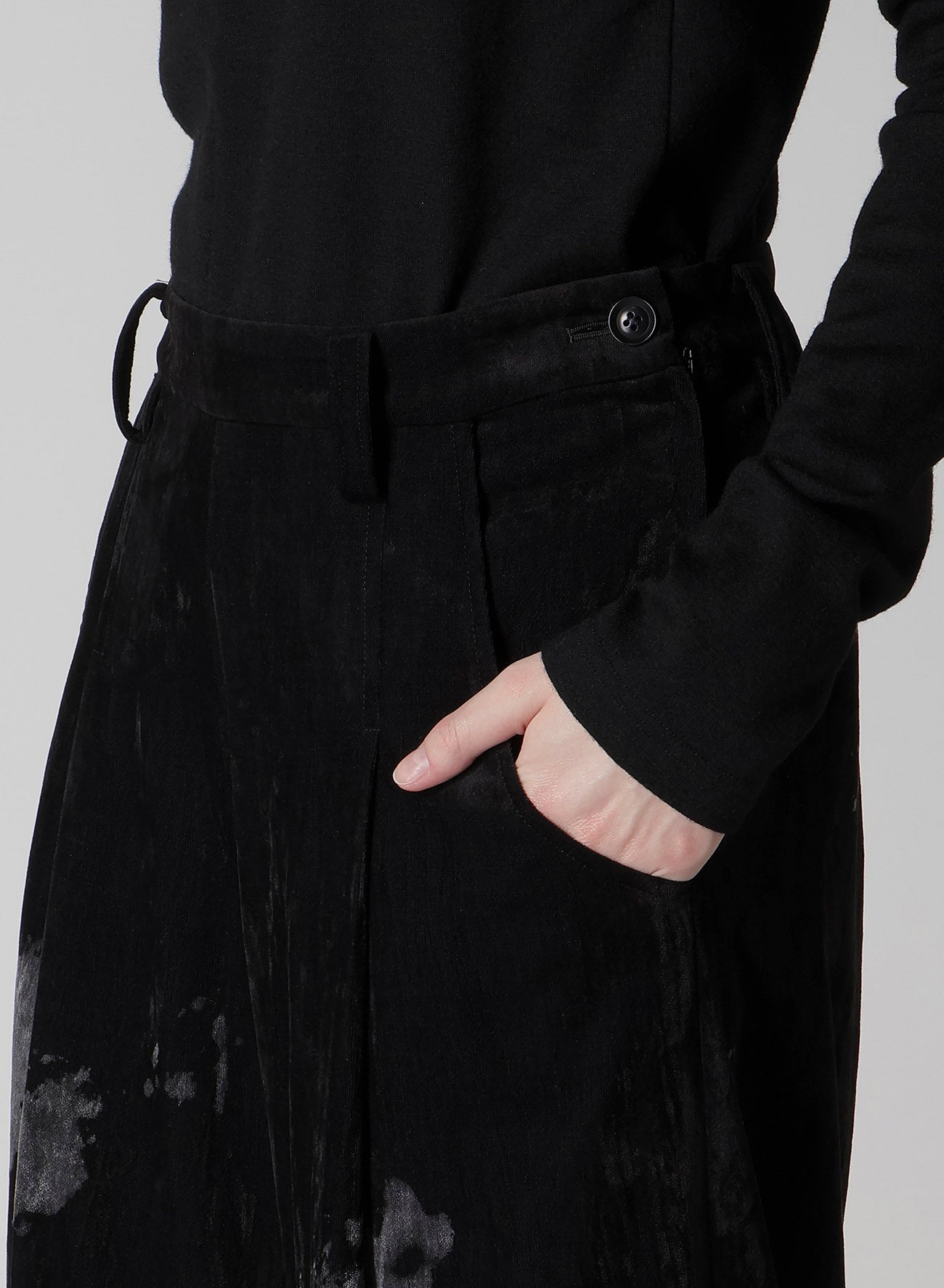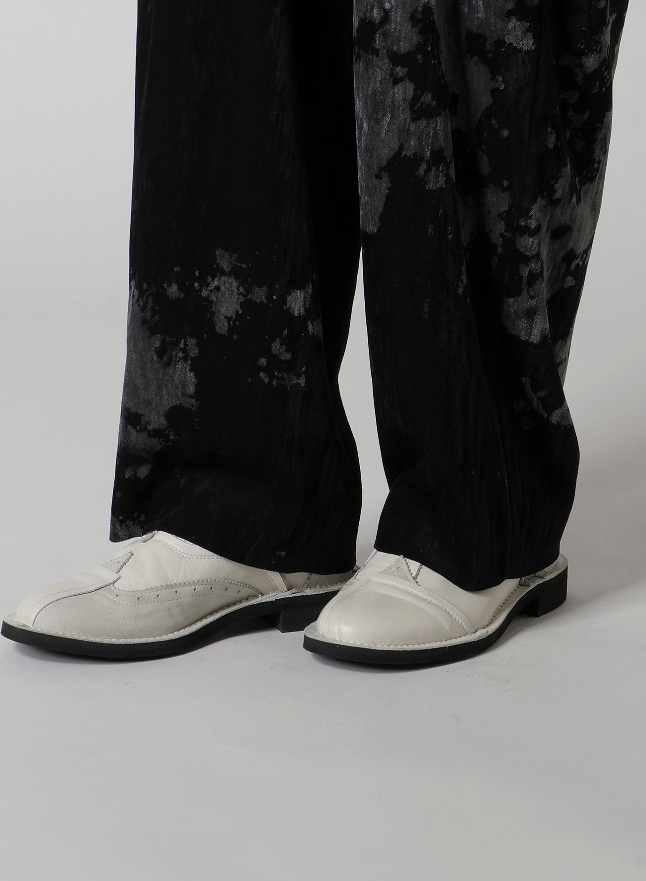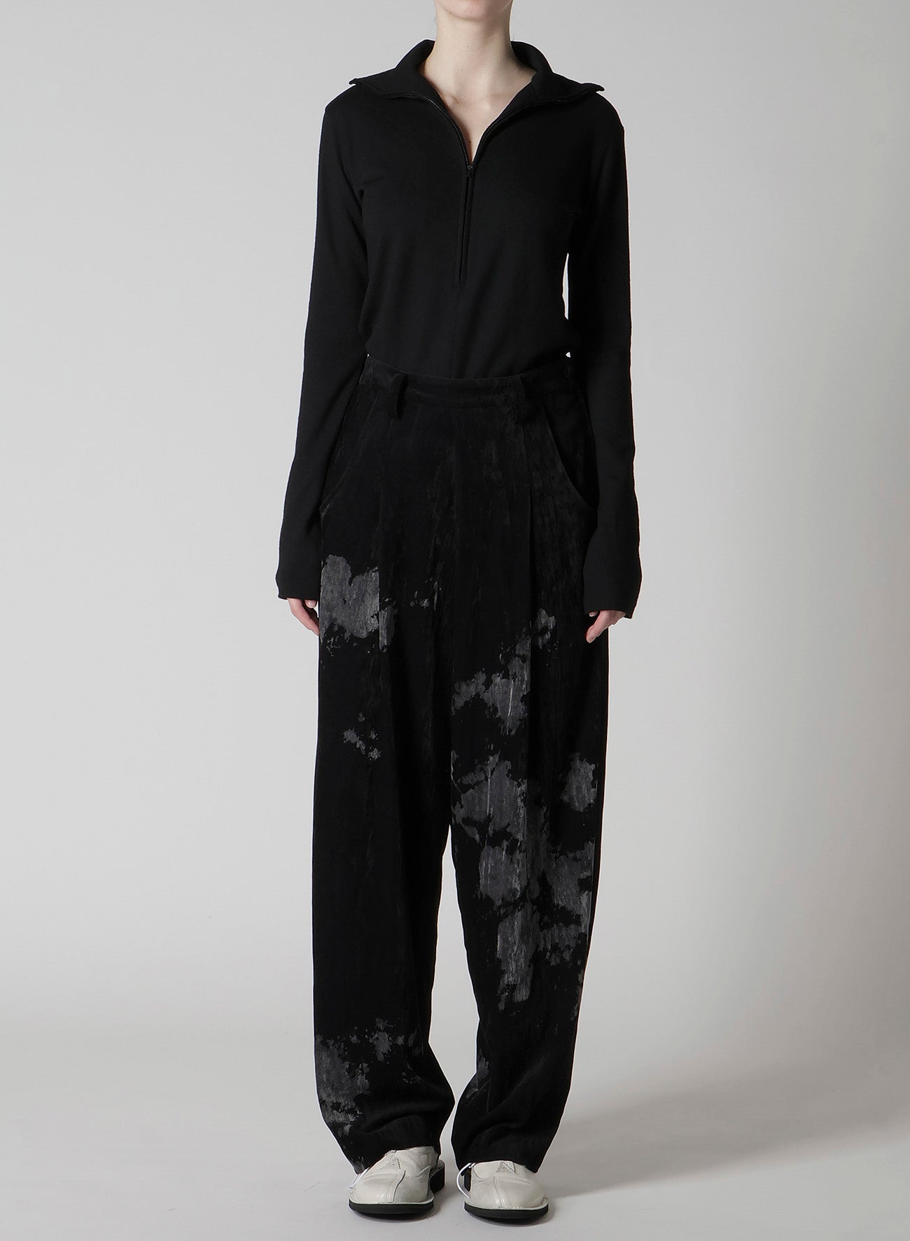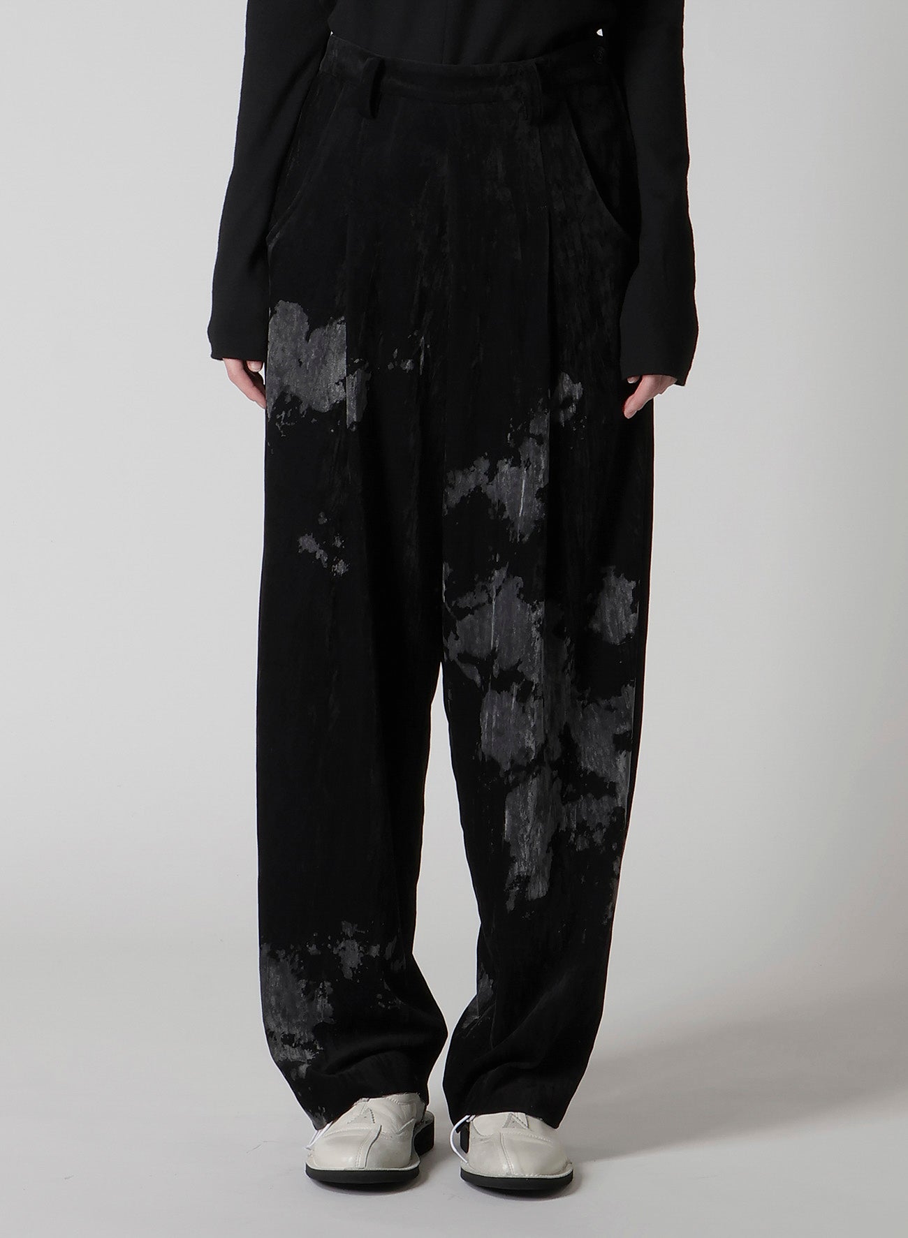 DISCHARGE-PRINTED VELVET PLEATED PANTS