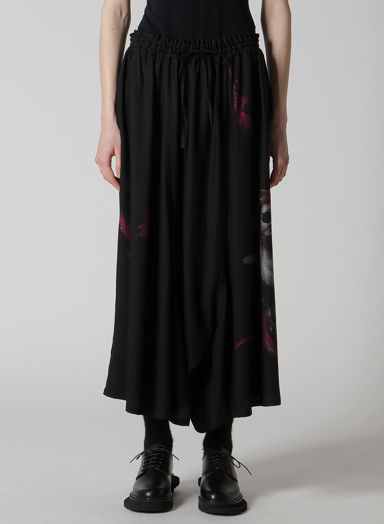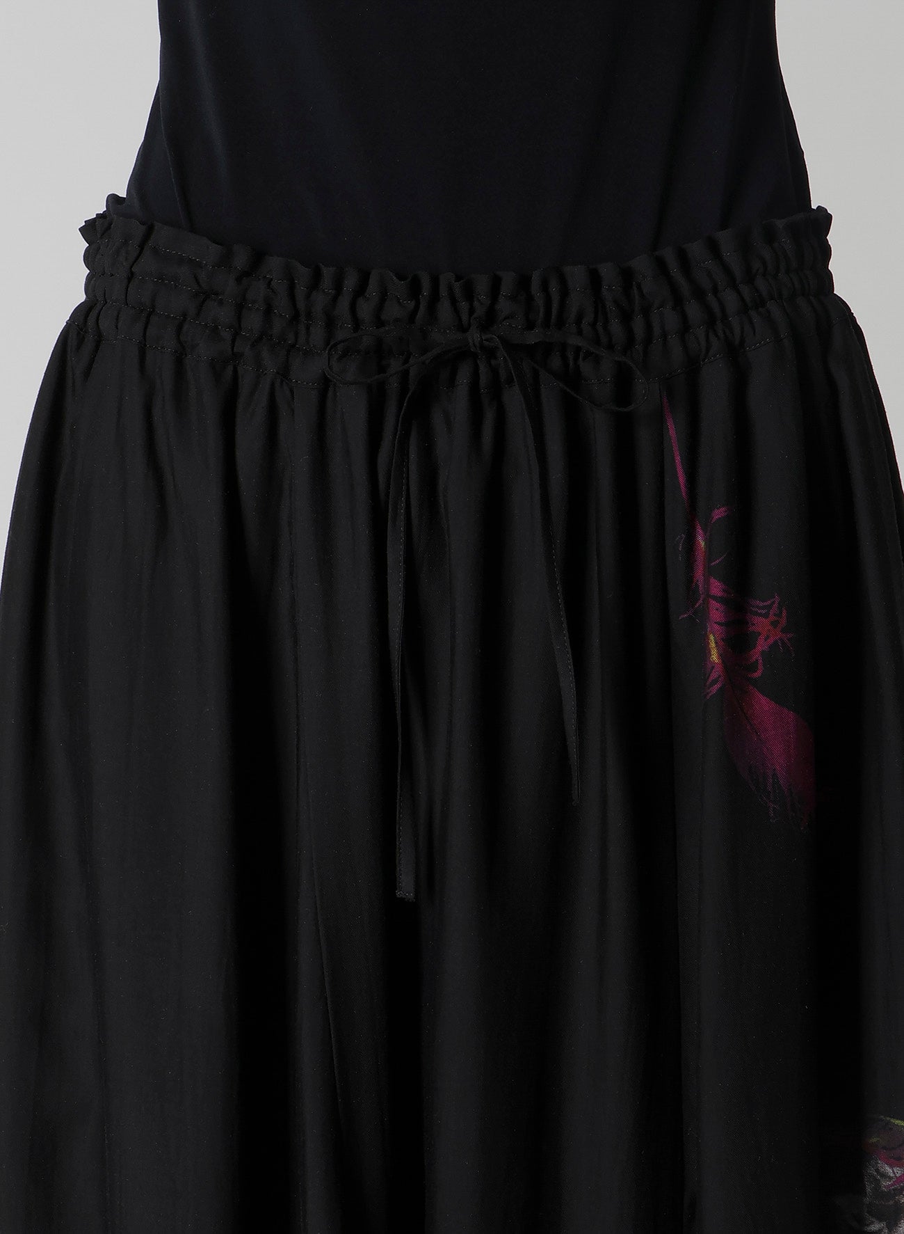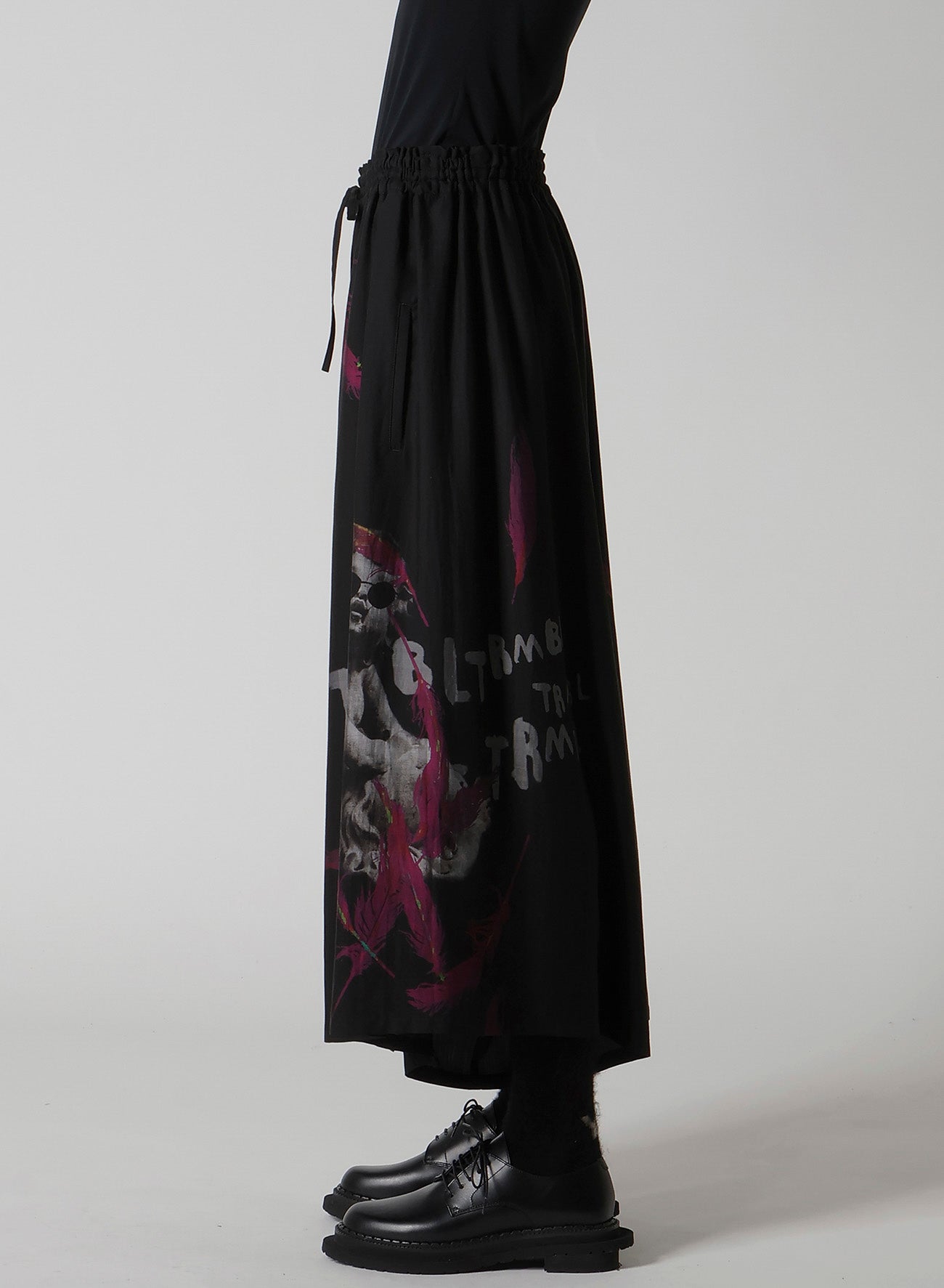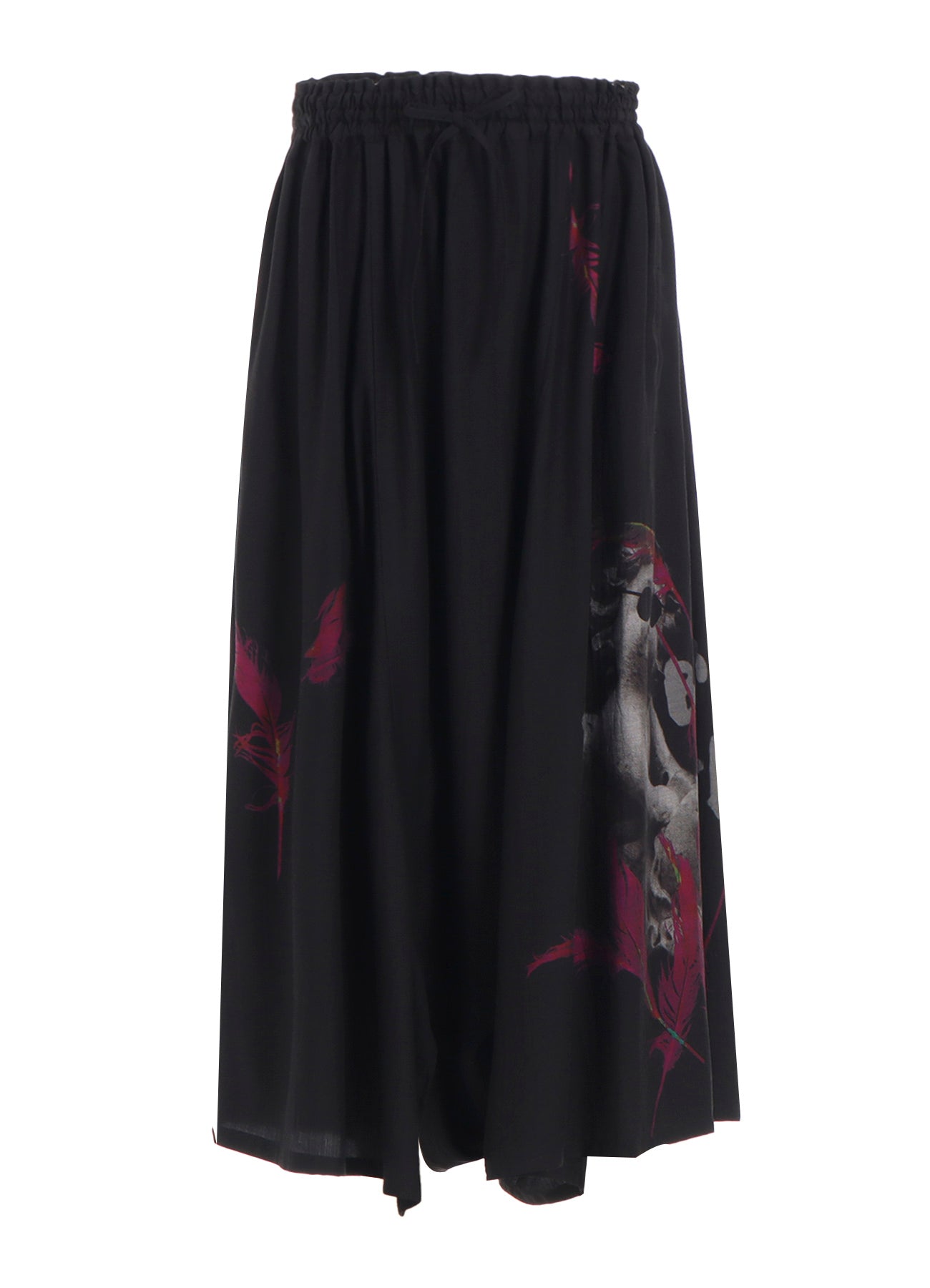 ANGEL-PRINT DUNGAREE TWILL GATHERED PANTS