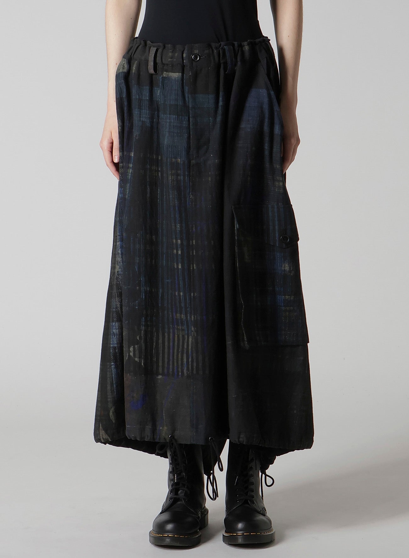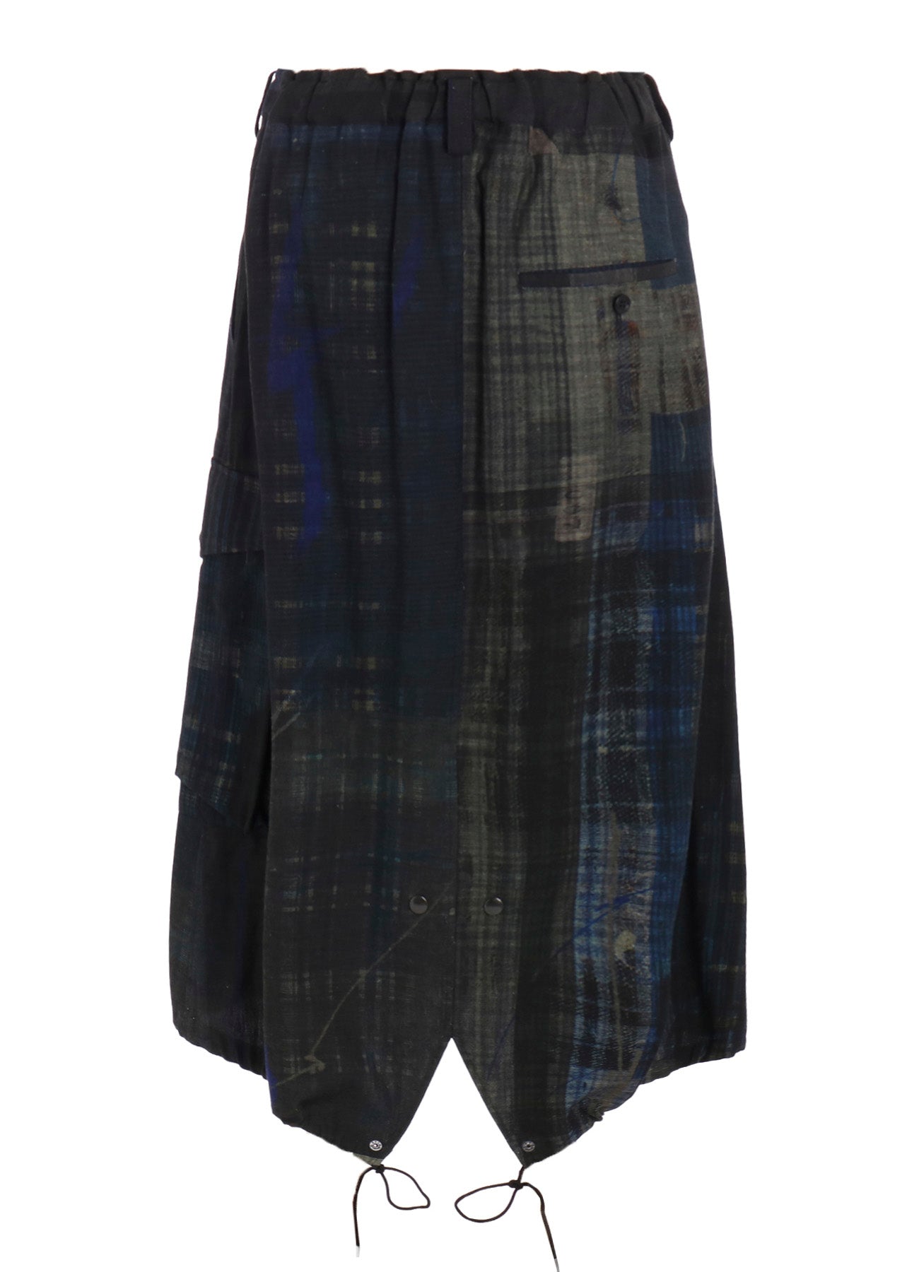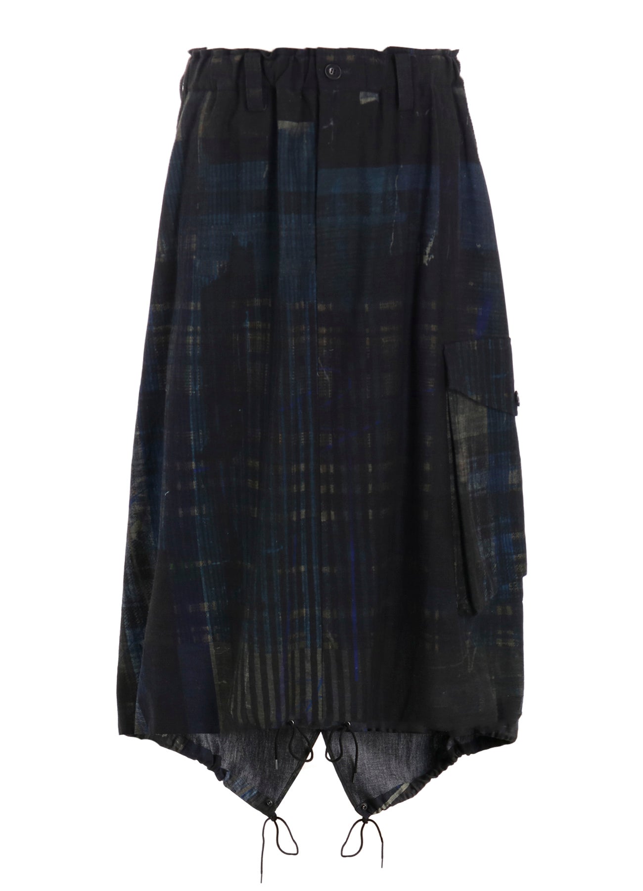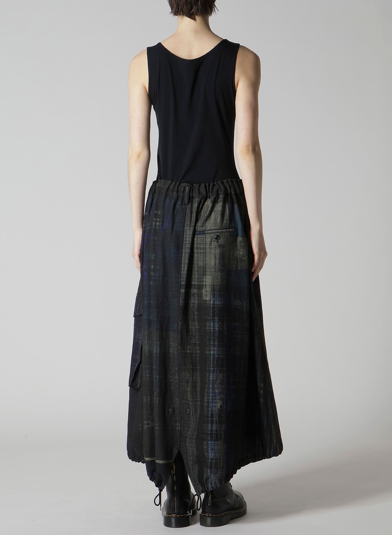 這款魚尾裙展示了各種格紋圖案,印在輕盈的牛仔布的背面。其獨特設計具備魚尾和大外口袋。腰部搭配彈性腰帶和抽繩,尺寸可調,讓其成為任何衣櫃的彈性選擇。