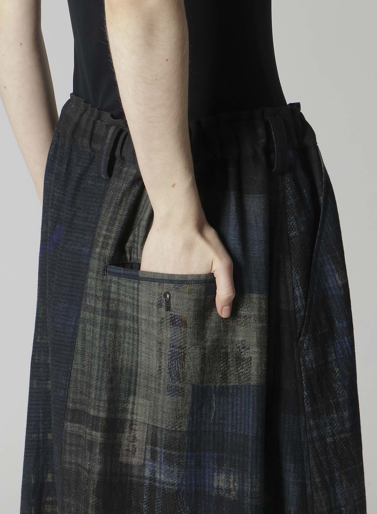 FADED PLAID 6OZ DENIM FISH TAIL SKIRT