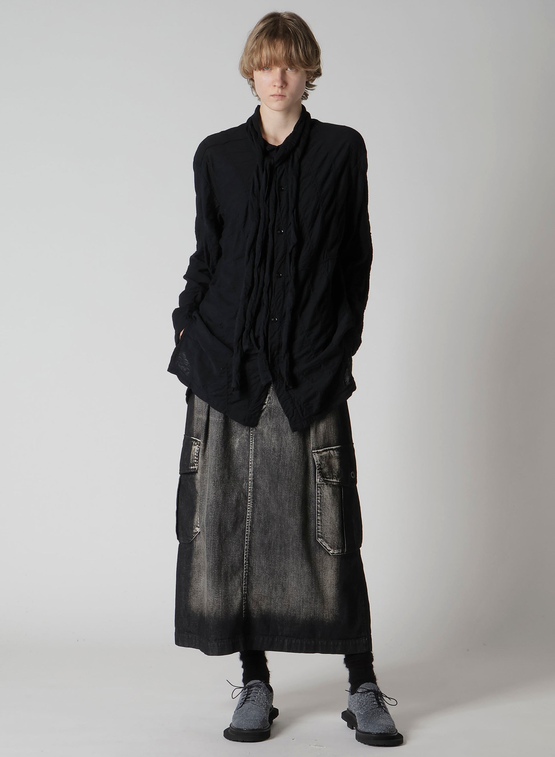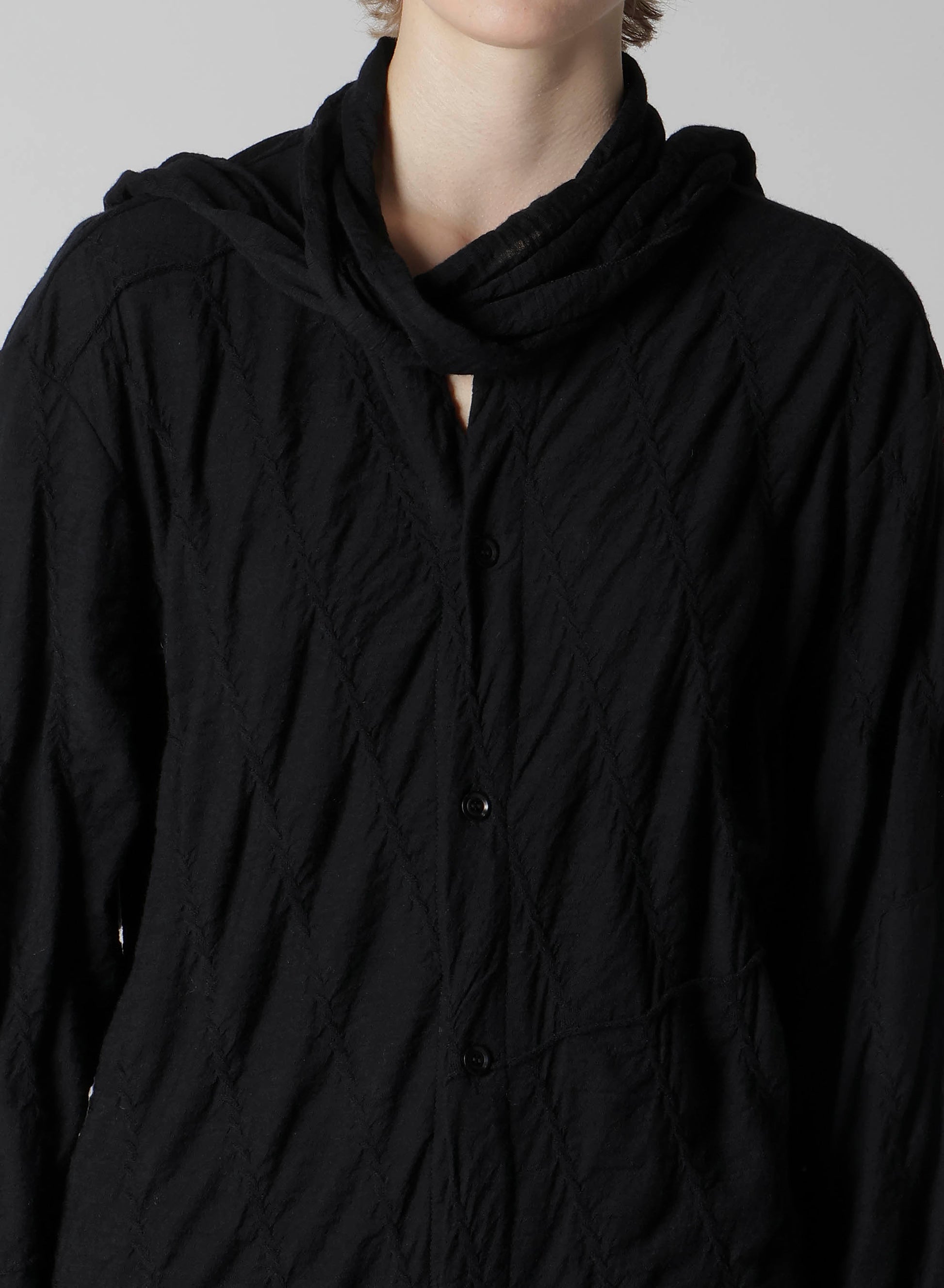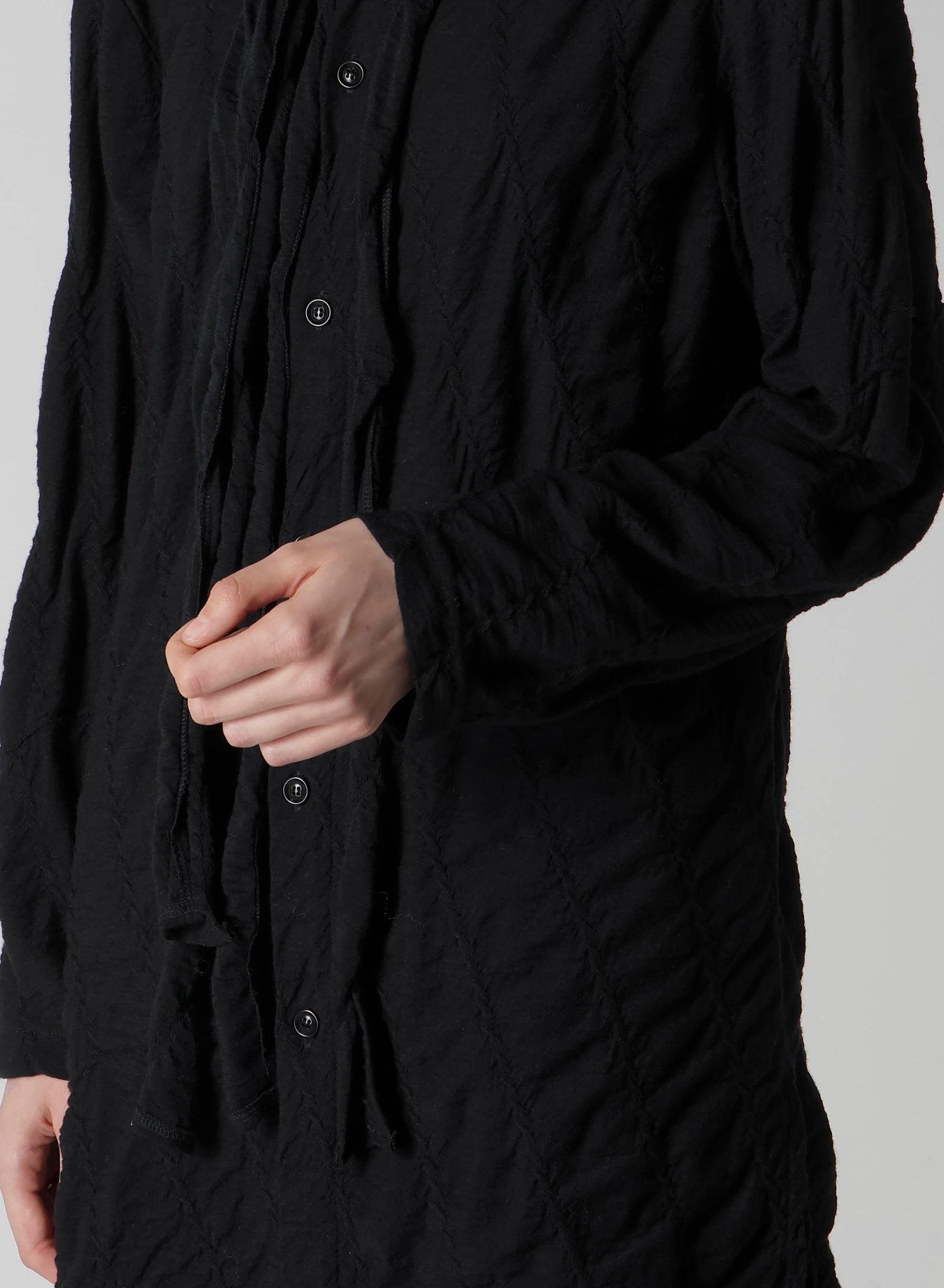 這款領結襯衫以立體的反向對角線為特色。採用機織布的圖案,領帶或垂掛的襯領提供多樣搭配選擇。可作為上衣或輕薄外套搭配。