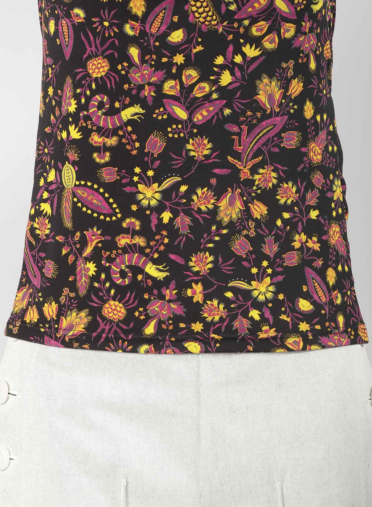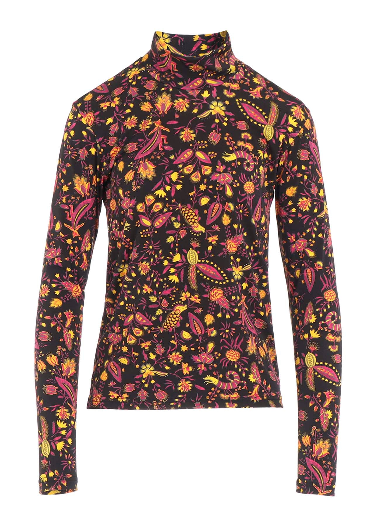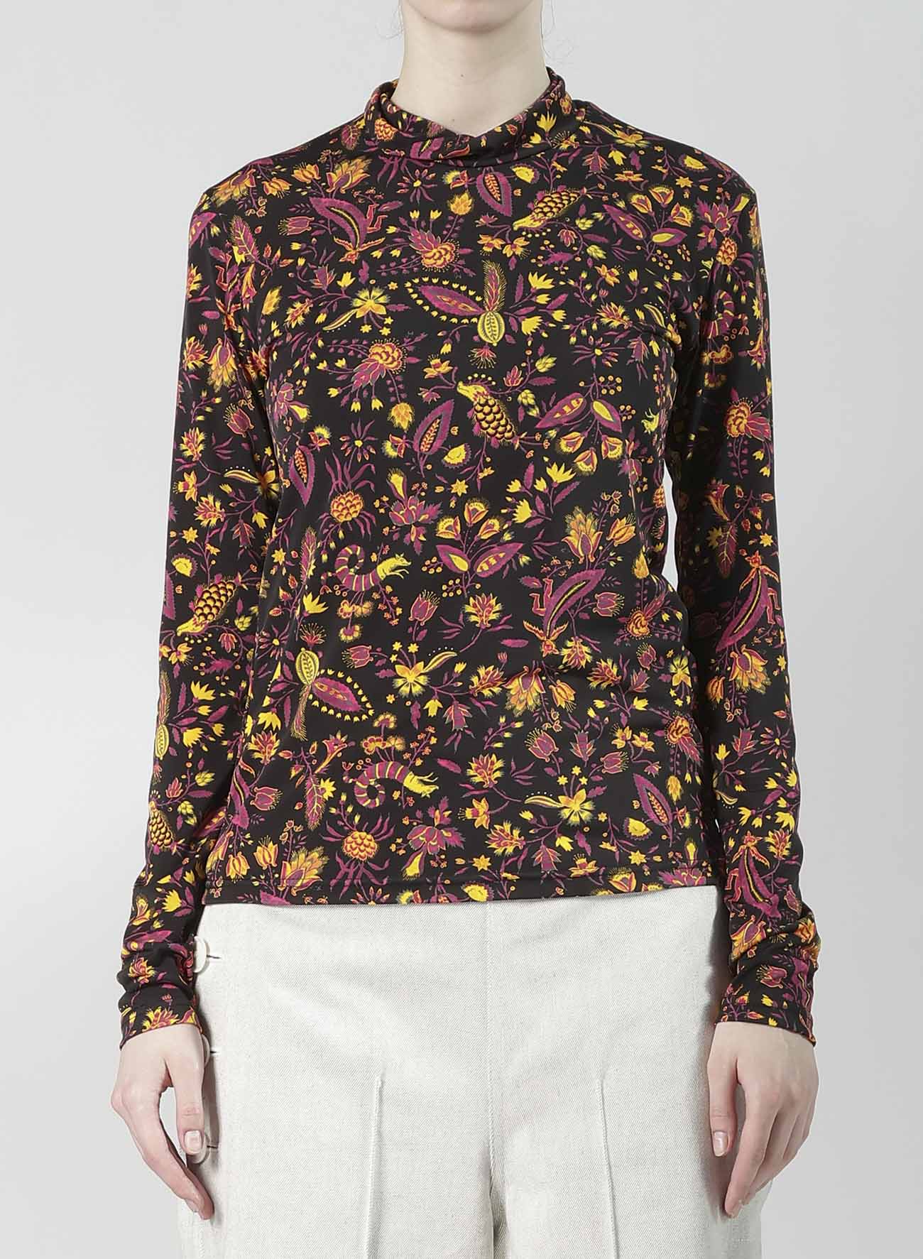 FLOWER PRINT PE JERSEY HIGH NECK T