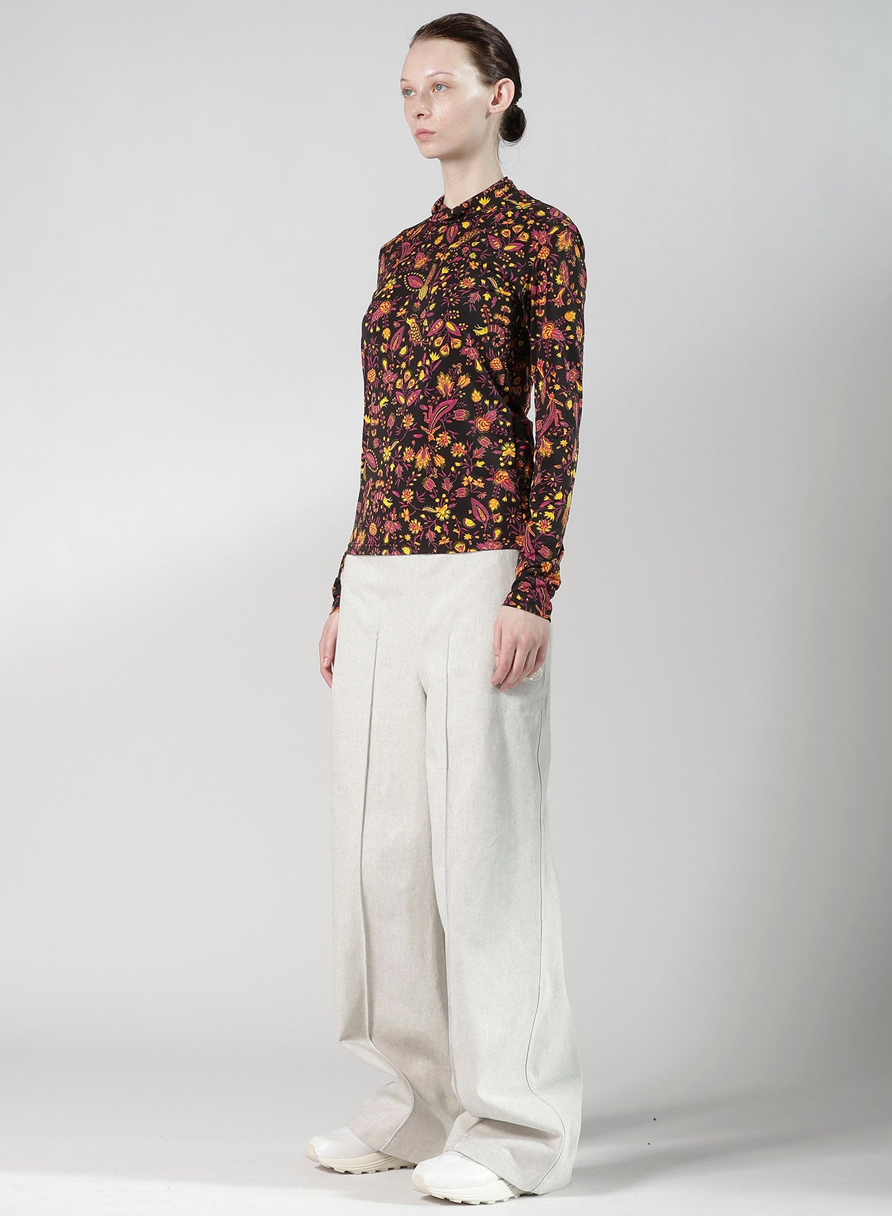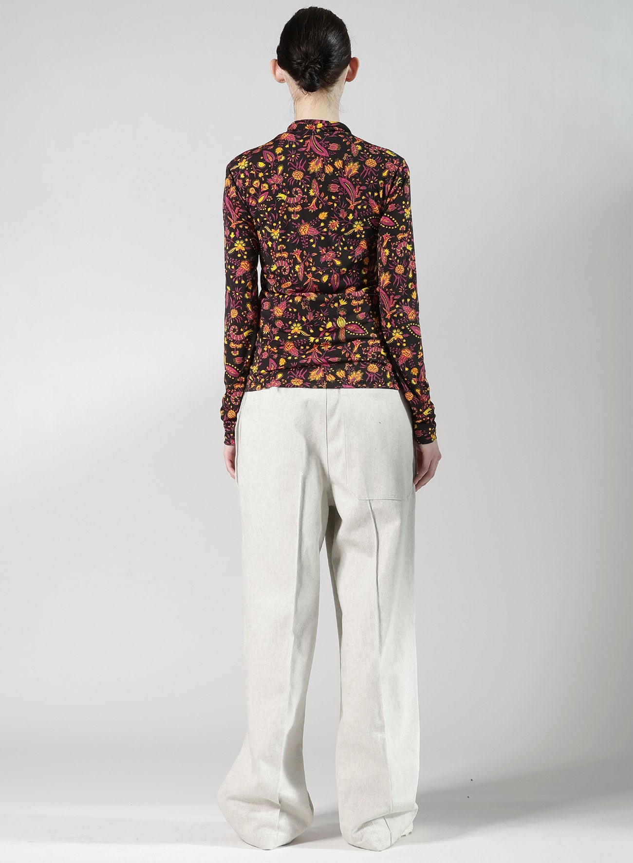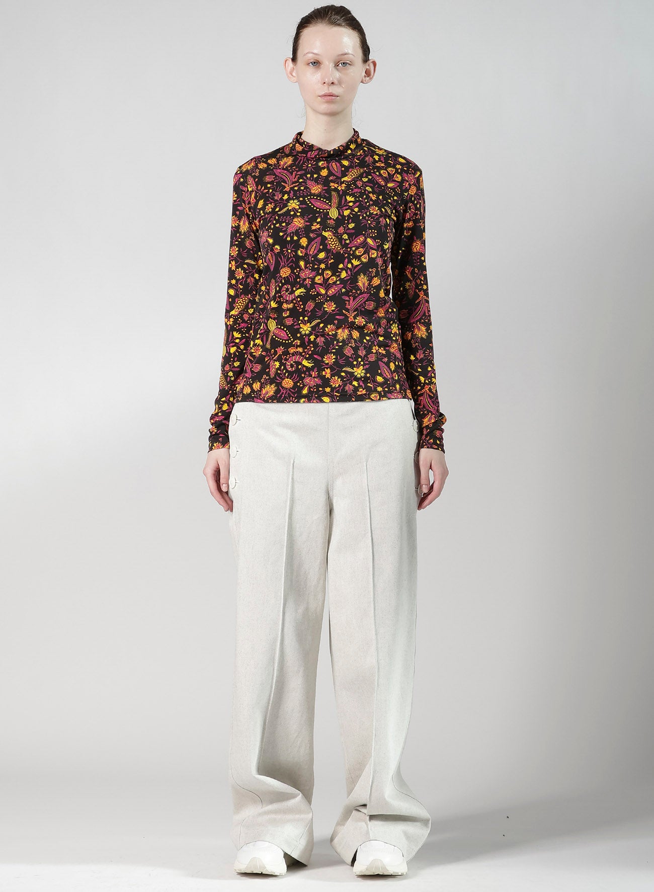 FLOWER PRINT PE JERSEY HIGH NECK T