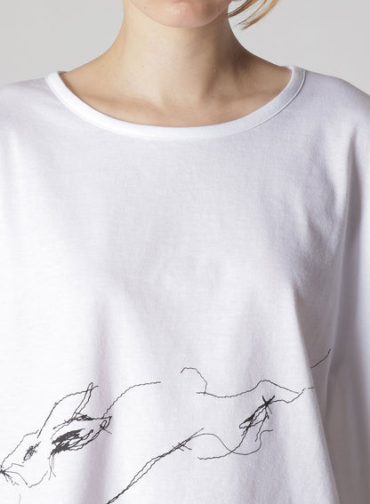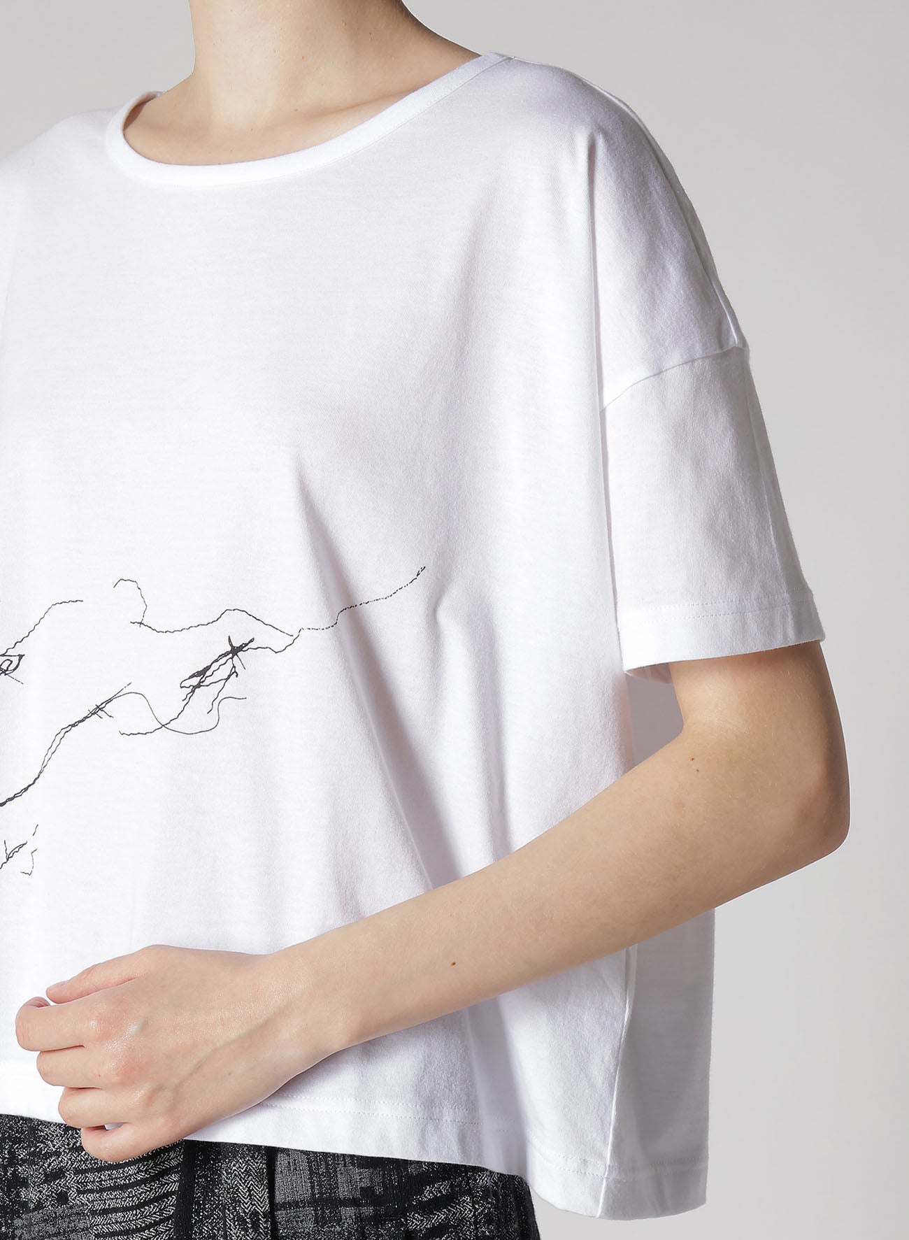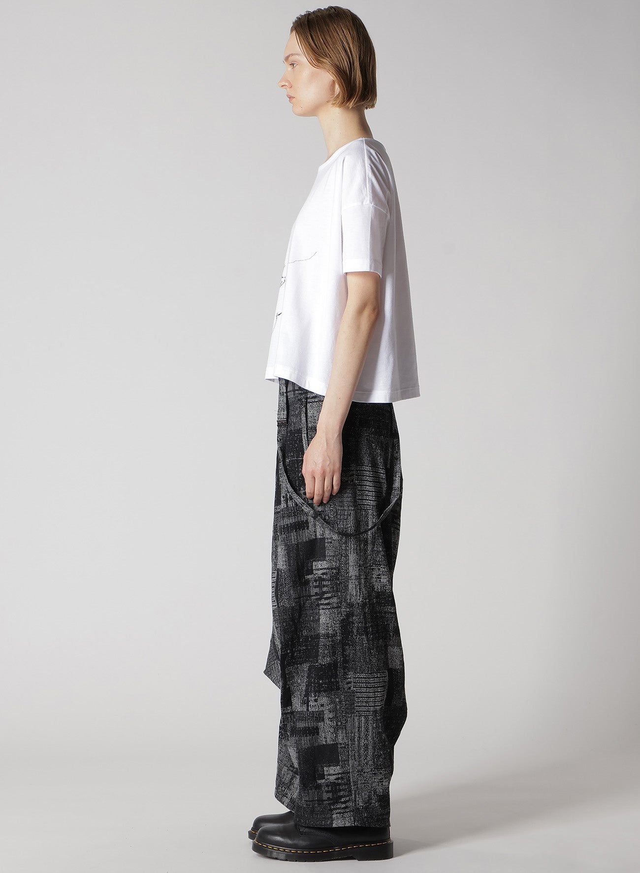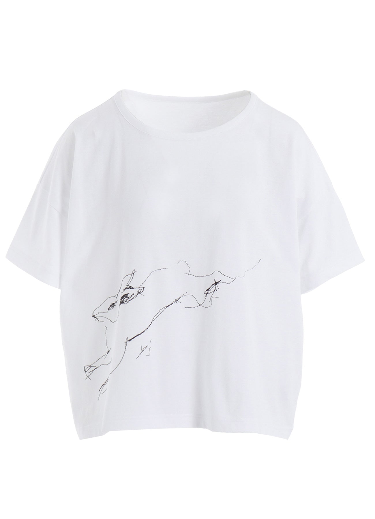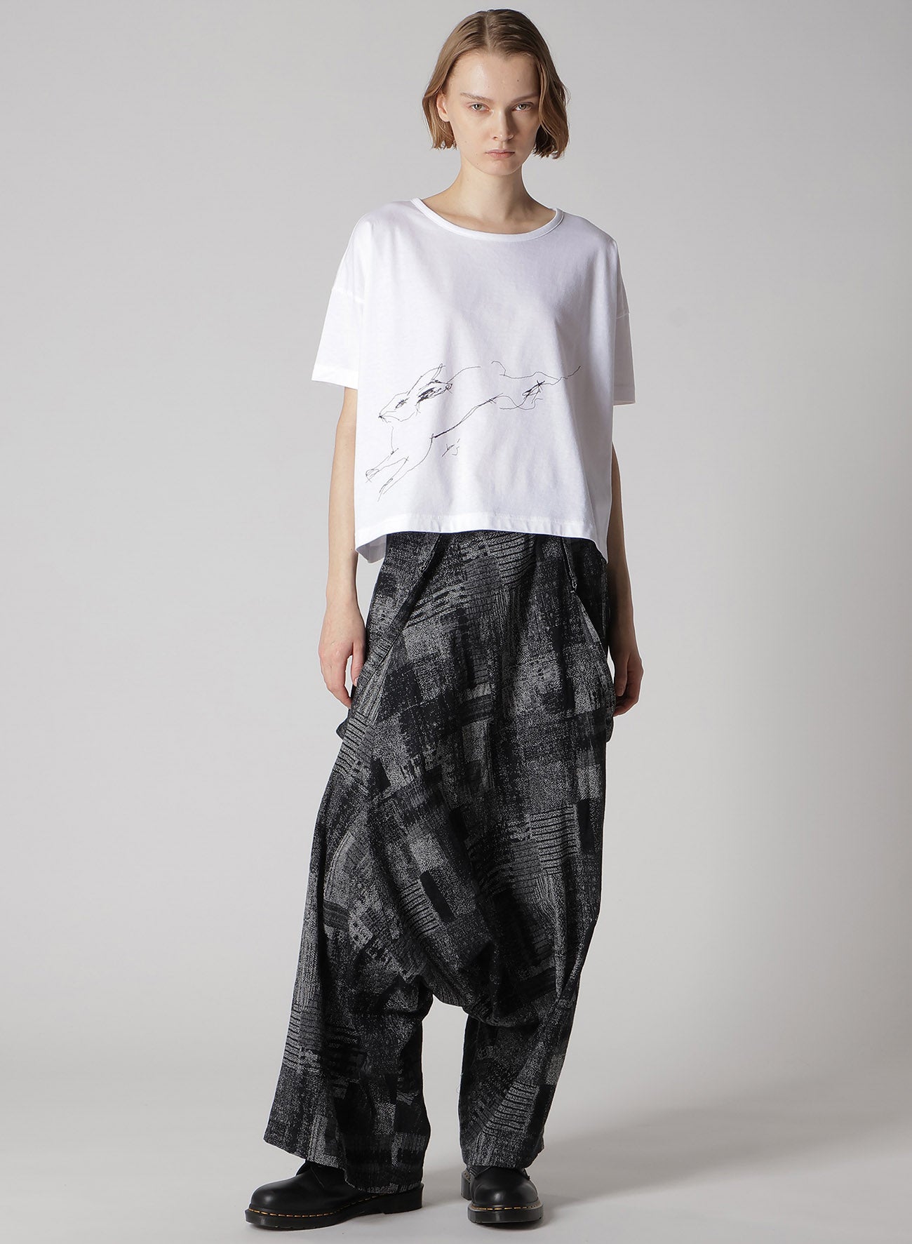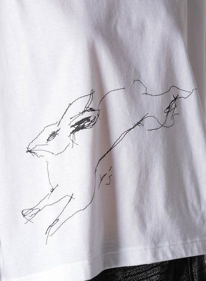 這款獨特設計的上衣採用類似刺繡的泡泡印花,搭配動感的草圖兔子和微妙的Y's標誌,展現在這件寬鬆短版T恤上,成為Y's的標誌性產品。稍長的短袖設計提供舒適穿著,與裙子或褲子完美搭配,長度均衡。