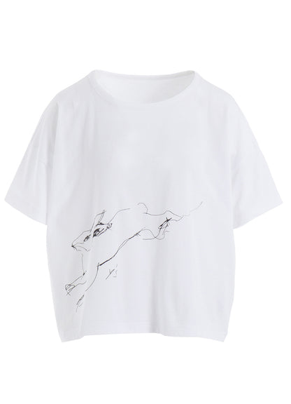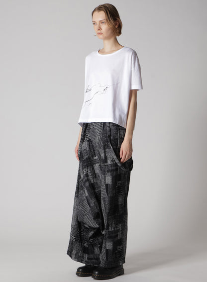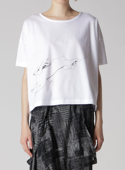 COTTON JERSEY ANIMAL PRINT CROPPED HALF SLEEVE T