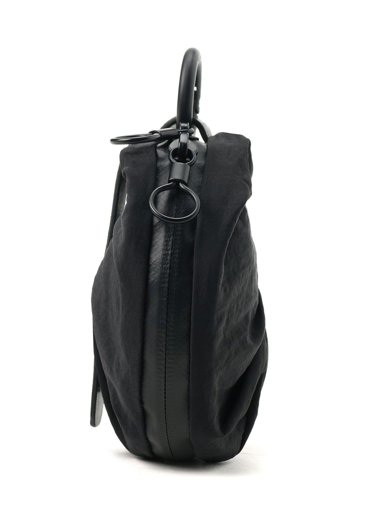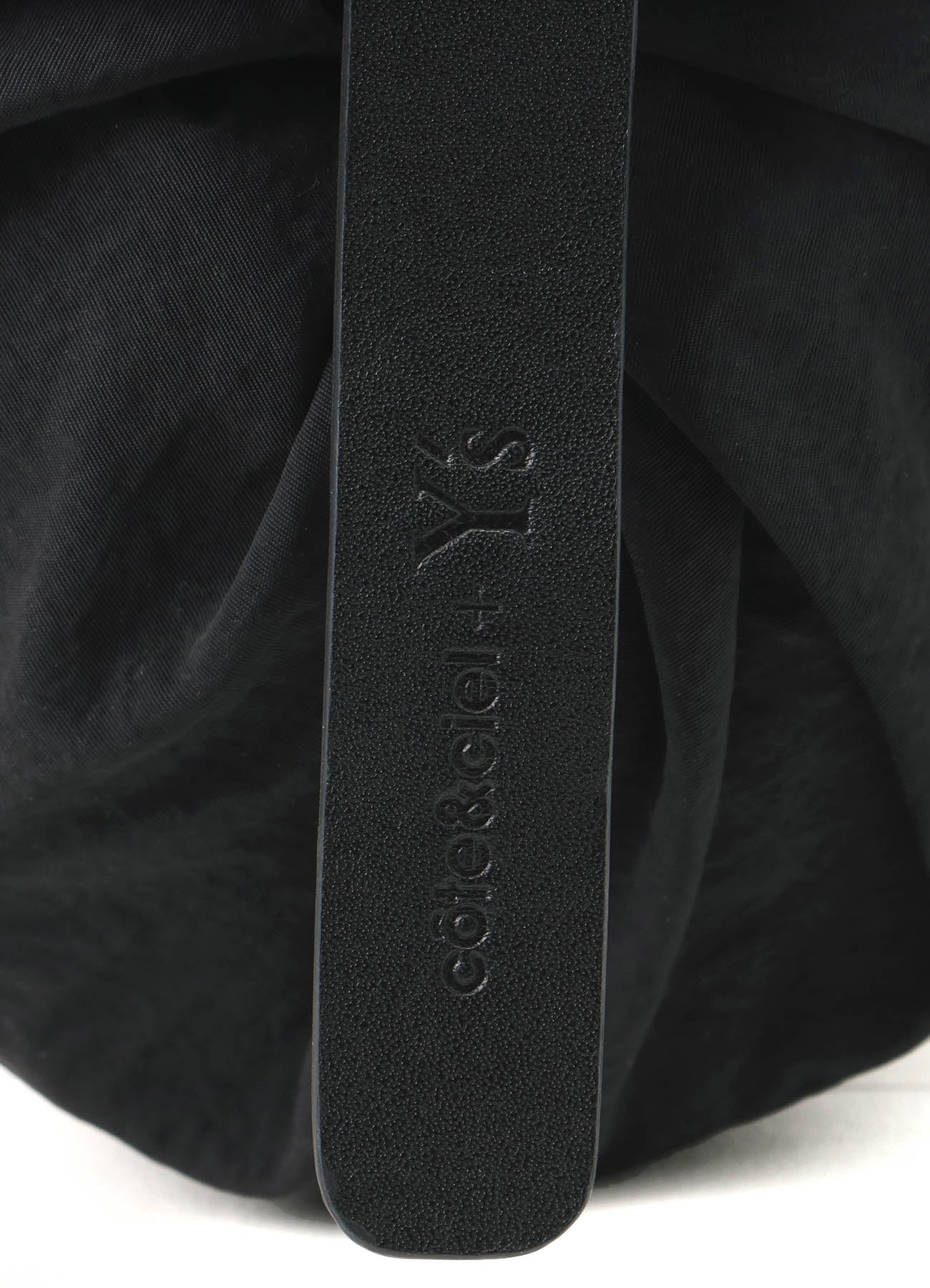 Y's × cote & 的扭袋ciel AOOS XS 迴聲。配有可完全打開的全方位拉鍊,內部有五個口袋,其中一個帶有拉鍊,可放置小物品。可用圓形登山扣固定在其他包上。雕刻皮革部分增添了亮點。注意:可能會出現輕微褪色。