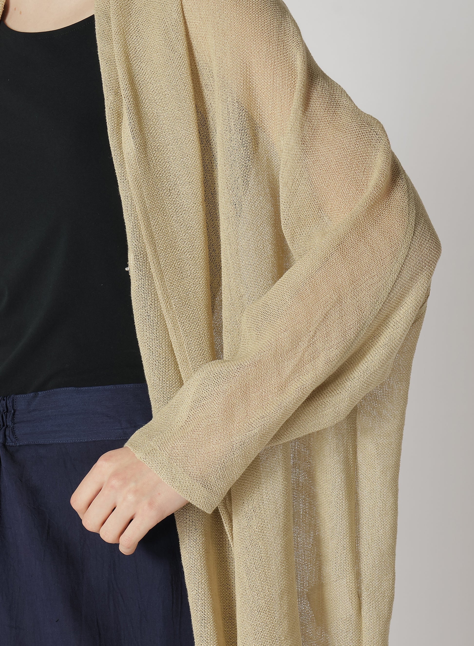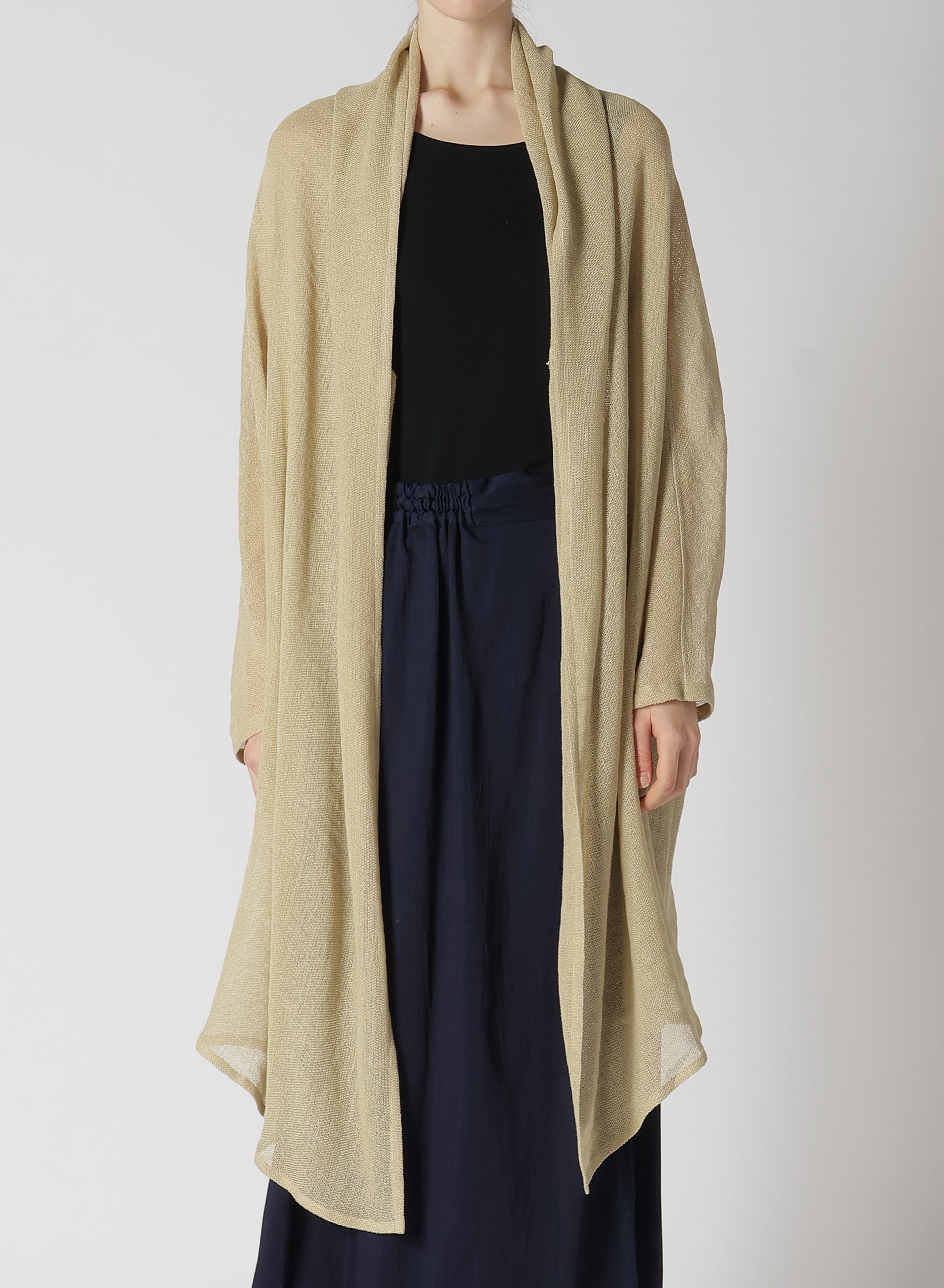LENO CLOTH SHAWL COLLAR LONG CARDIGAN