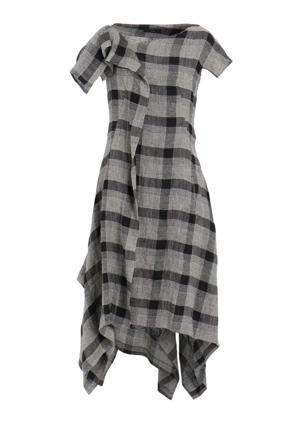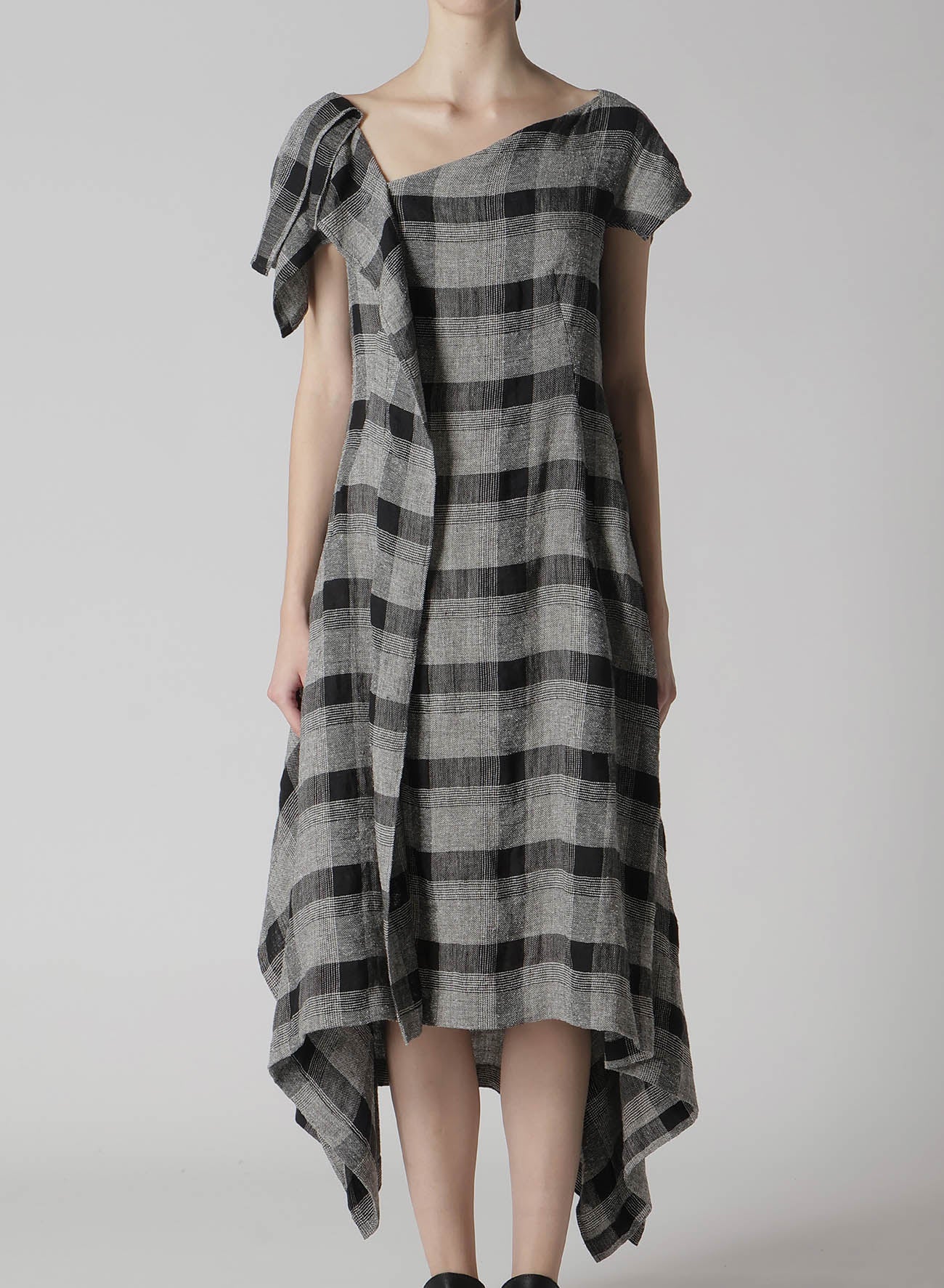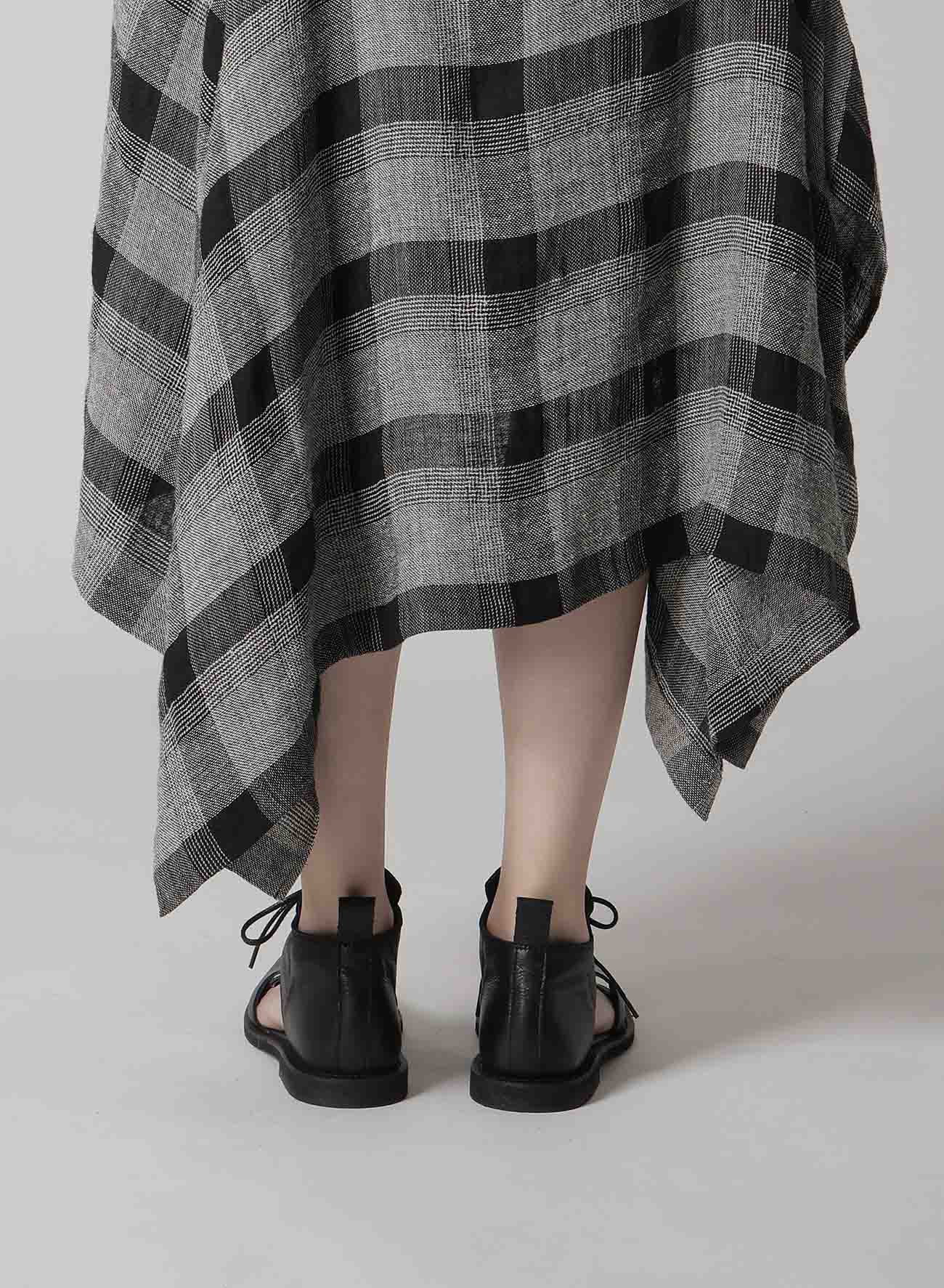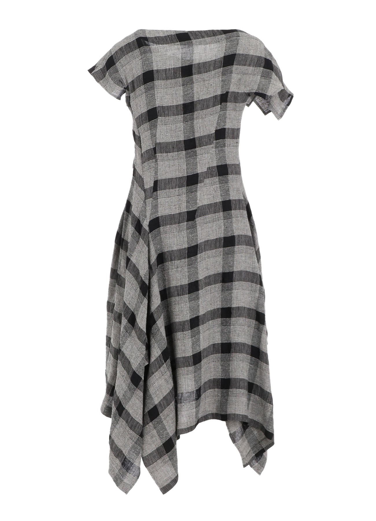 LINEN/SILK PLAID HANDKERCHIEF HEM DRESS