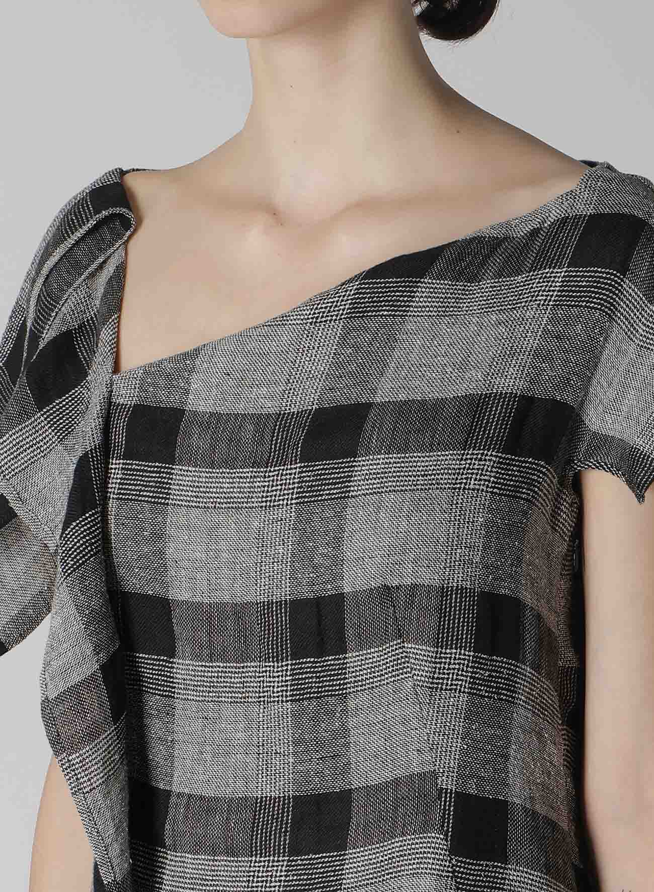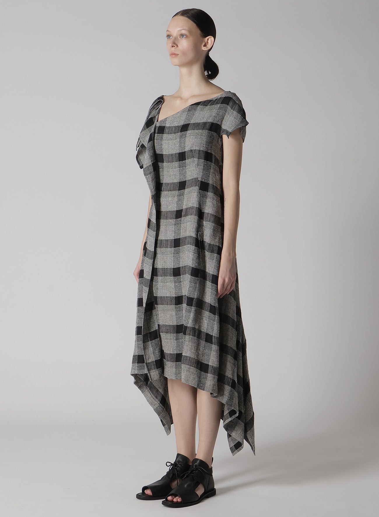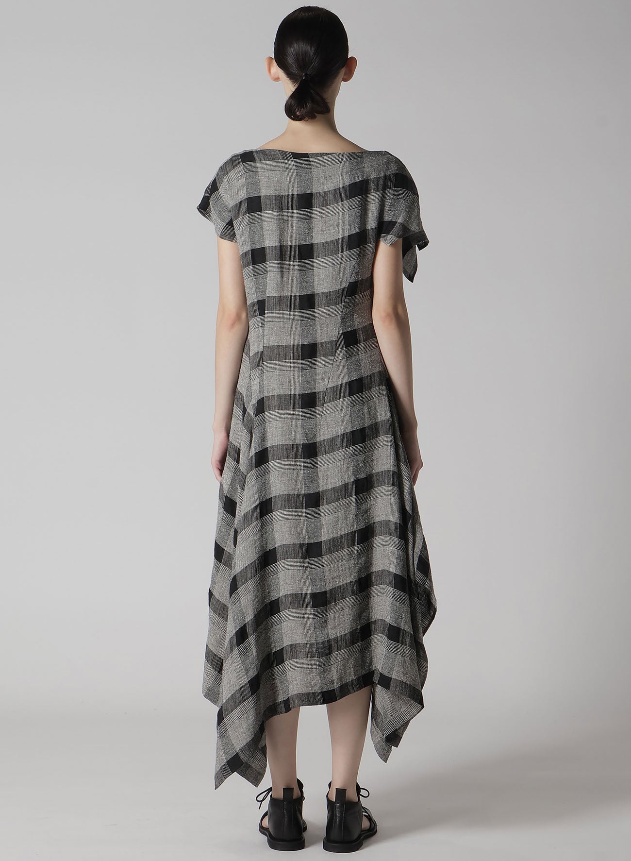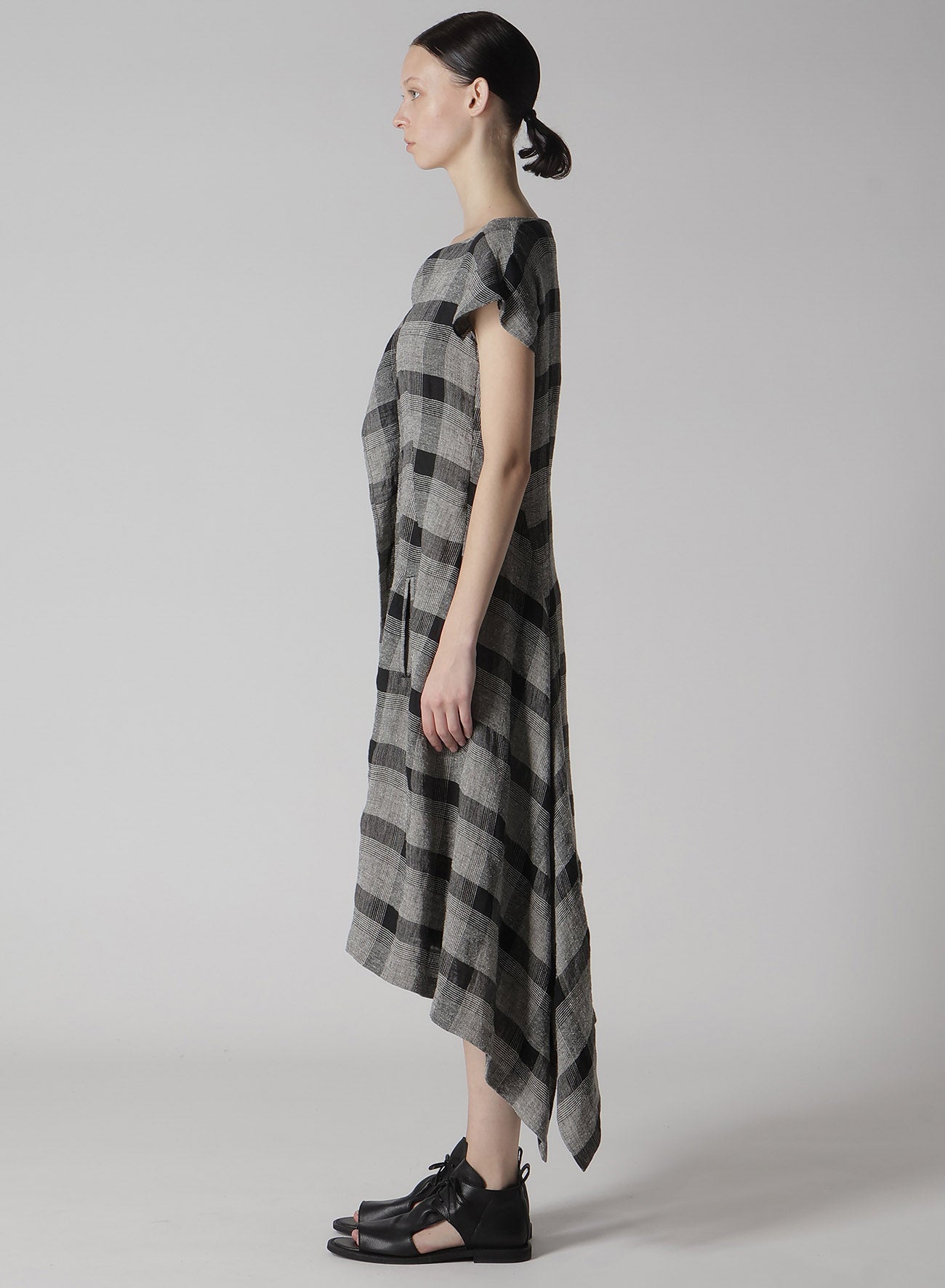 LINEN/SILK PLAID HANDKERCHIEF HEM DRESS