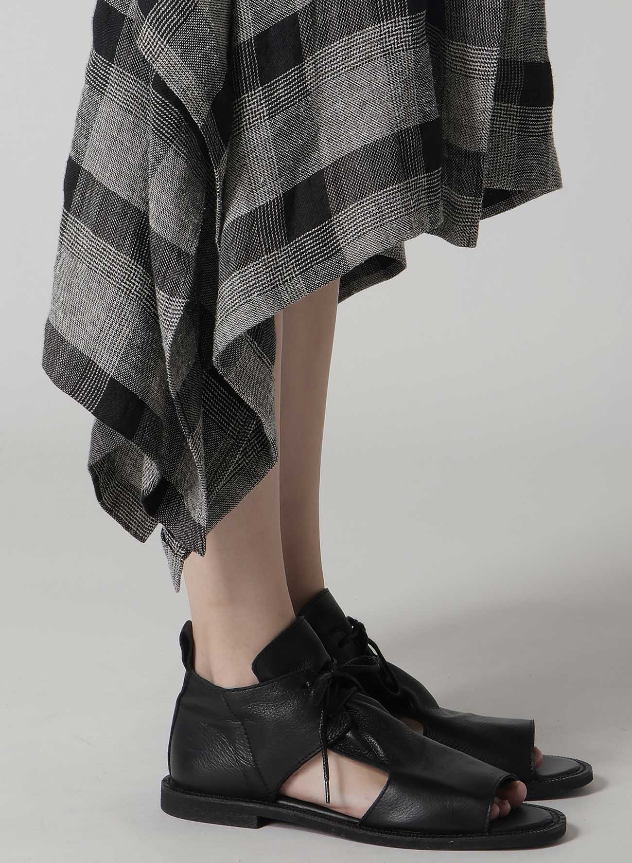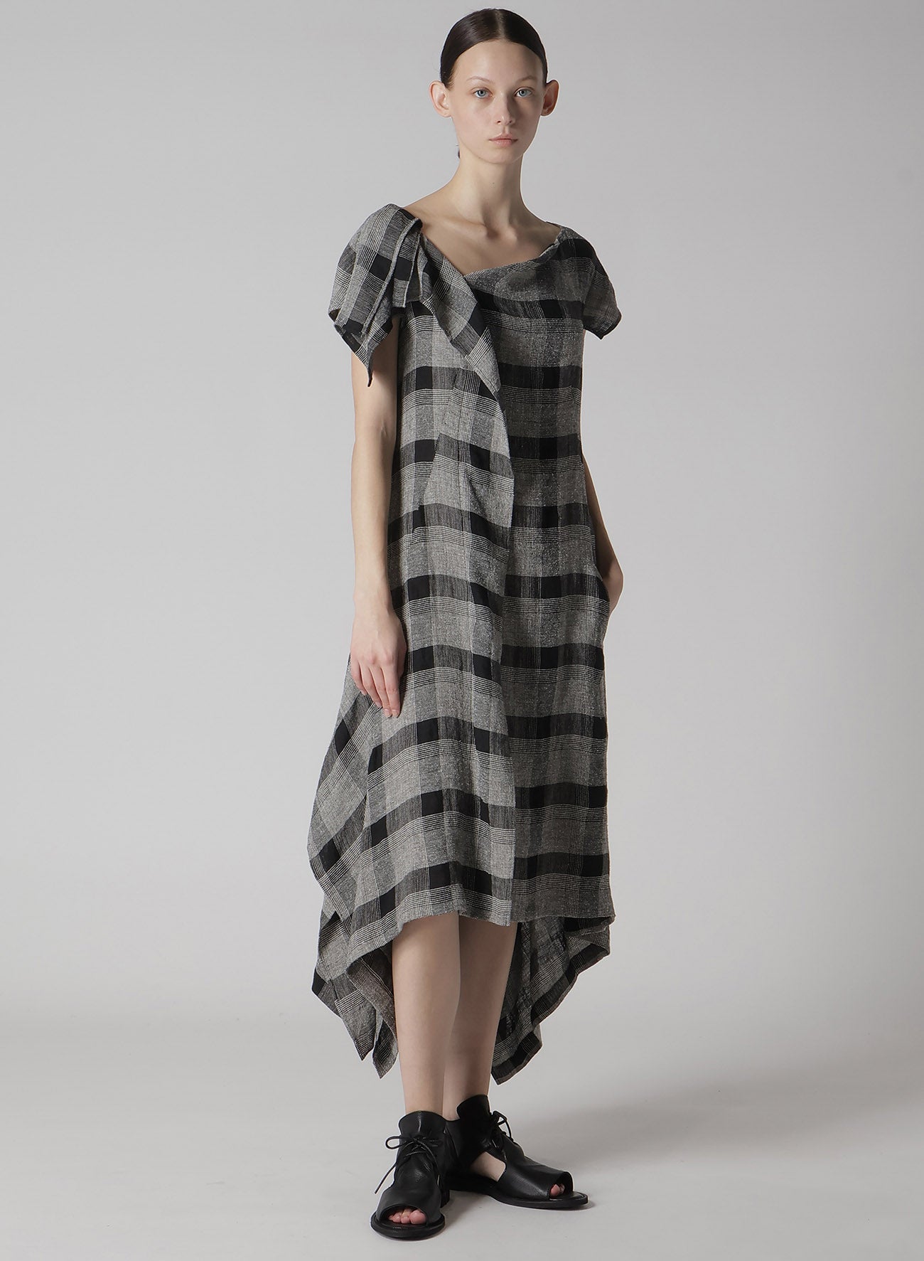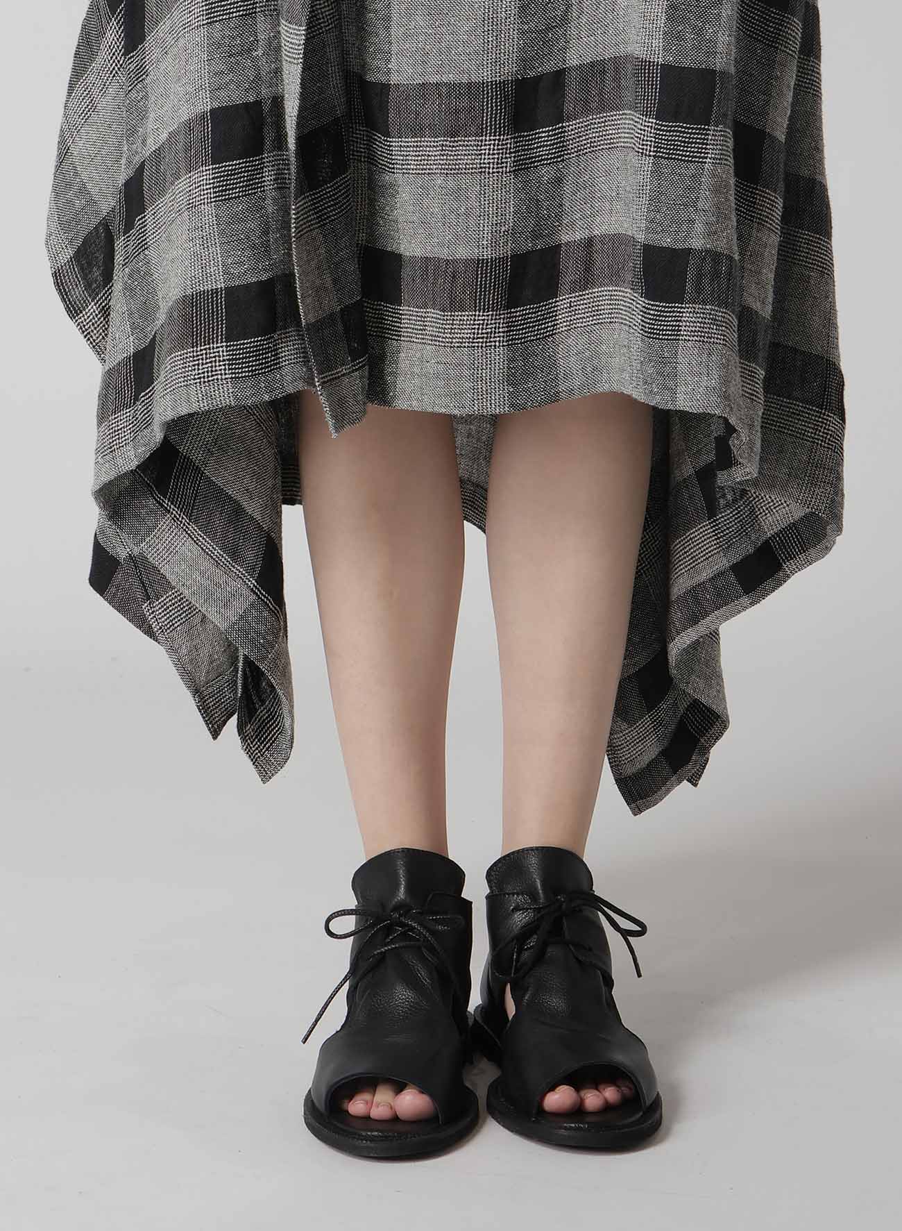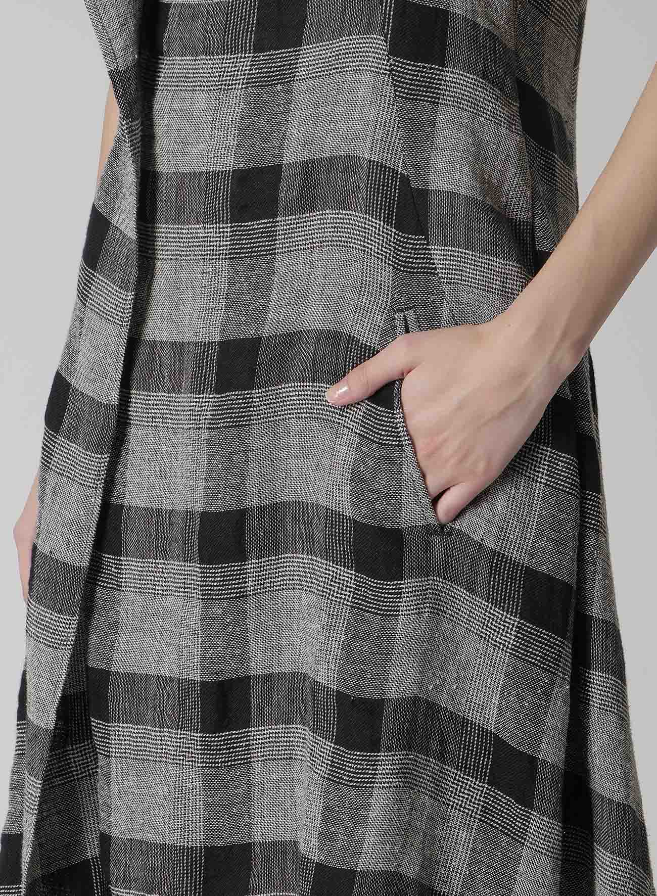 LINEN/SILK PLAID HANDKERCHIEF HEM DRESS