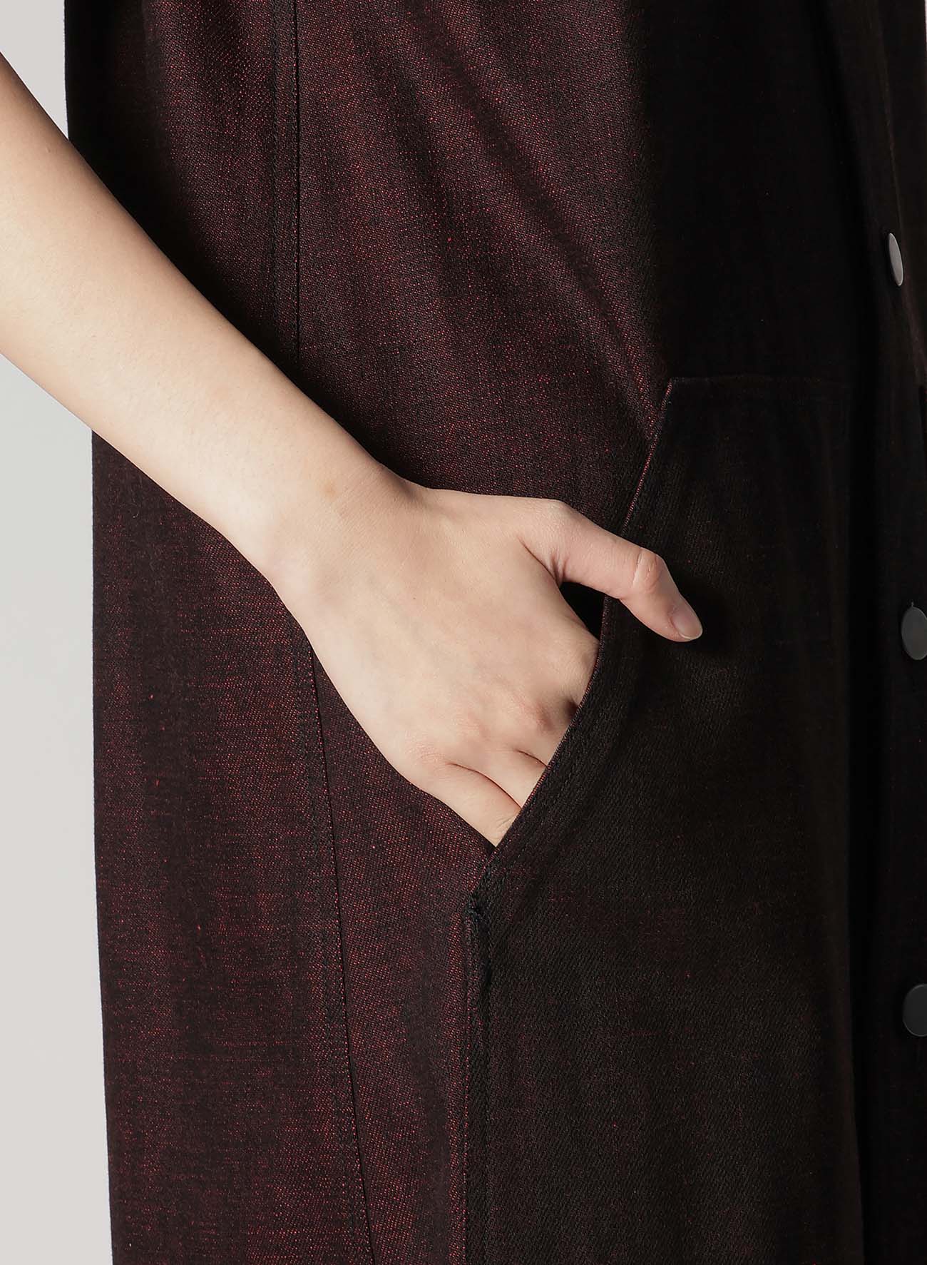 BACK RED BLACK DENIM FRONT OPEN DRESS