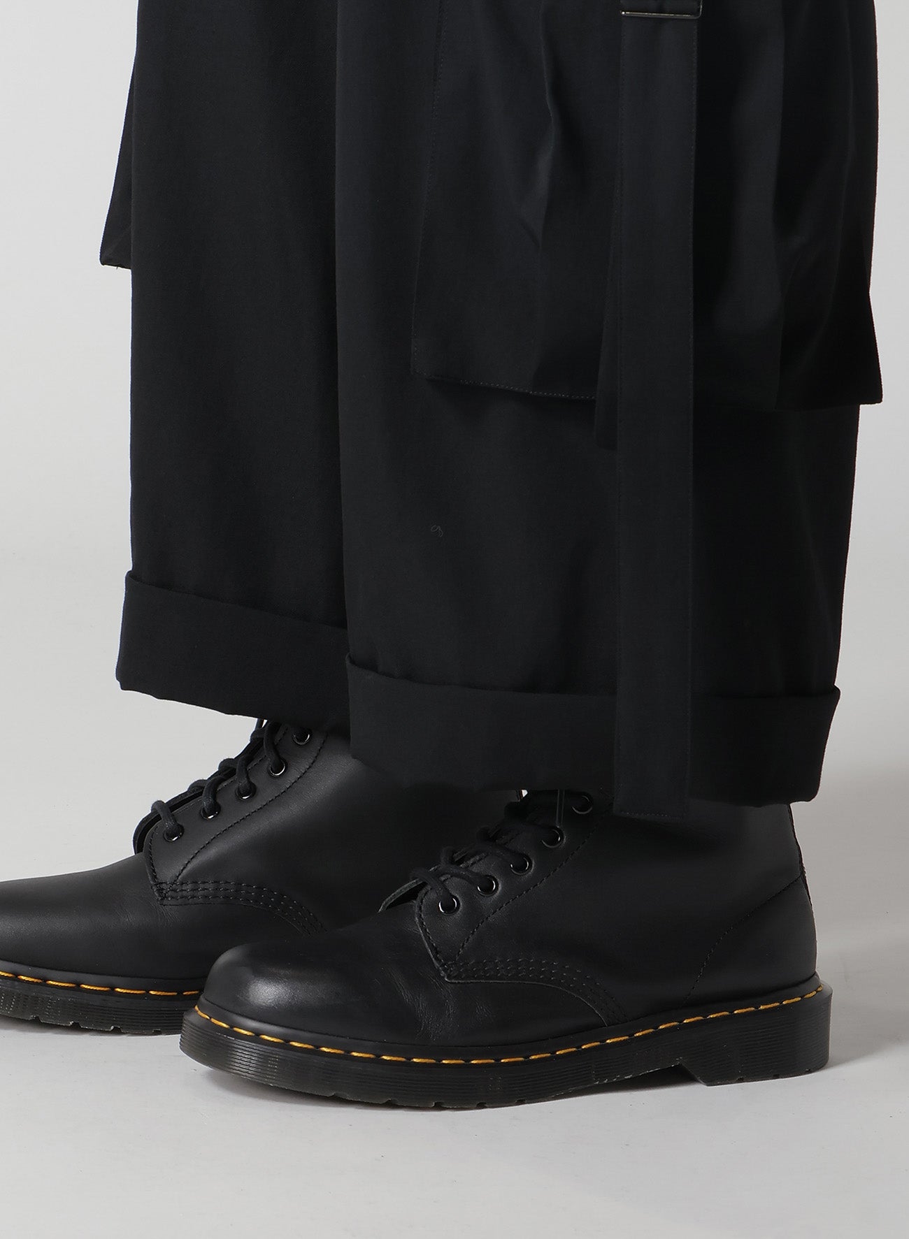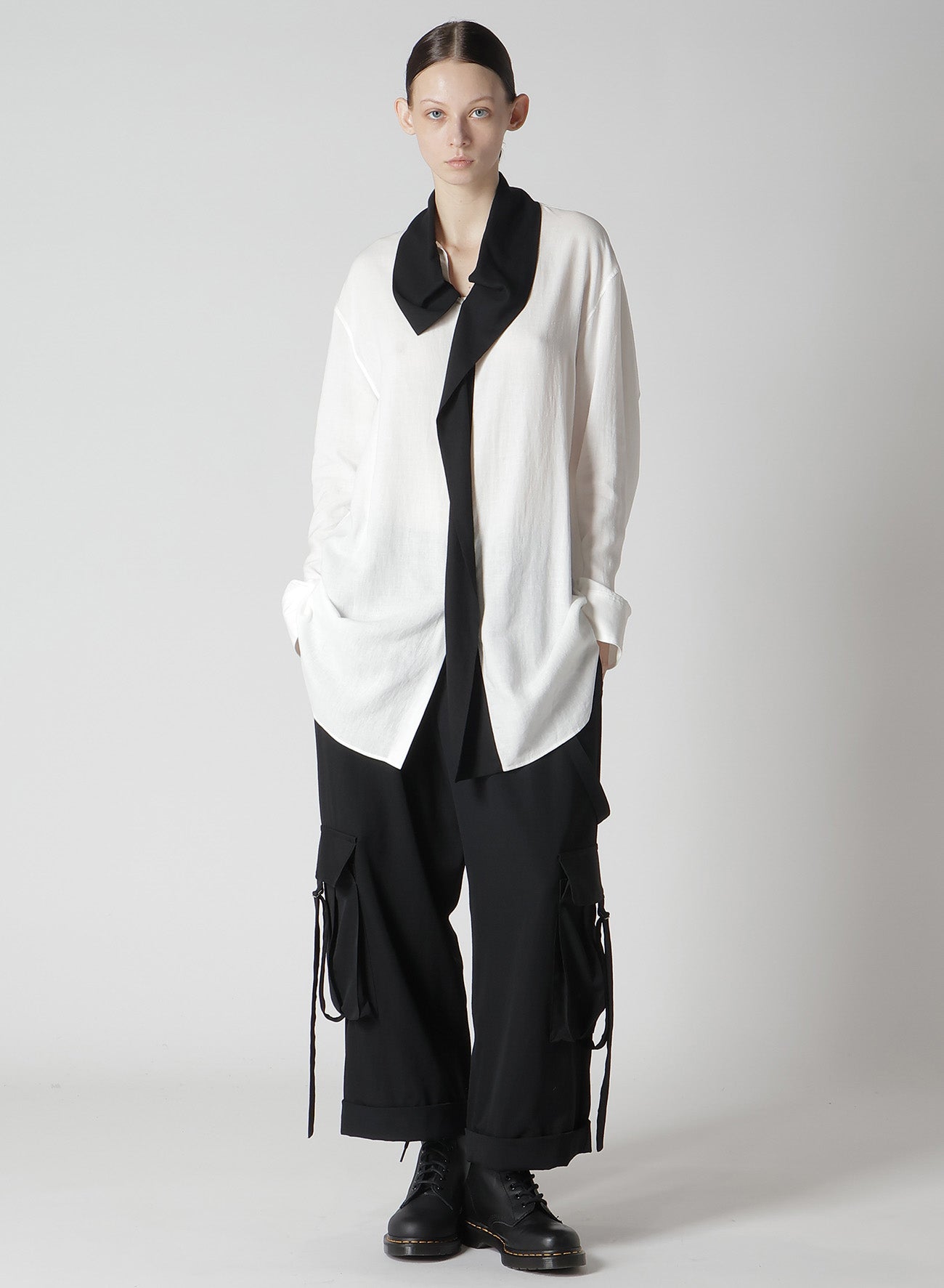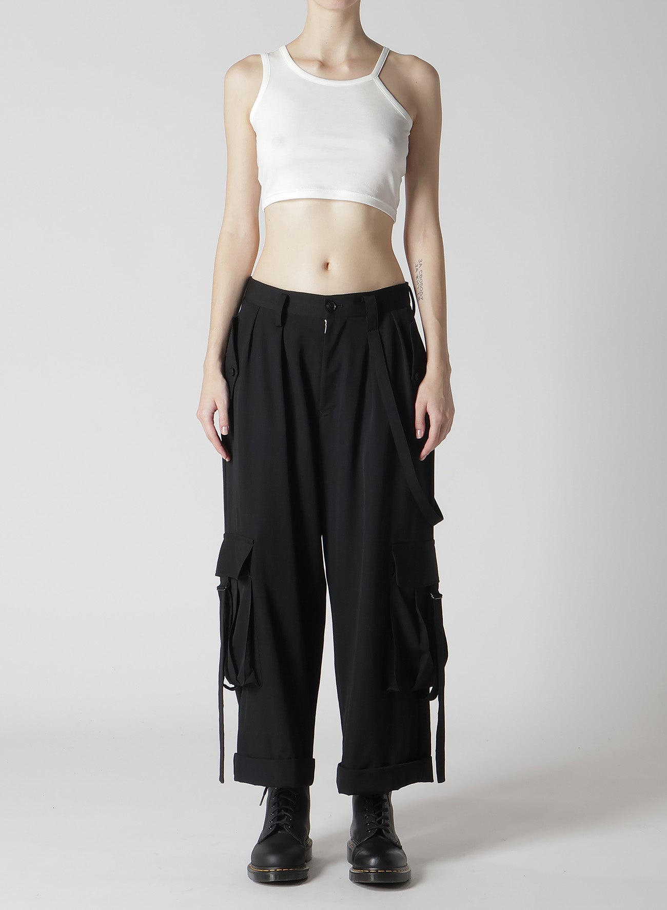 這款Y's的Makin Cargo Pants採用標誌性材質羊毛粗紋布,面料經過處理,保留了羊毛的自然觸感,並帶有微微皺褶效果。外部的大口袋和獨特的懸掛繩設計,兼具功能性與時尚感,讓您的搭配更具特色。