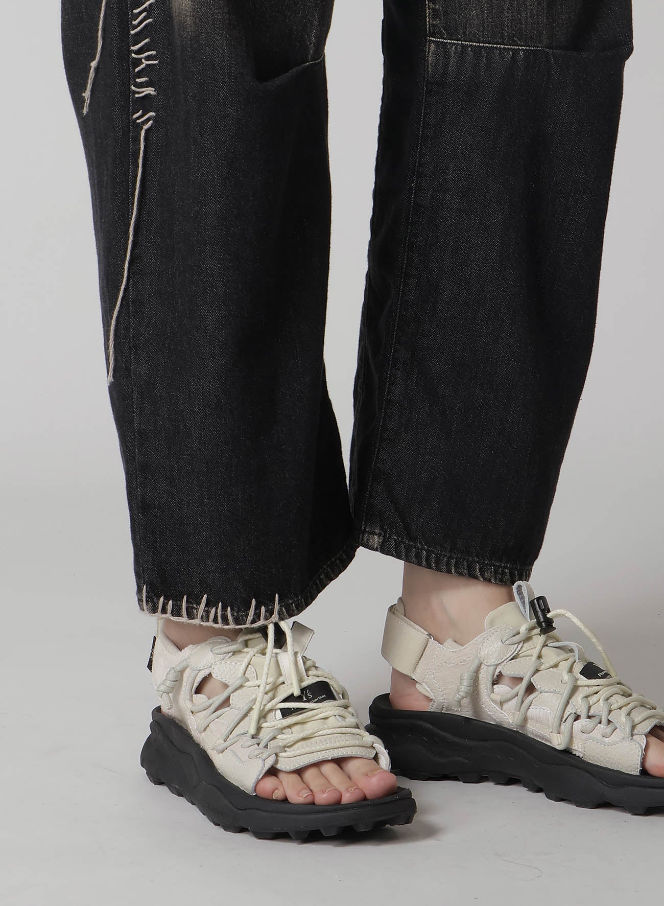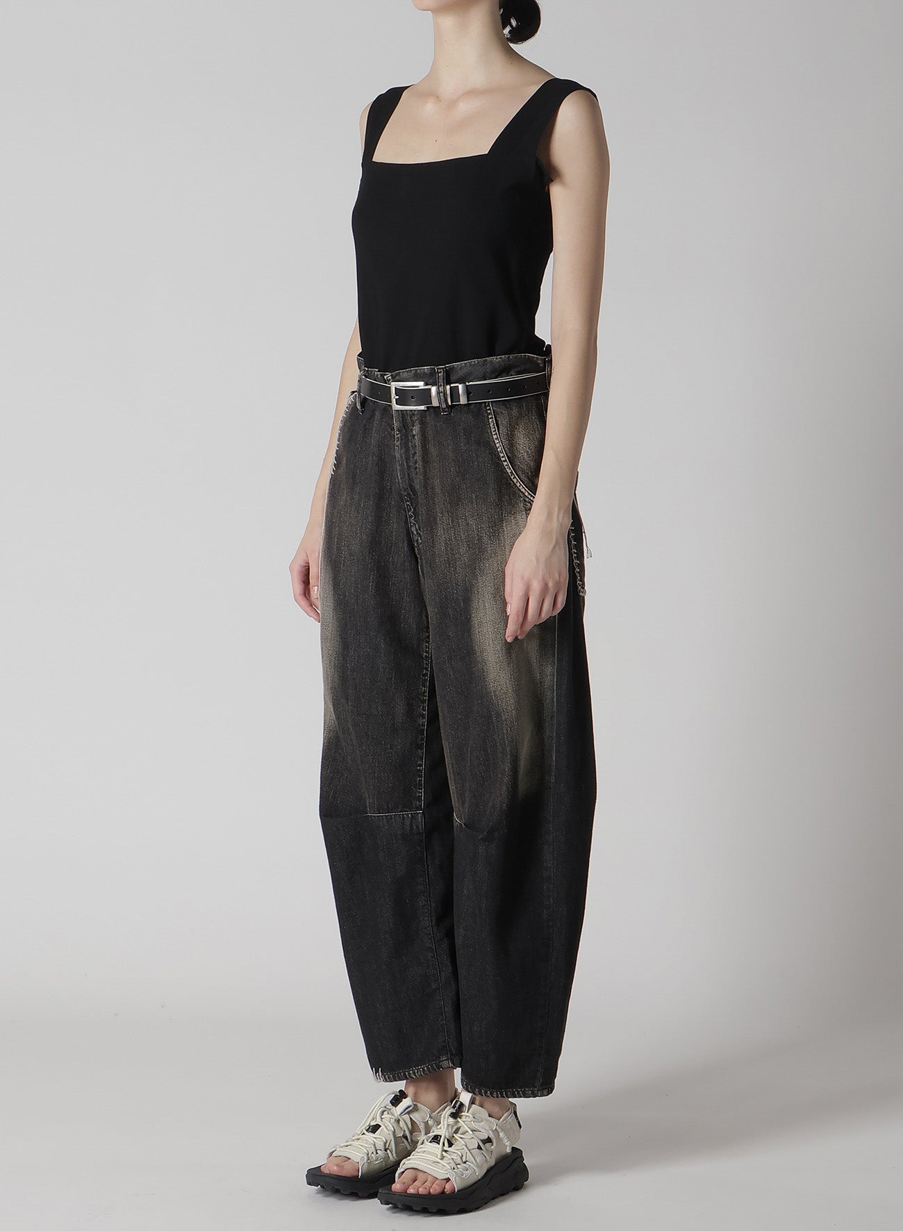 SPOTTED DENIM WIDE LEG GUSSET PANTS