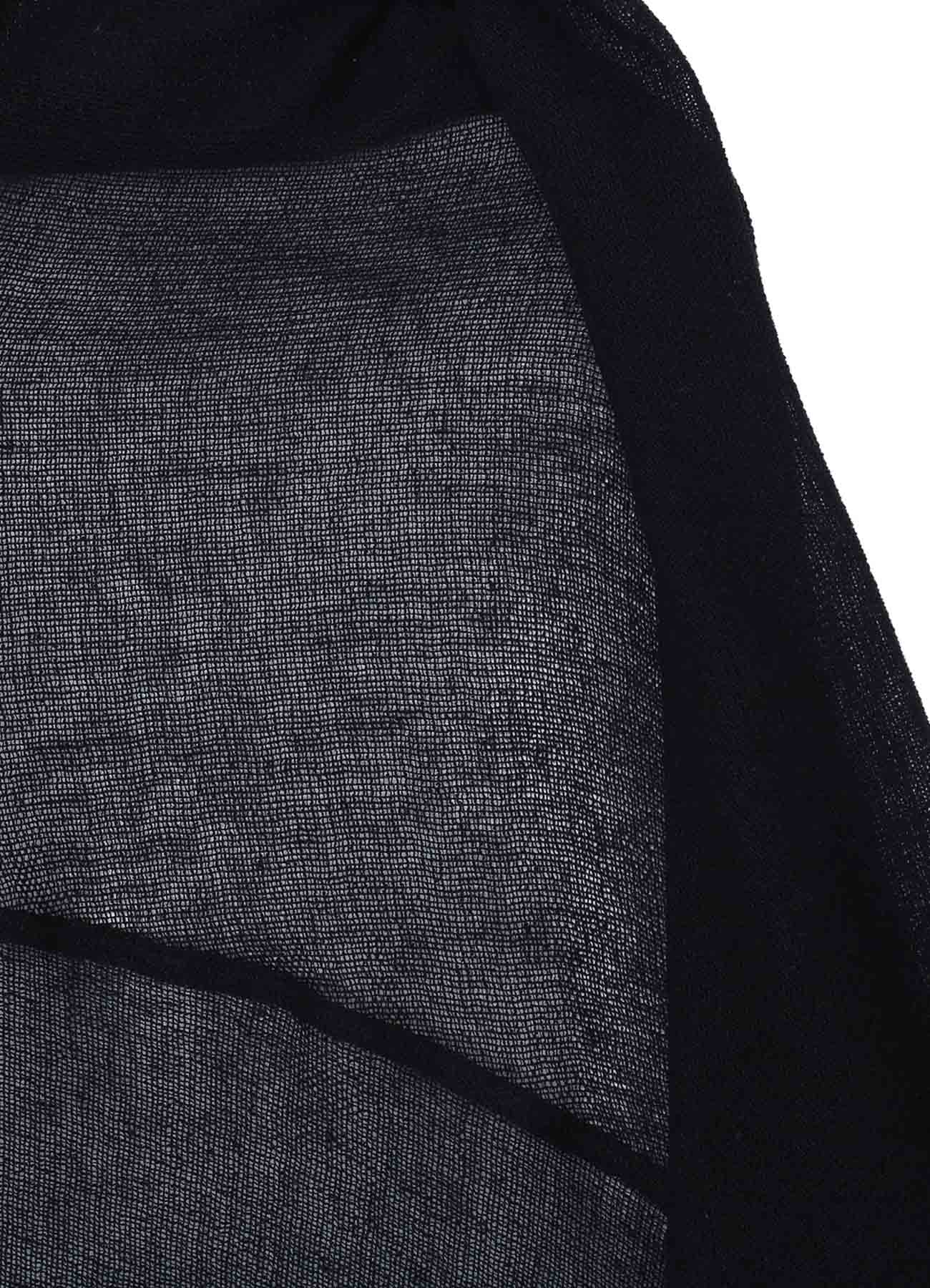 這款獨特設計的 stole 外套採用 Y's 標誌性的 karami 織法,輕透的面料穿著時帶來清涼感,呈現出清新的外觀。領口的面料隨風飄動,與 stole 無縫融合,形成一體化的設計。