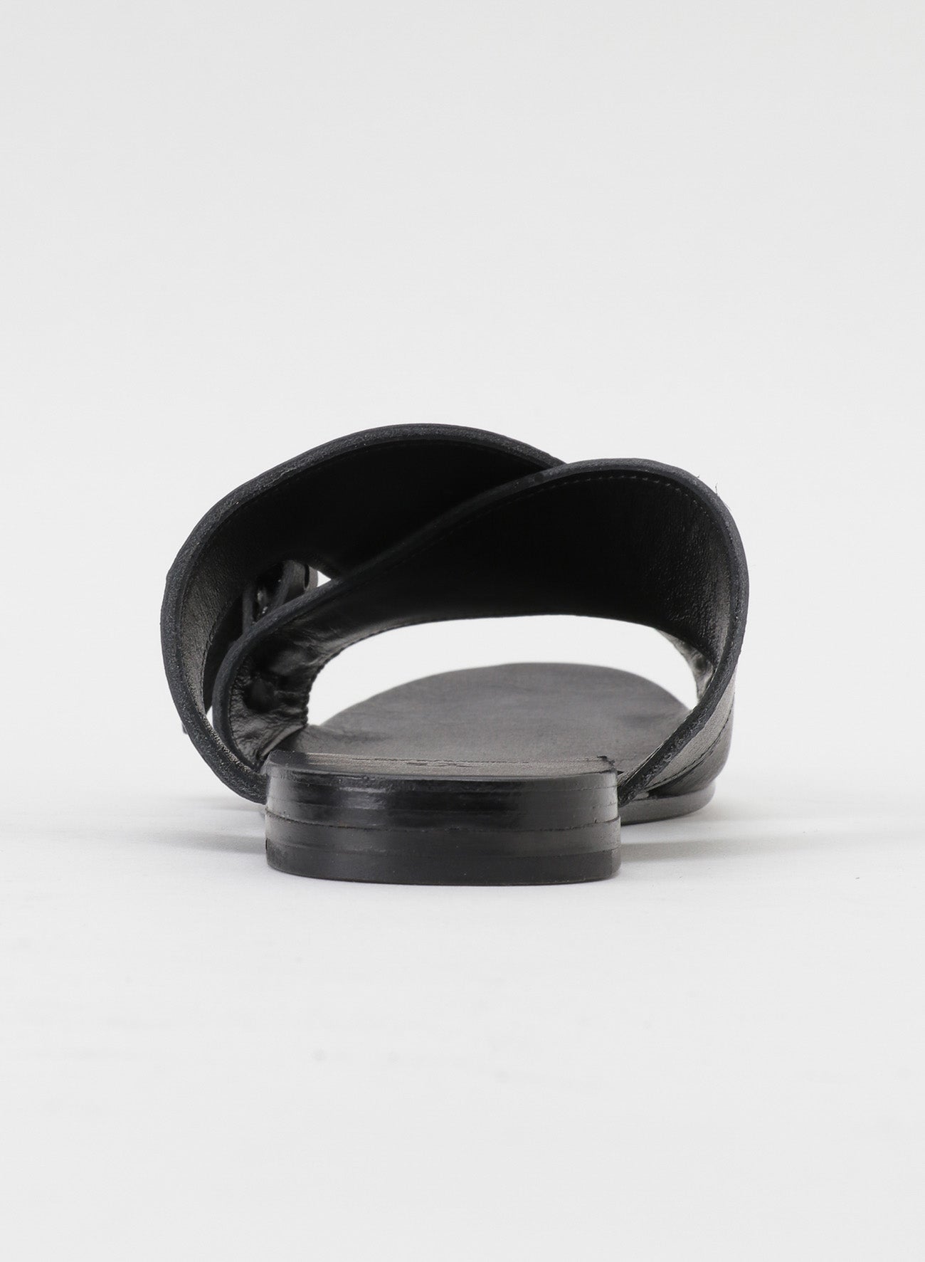 SEMI GLOSS TANNED LEATHER FLAT SANDALS